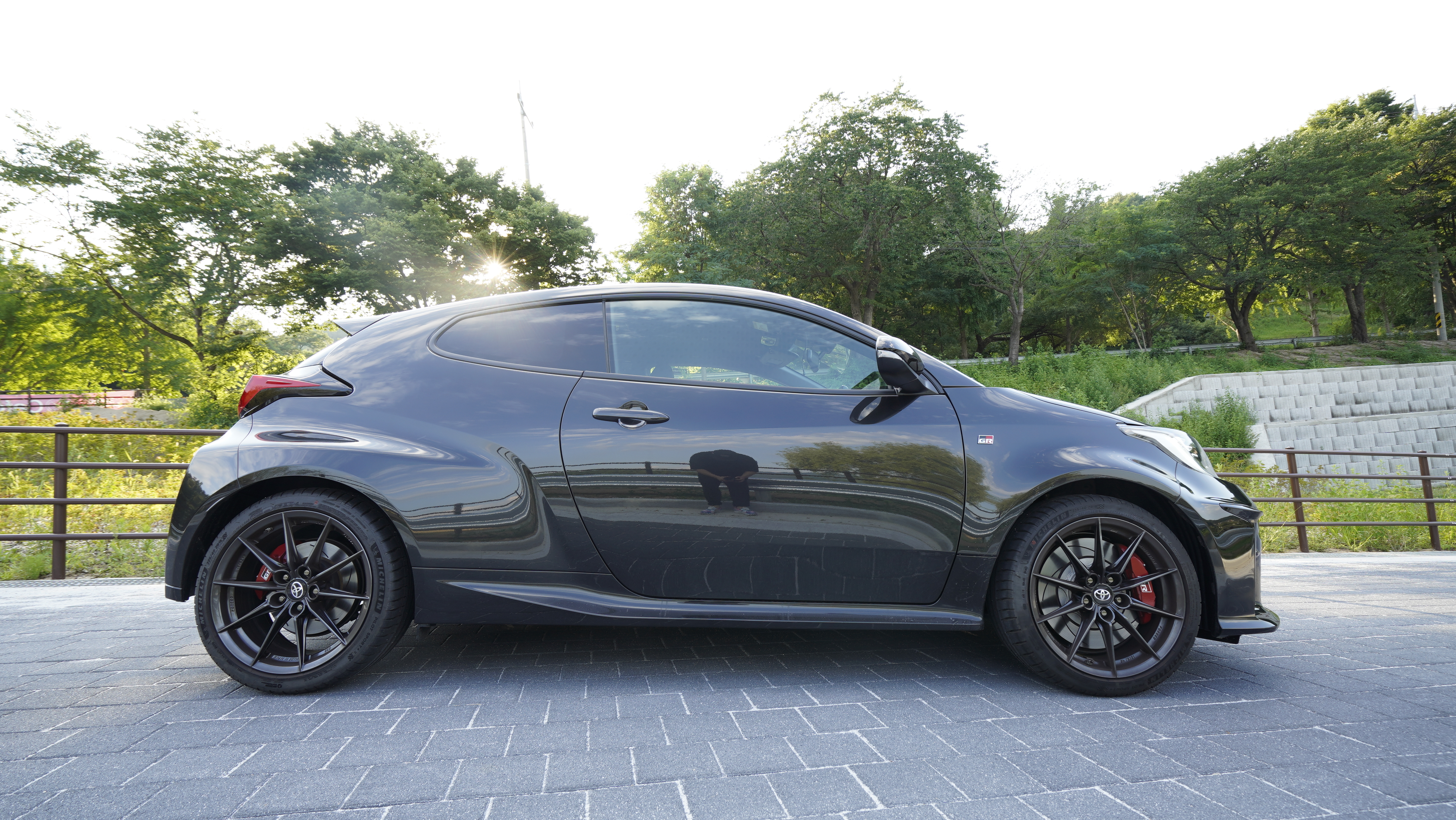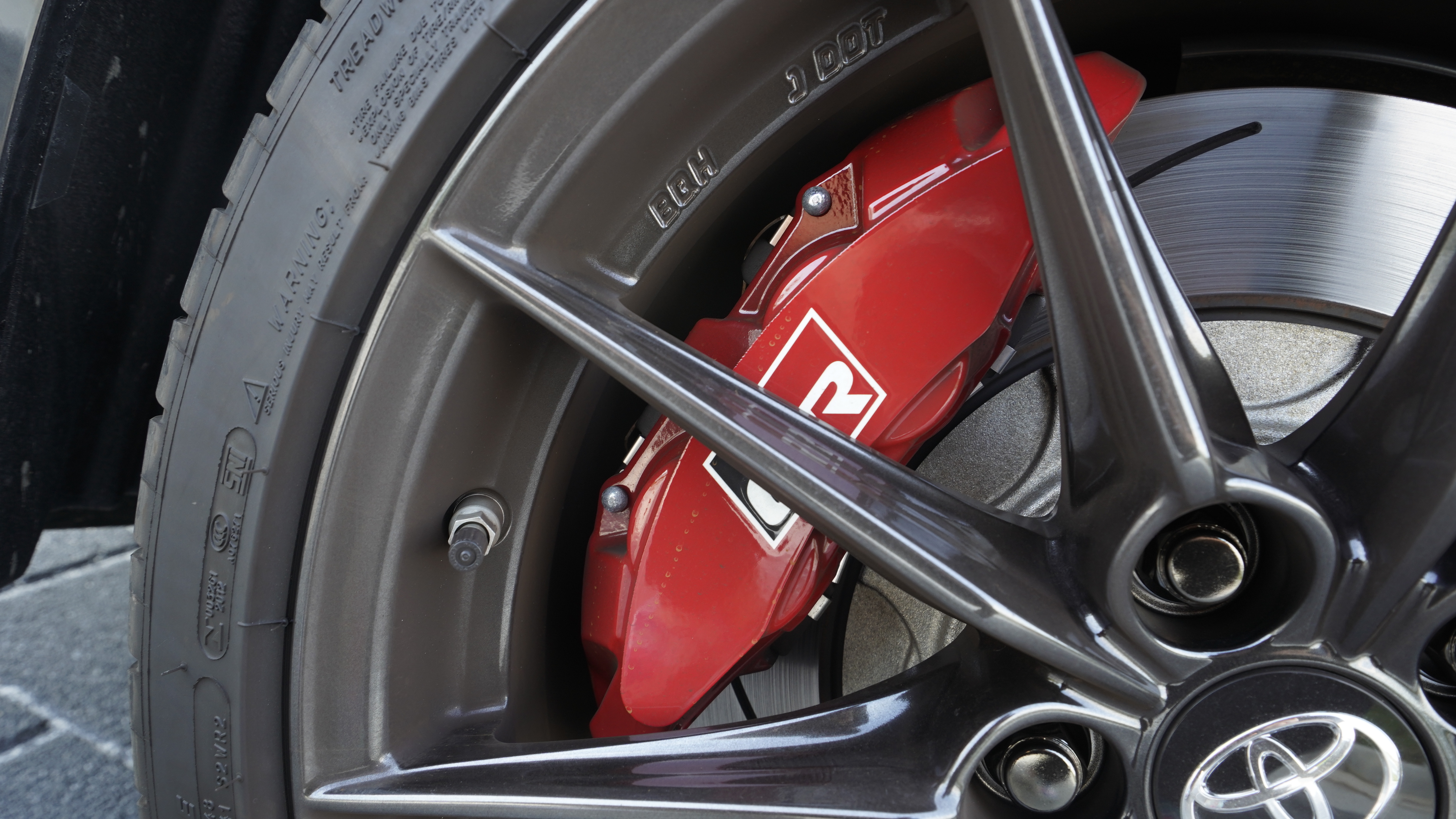 이 차량에 성격은 타이어와 브레이크에서 알 수가 있는데 작은 차체에 18인치 휠타이어가 적용되어 있으며 타이어는 고성능 모델인 미쉐린 PS4s를 사용하고 있으며 고성능 GR 로고가 적용된 대용량 브레이크가 적용되어 있다.