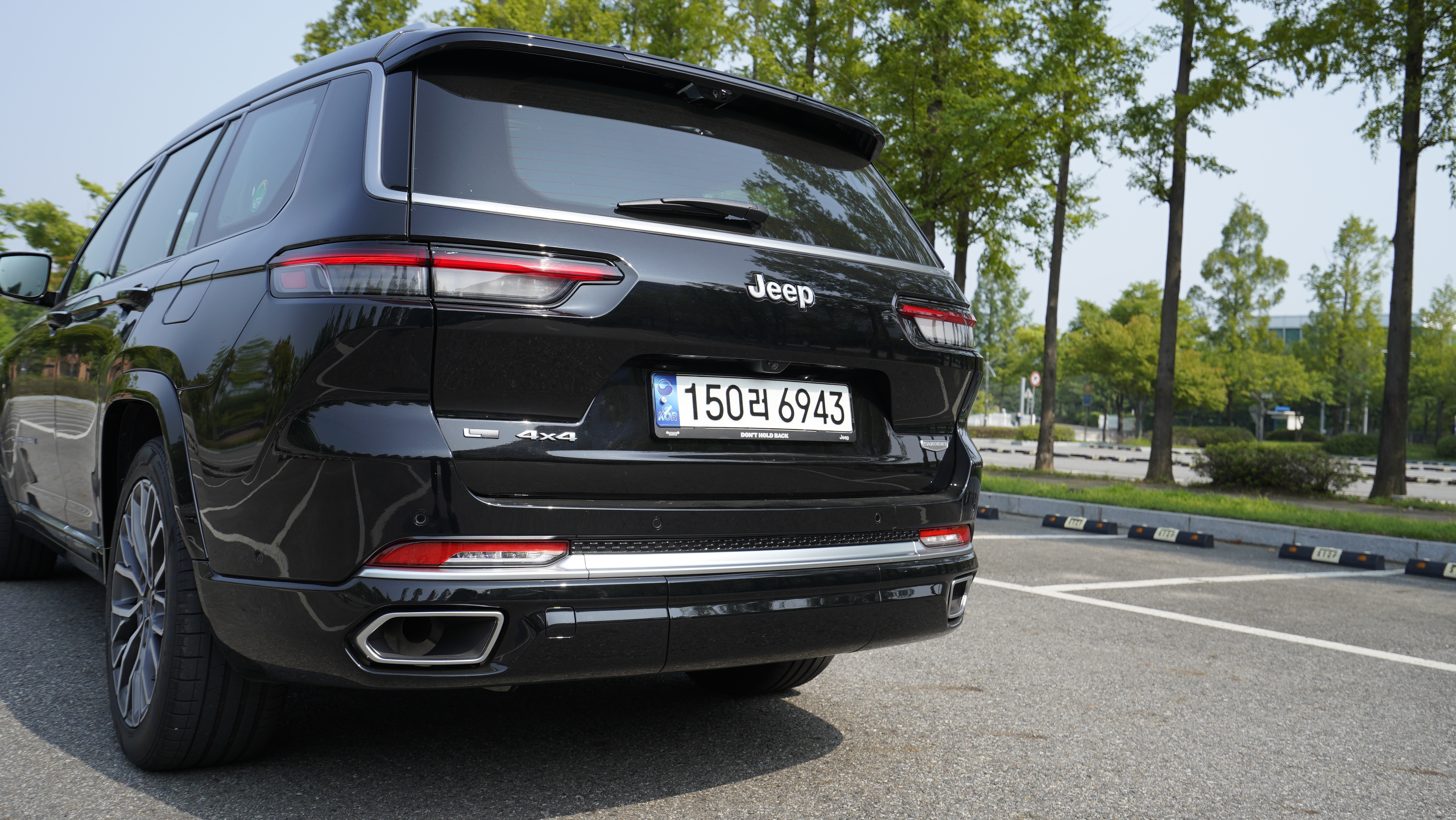 지프 그랜드 체로키 전장은 5,220mm / 전폭은 1,975mm이다. 외관으로 보면 엄청나게 커보이고 이름에서 롱바디를 상징하는 L이 붙는 차량이다. 국내에서 가장 많이 판매되는 팰리세이드 전장 길이가 4,995mm이고 전폭이 1,975mm라는 점을 놓고 본다면 꽤나 큰 녀석은 맞다. 물론 측면 디자인이나 비율을 놓고 본다면 날렵하게 생긴 모습이 꽤나 인상적이고 차량 옆 Grand Cherokee 레터링 하나로 차량이 더욱 고급스러운 느낌을 준다.