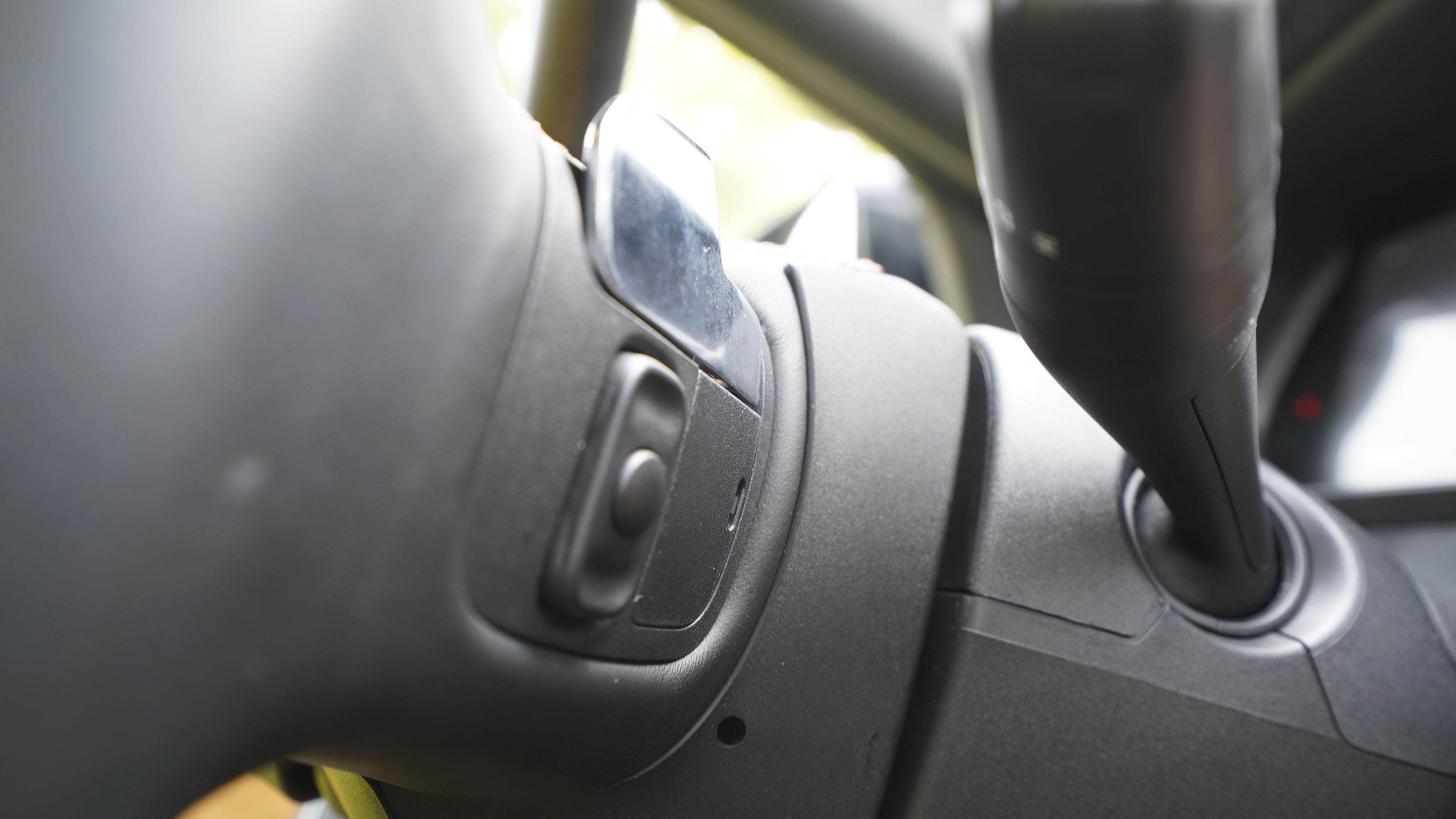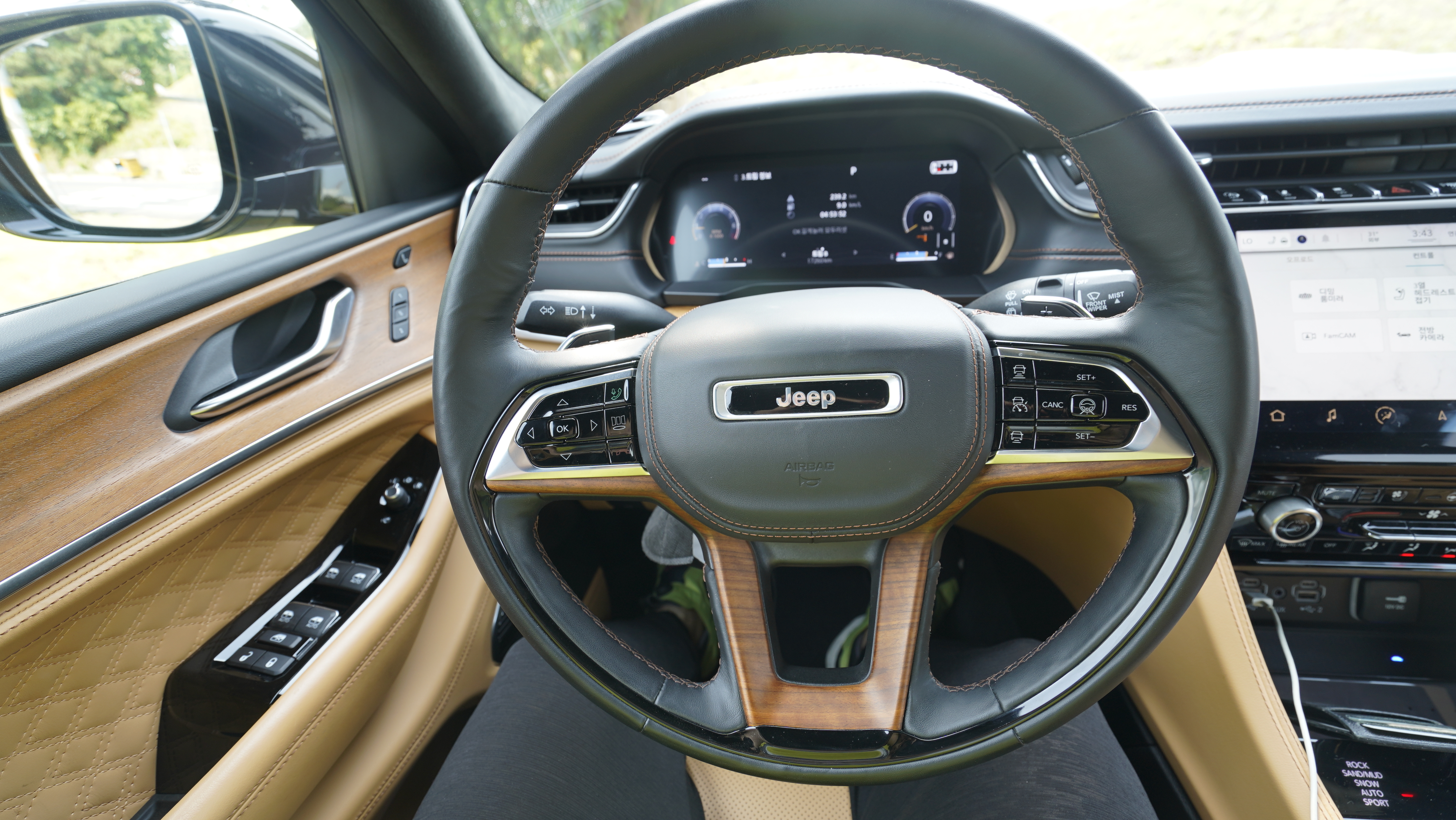 지프의 투박함은 사실 스티어링부터 시작된다. 물에 아무리 닿아도 괜찮을거같은 스티어링 대신 꽤 신경쓴 가죽과 디테일 그리고 나무 소재를 사용한 여러가지 소재를 사용한 스티어링과 차량에 다양한 부분을 컨트롤하는 버튼 그리고 기어 변속을 할 수있는 패들 쉬프트와 패들 쉬프트 아래에 음량 조절을 할 수 있는 버튼까지 스티어링 하나로 거의 모든 것을 동작할것 같은 다양한 기능이 숨어져있다.
