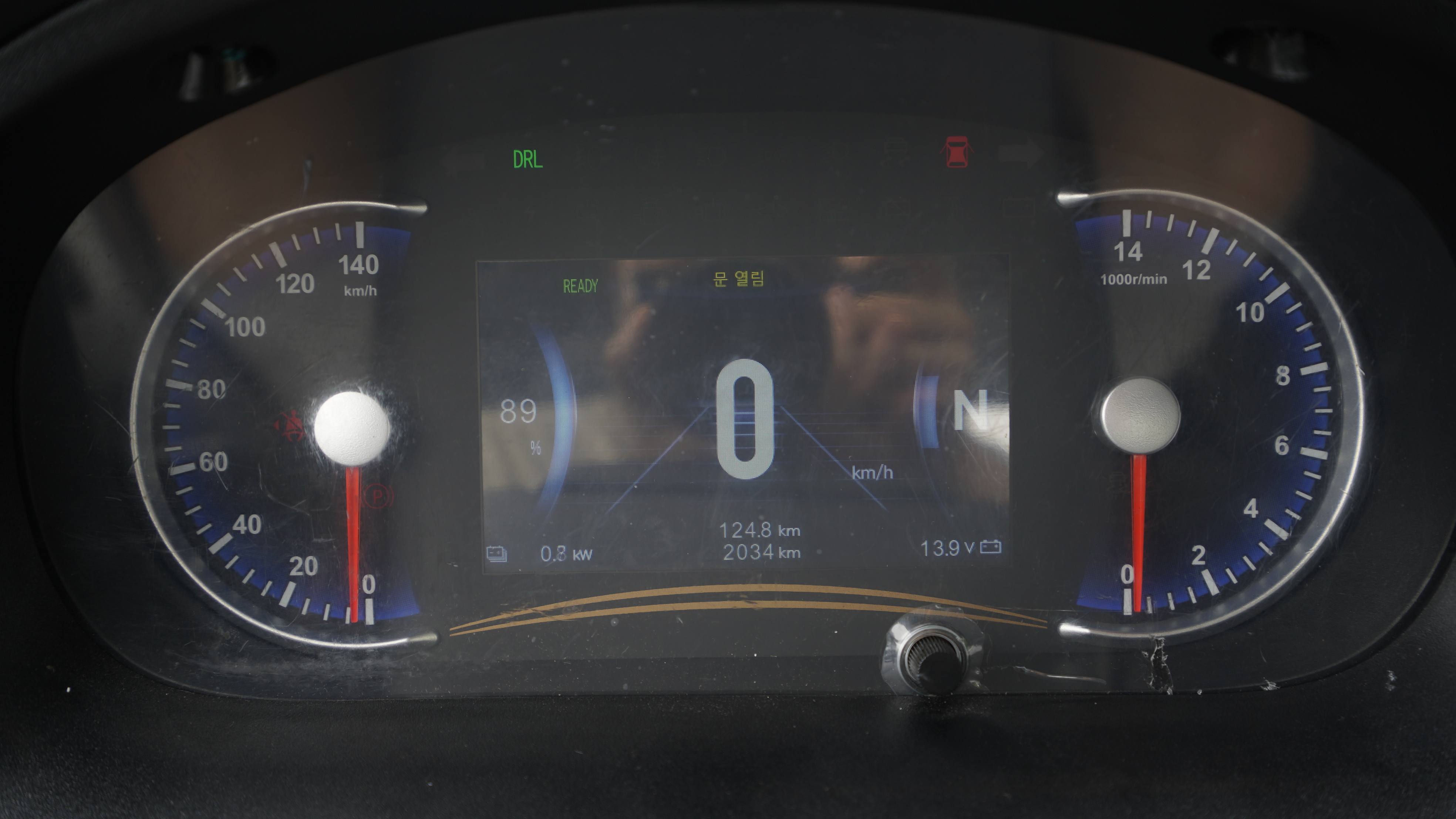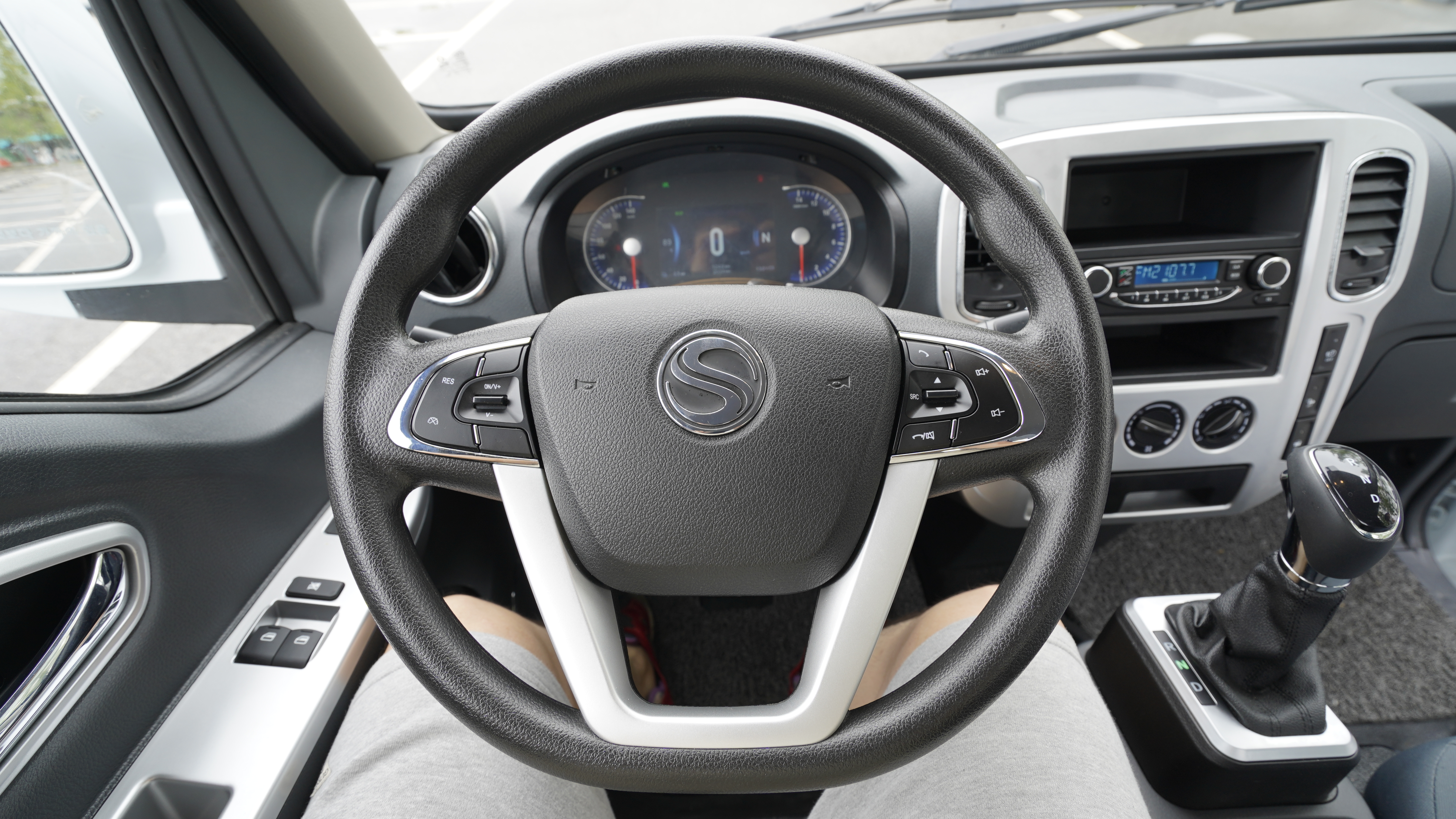 포터EV와 비교하면 다소 단순한 느낌의 실내 공간을 볼 수가 있다. D컷 스타일의 스티어링 휠과 크루즈 컨트롤과 핸들리모콘이 포함되어 있으며 LCD 계기판은 충전 상태나 차량 정보를 확인할 수 있는 것이 특징이다. 오디오는 아쉬워보이는 느낌이지만 블루투스를 기본 지원하고 있는 것이 특징이다. 사실 전체적으로 심플하면서 기능에 대해서 많은 것을 기대하기는 어렵다.