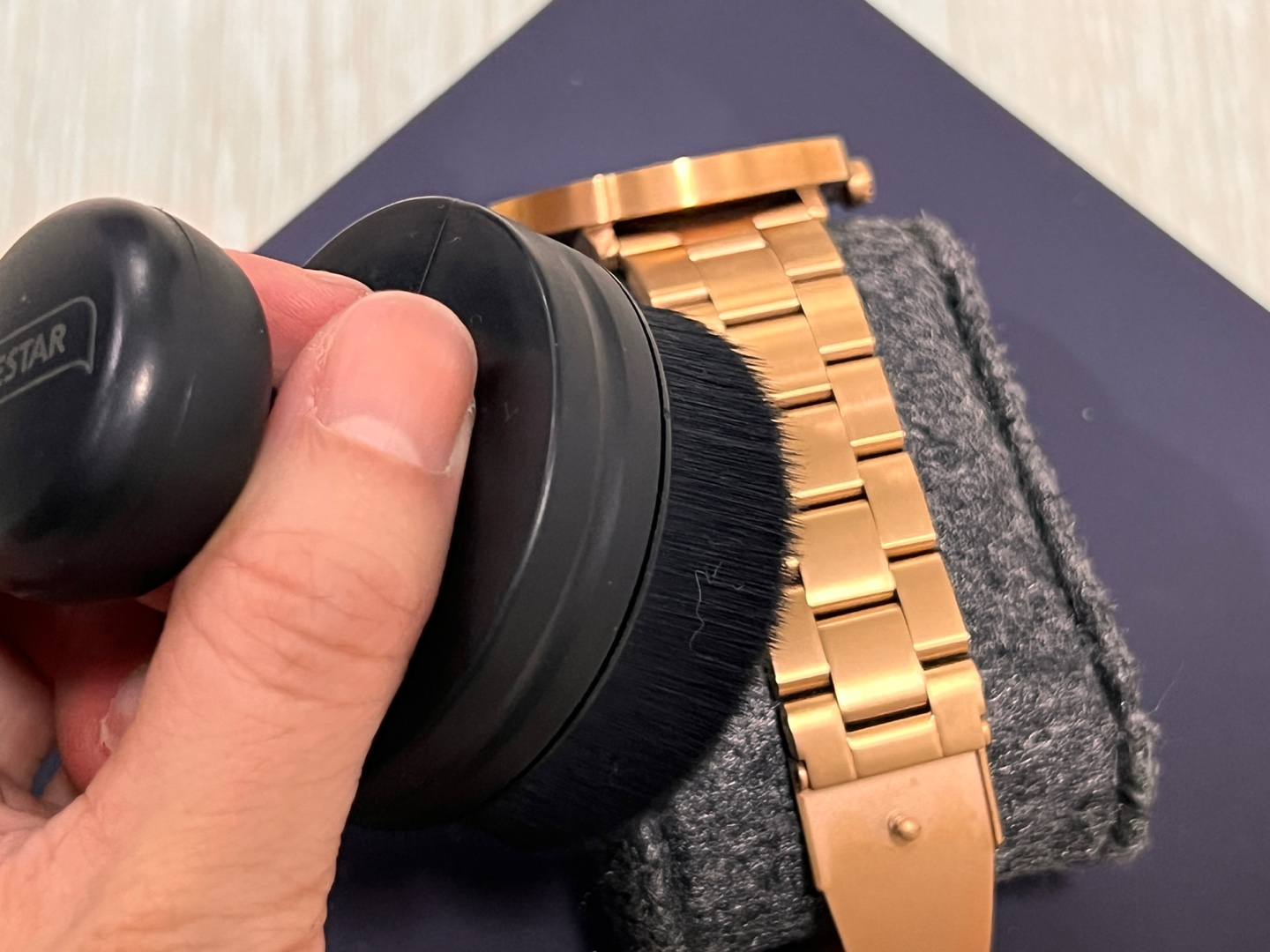 검정색이라 먼지 쌓이는게 쉽게 보이는 가죽케이스도 스크래치 걱정 없이 스탬프 브러쉬로 부드럽게 먼지를 털어내 주고,