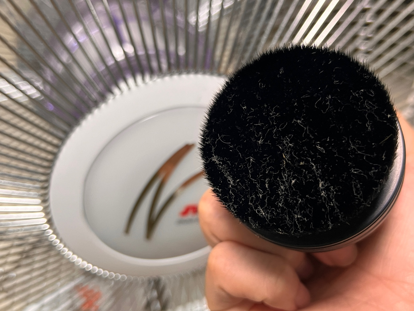 브러쉬에 사진처럼 먼지가 많이 끼면 손으로 슥슥 털어줘도 잘 떨어지는데, 혹시 오염물이 뭍었거나, 제품을 도포하는 용도로 사용하셨다면 비누나 중성세제를 이용해 미온수로 세척해서 관리하면 브러쉬를 더욱 깨끗하고 오래 사용할 수 있다고 합니다.