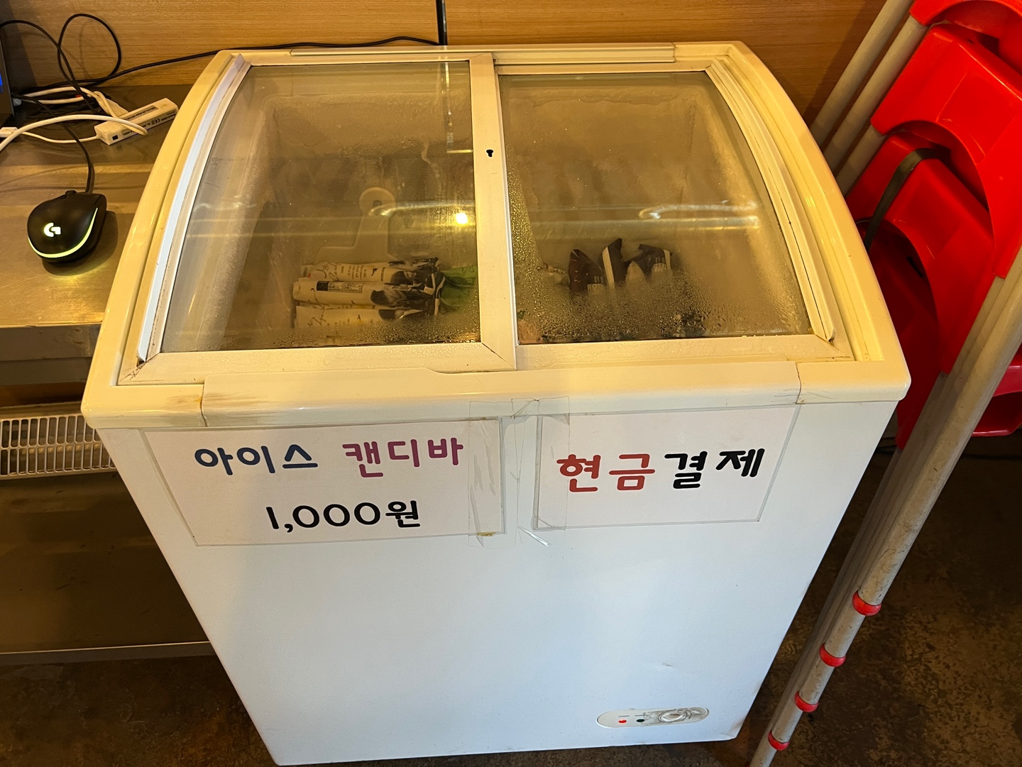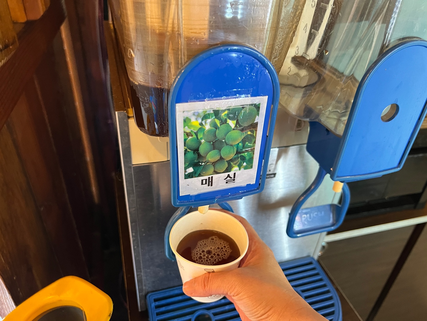 배도 부르고 나니까 1층 출입문 근처에 후식이 있는게 눈에 들어오네요. 천원에 먹을 수 있는 캔디바와 무료로 마실수 있는 시원한 매실차가 있습니다. 저는 소화도 시킬겸 매실차를 한잔 들고 밖에 나왔습니다.