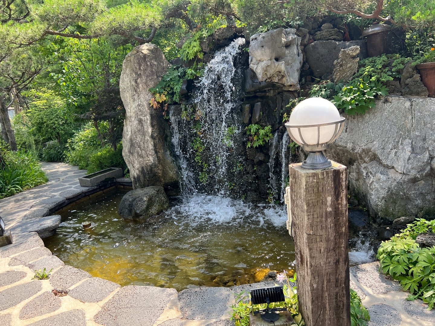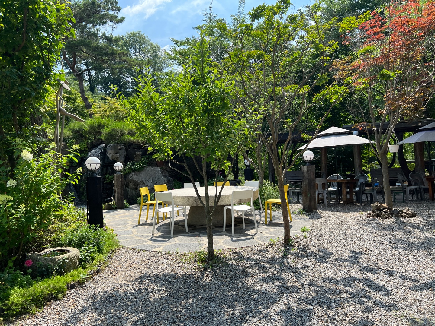 너무 배가 불러서 바로 출발을 못할것 같았는데 식당건물 왼쪽편을 따라서 건물 뒤쪽으로 가보니 잘 가꿔진 정원도 있었습니다. 여기서 매실차도 마시고, 이야기도 하면서 소화시키니 좋았는데요. 가게에 여러가지로 신경을 많이 쓰셨구나 하고 생각이 드는 음식점이었습니다.