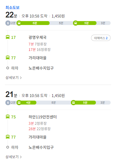 또 위의 경로 사진에는 잘렸지만 77번 버스를 이용하시면 밤일마을이더라도 많이 걷지 않고도 근처까지 갈수 있어서 생각보다 접근성도 좋은편입니다.