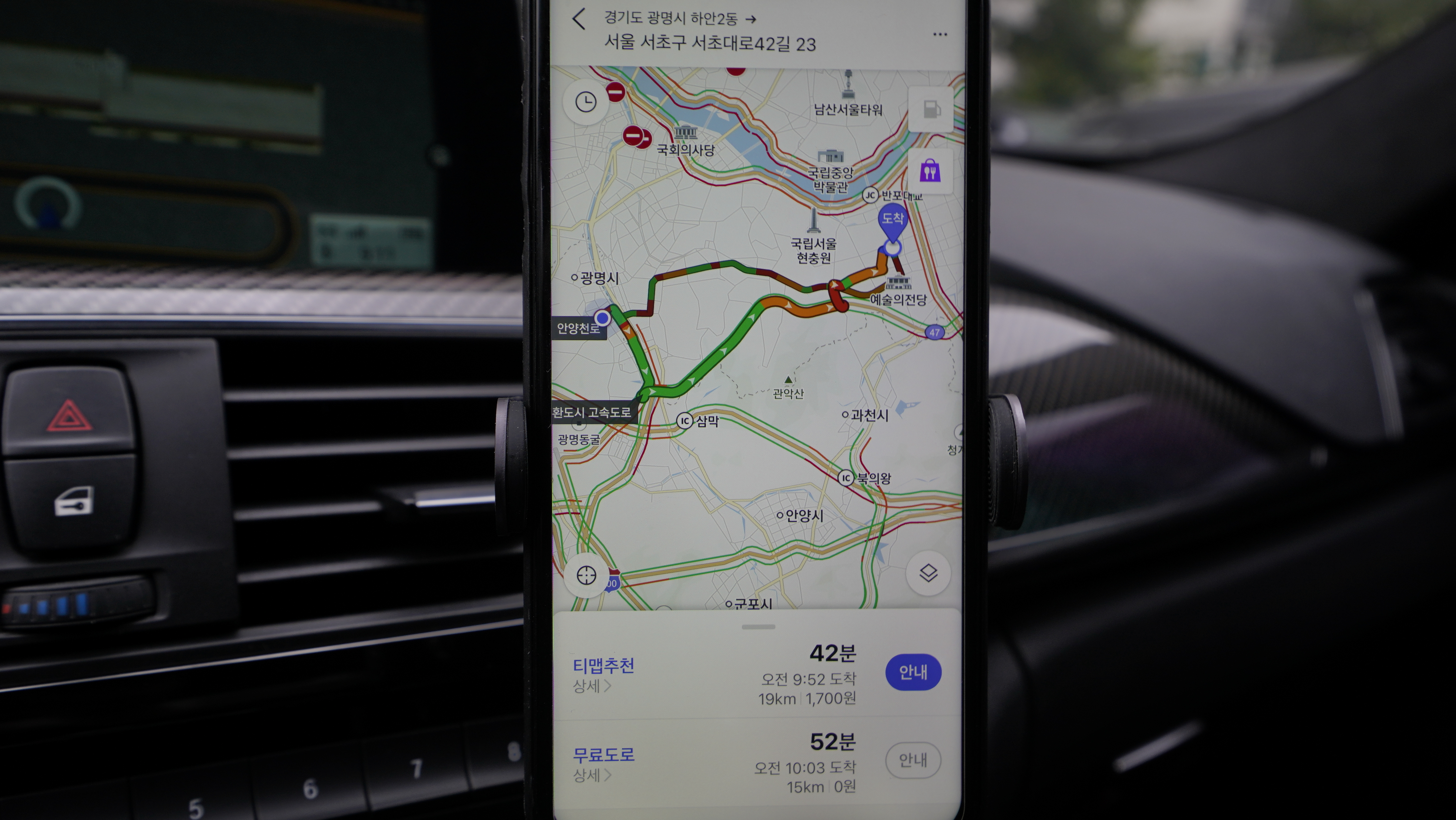 경기 광명에서 양재동까지 강남 순환고속도로에서 안전 제한속도 시속 80km/h 속도로 크루즈 컨트롤로 주행하면 어떨까?? 이 구간이 오르막이 많은 구간이라 사실 연비가 좋게 나오기는 힘든 편이지만 시속 80km/h로 주행했을 때 약 16km/L라는 상당히 좋은 연비를 보여주기도 한다. 물론 강남 시내 주행 시 막히는 도로에서는 연비 6km/L 수준이고 평균적으로 8km/L대의 연비를 보여주기에 상황에 따라 연비가 꽤 많은 차이를 보여준다.