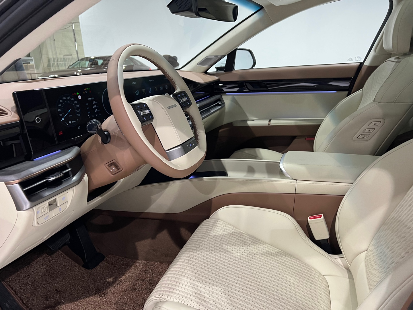 또한 스티어링 휠로 이동한 컬럼 타입의 전자식 변속 레버는 변속 조작 방향과 구동 방향을 일치시켜 직관적인 조작을 보여주고 있으며 변속기가 빠진 콘솔부분은 실내 공간의 활용성과 공간성을 넓혀준 것이 특징이다. 이번 그랜저 모델의 헤리티지를 제대로 보여주는 것은 바로 스티어링 휠인데 일명 각그렌져 1세대 모델의 헤리티지를 담기 위하여 노력했으며 차량 조작과 음성인식과 연계하느 4개의 LED 조명을 적용하여 편의성을 향상시켰다.
