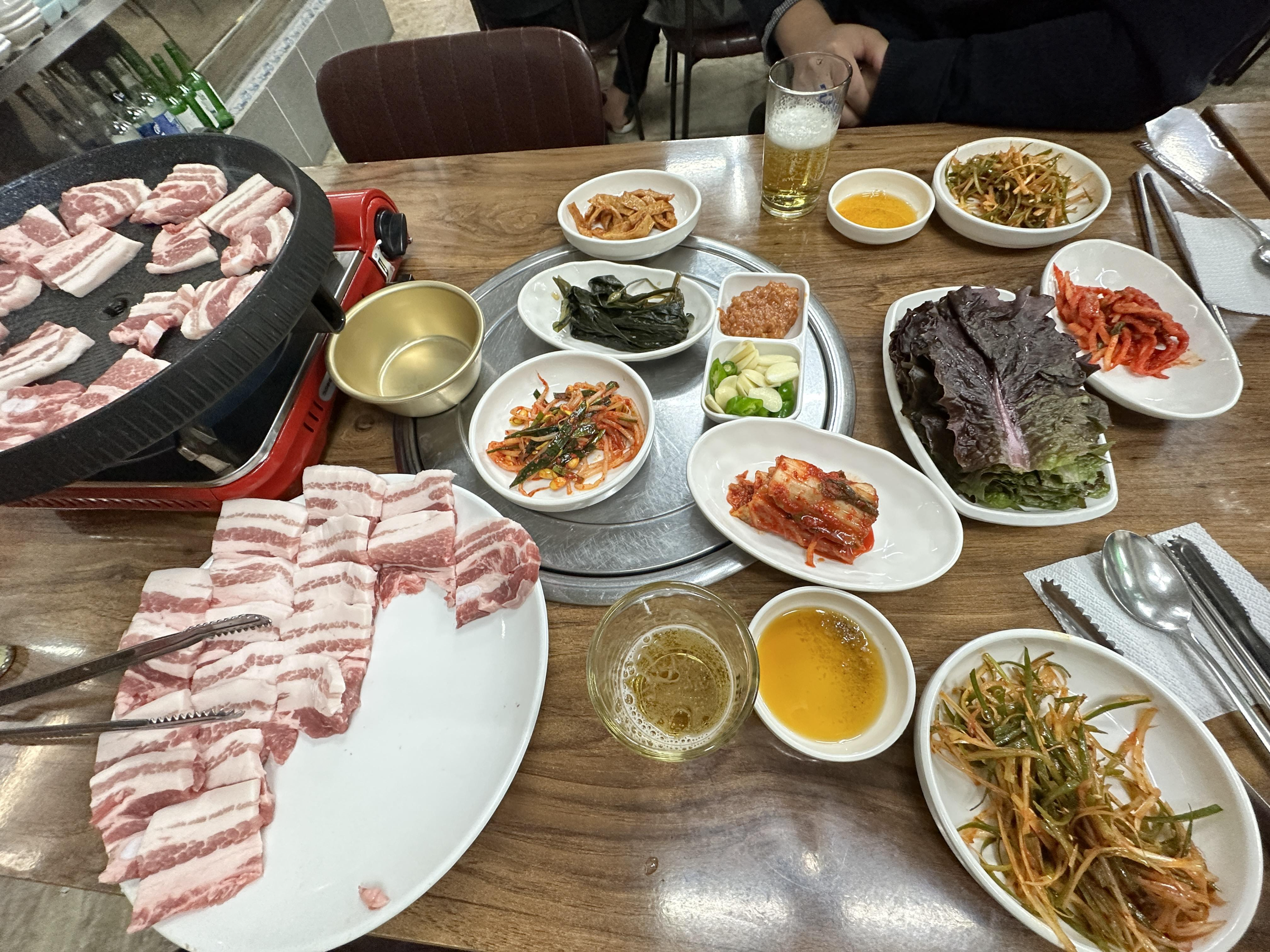 삼겹살에 파절임을 먹으면 꽤나 맛이 좋은 편인데 사장님께서 파절임이 부족하면 바로 바로 리필해주시고 부족한 반찬이 없는지 신경써주시는 부분까지 괜찮았다. 추천한다면 4인 / 8인 12인정도까지 회식을 원하는 사람들에게 추천하고 싶다. 보통 구로디지털단지역 맛집 중에서는 이렇게 괜찮은 가격에 정육식당을 찾아보기 힘들고 2차를 이동해서 술 한잔 더 할 곳을 찾는게 쉽지 않지만 이 곳 근처에는 꽤 괜찮고 넓은 공간의 술집들이 많은 편이다.