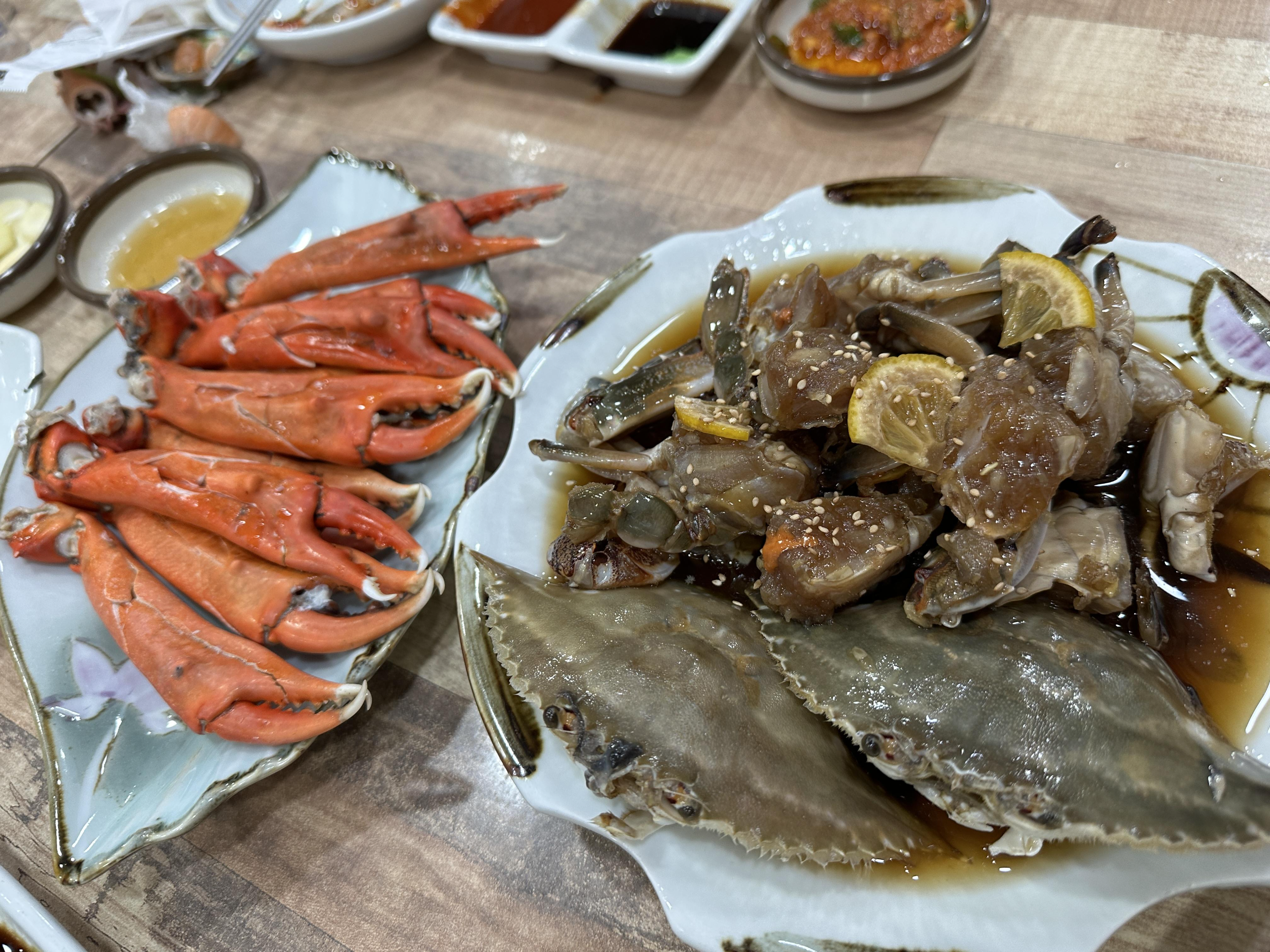 #동문시장맛집 인 유신횟집에 방문하면 제주도에서 맛볼 수 있는 다양한 해산물을 한 번에 맛볼 수 있다는 장점이 있다. 특히나 간장게장은 겉으로 보면 다른 곳과 크게 다름이 없어 보이지만 육지에서 따로 주문해서 먹을 정도로 비리지도 짜지도 않은 게살 특유의 맛을 너무나 잘 살리면서 레몬이 살짝 들어가 있어서 상큼한 맛이 밥반찬이 아니더라도 술안주로도 부족함이 없는 따로 주문해서 먹으려고 제주 유신횟집 명함까지 가져올 정도의 맛이었다.
