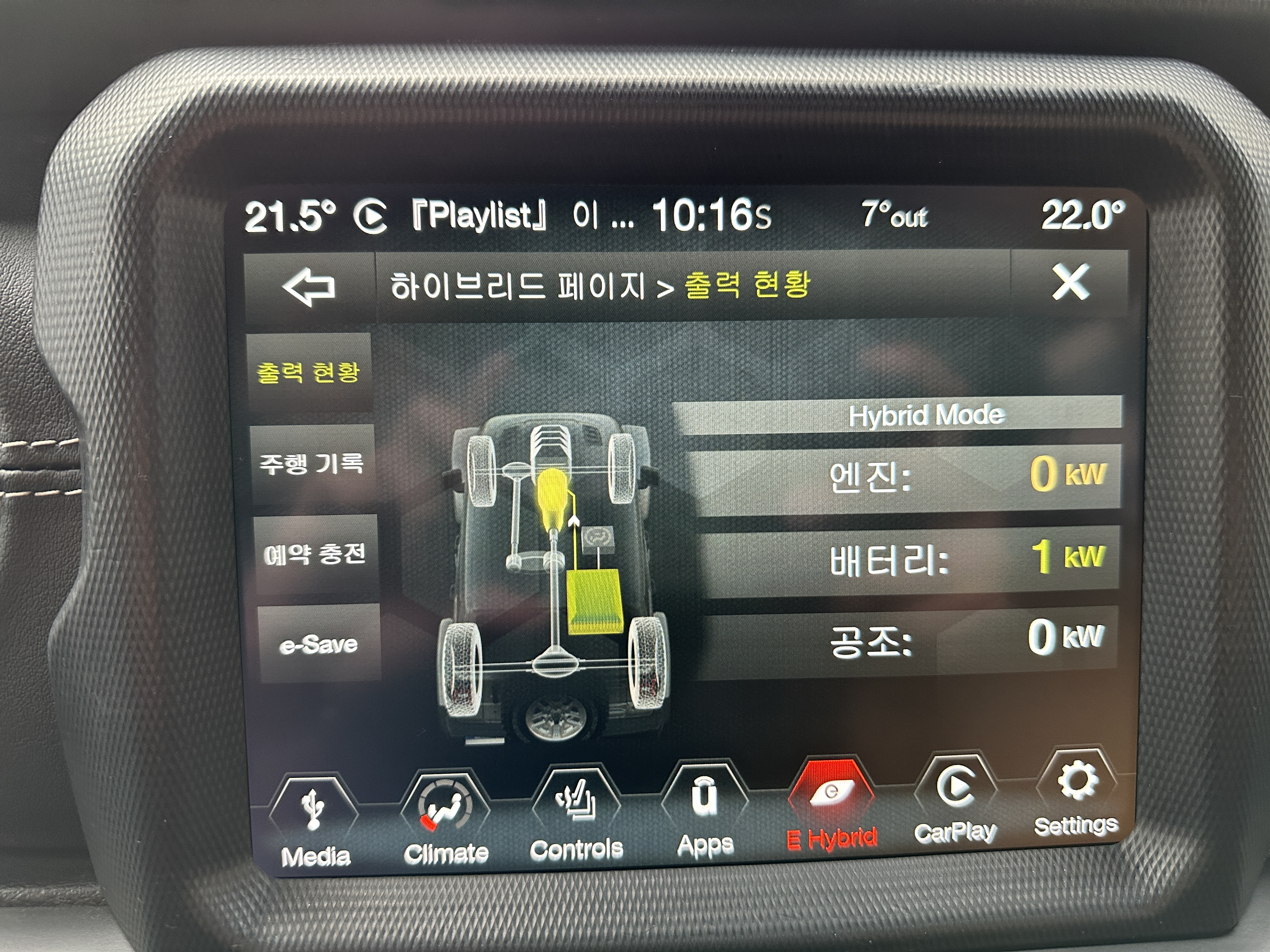 실내 인테리어 변화도 생각보다 크지 않다. 동일한 파워탑 기준으로 약 1,000만원이나 비싼 모델이지만 실내에서 "내가 더 비싼 놈이다."라는 느낌을 받을 수 없다. 다만 계기판에 하이브리드 정보가 추가되었으며 운전석 왼쪽에는 하이브리드 / 일렉트릭 / E-SAVE 버튼을 볼 수가 있으며 인포테이먼트 시스템에는 리제네레이티브 버튼이 추가된 것 이외에 특별한 것을 찾을 수 없다. 하지만 이 차량에 주력은 사실 이 부분이다.