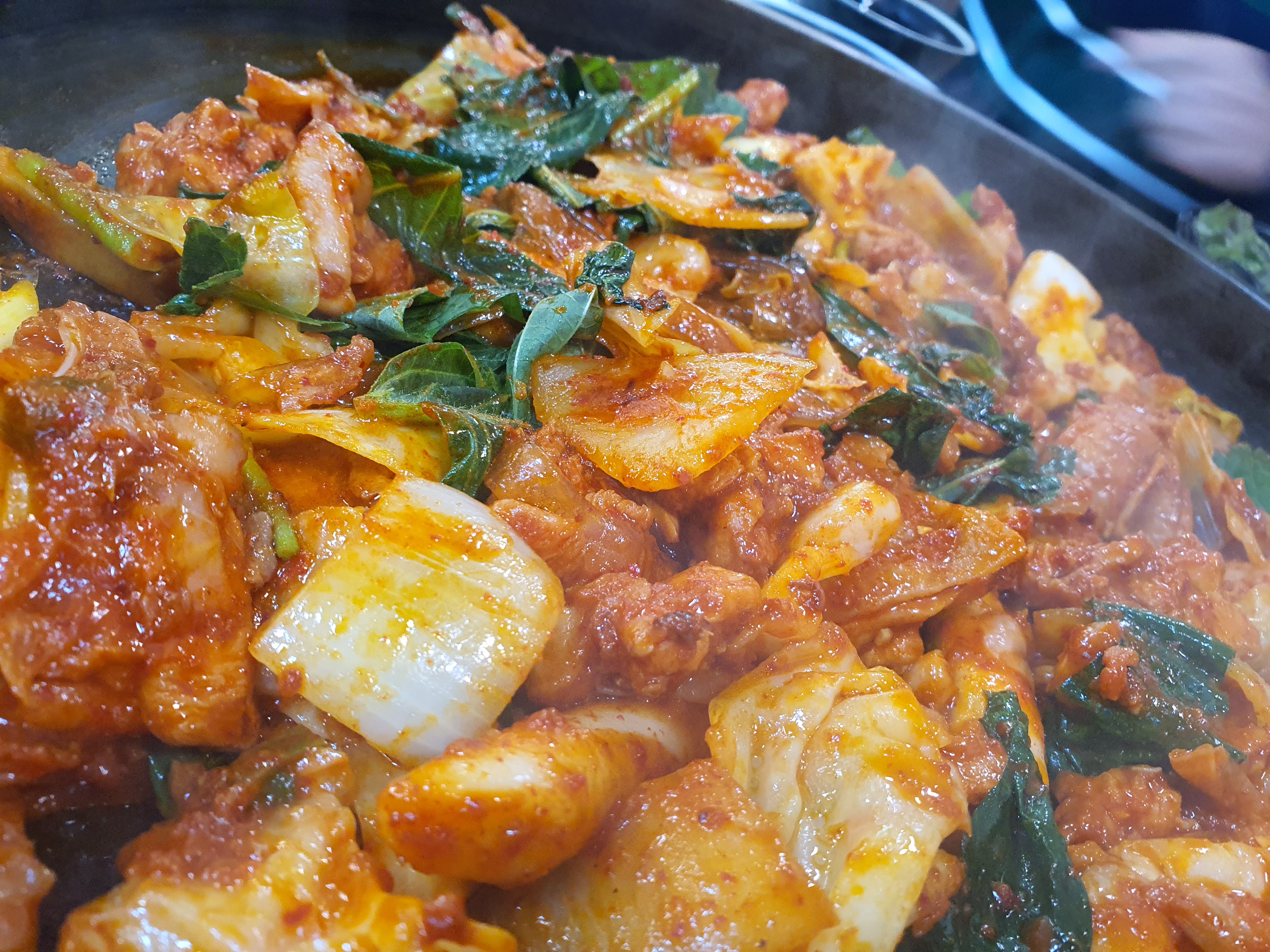 닭갈비에 육질은 상당히 좋은 편이다. 부드러운 식감이 꽤나 좋은 편이고 매콤하면서 달콤한 맛은 아이들이 먹기에도 나쁘지 않았다. 특히나 다양한 야채와 어울어지고 커다란 양파가 많이 들어가 양파 특유의 단맛까지 느낄 수 있는 그런 닭갈비이다.