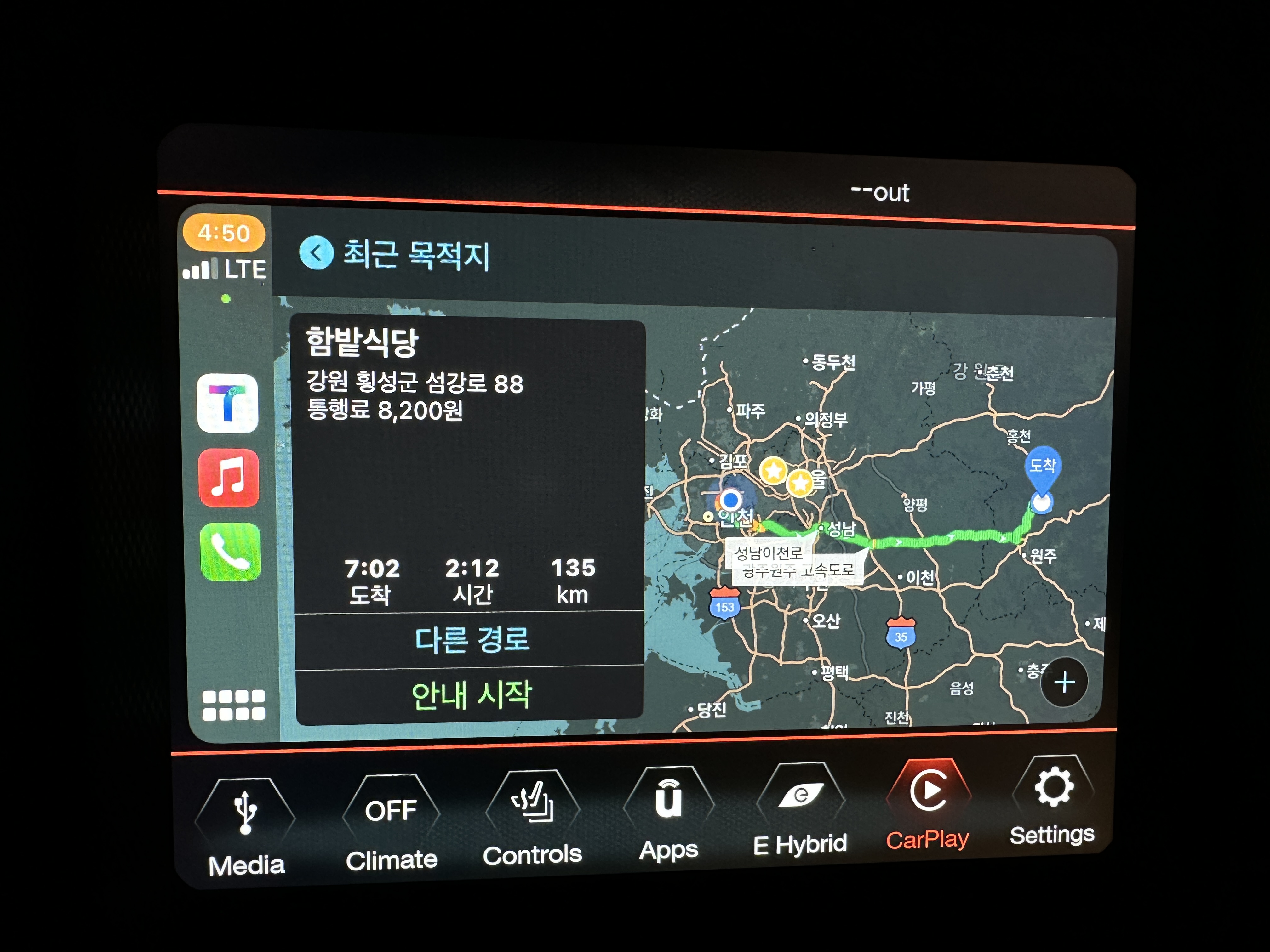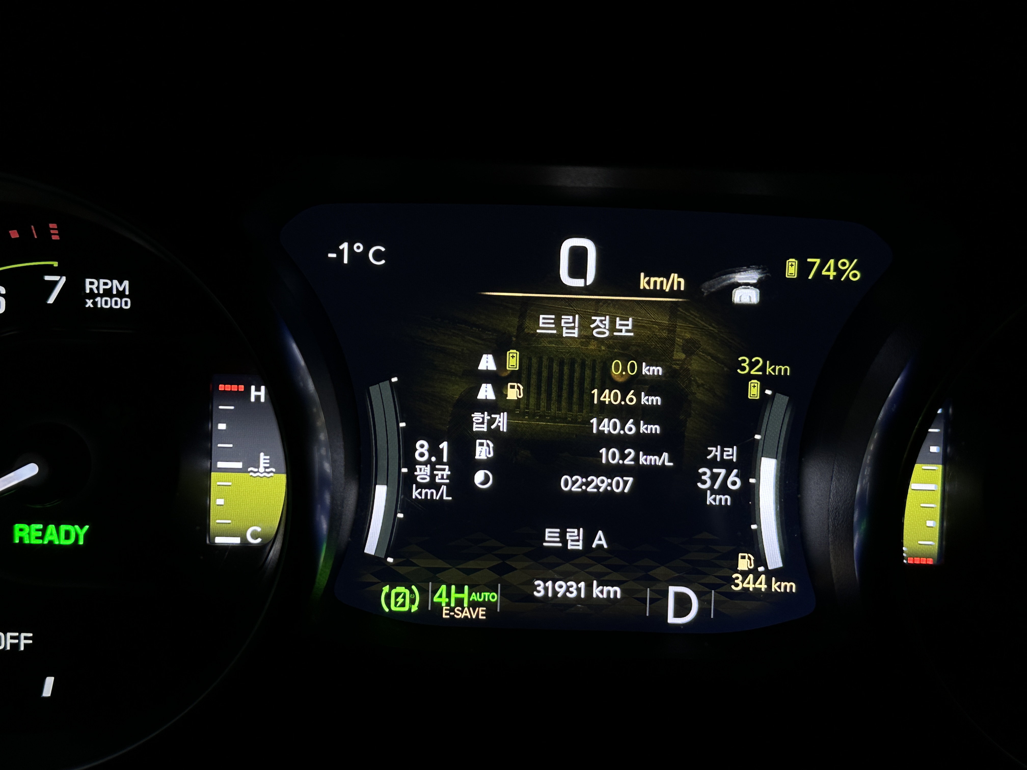 연비 결과는 8.4km/L로 생각보다 좋은 연비는 아니었는데 배터리 잔량이 하나도 없는 상태에서 주행하면서 회생제동으로 충전하며 배터리로만 4km 주행을 하여 약 20% 정도는 배터리로만 주행 가능했다.