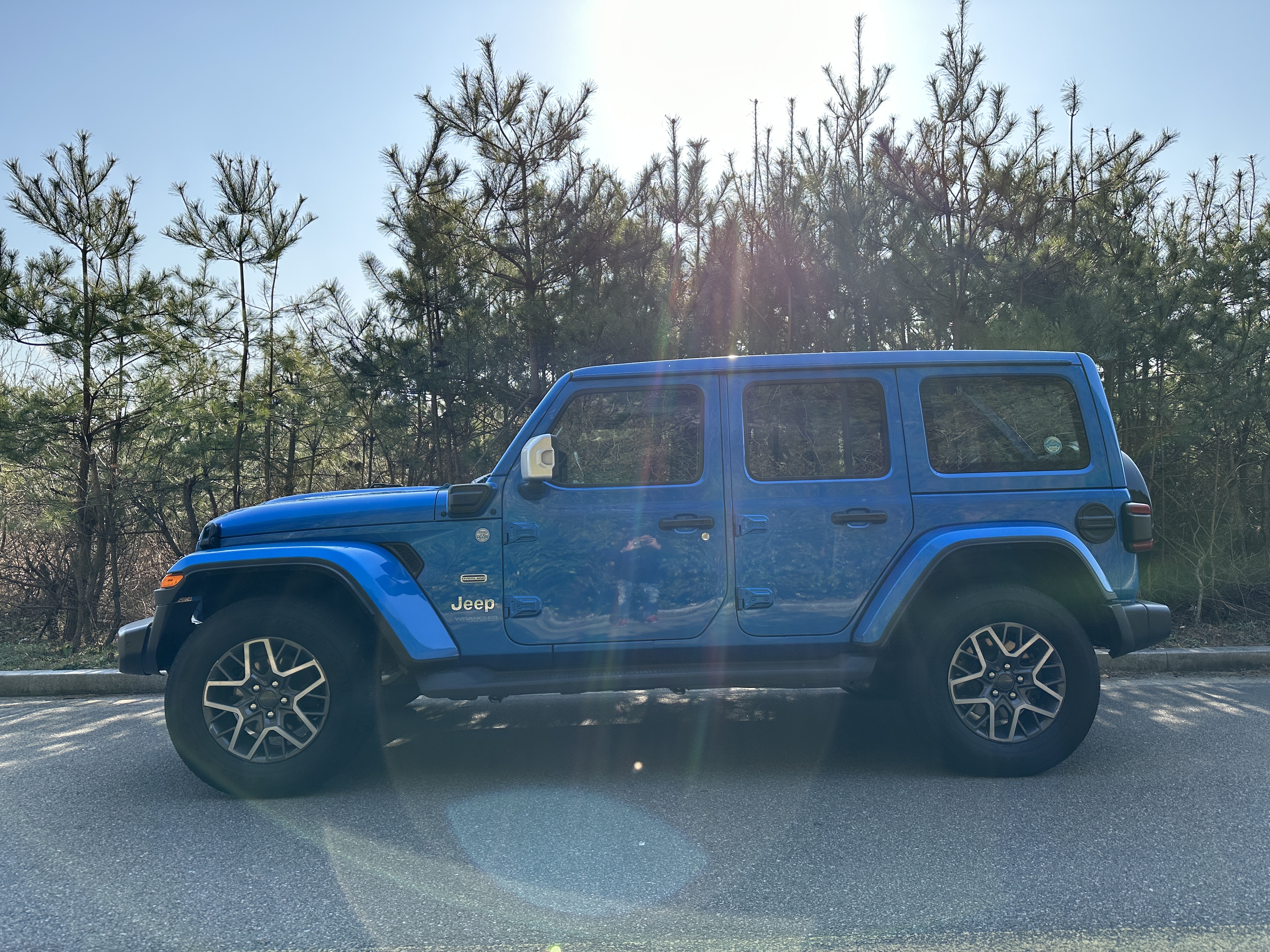 지프 랭글러 4Xe 모델은 2.0 가솔린 터보 엔진에 2개의 전기모터를 사용한 플러그인 하이브리드 차량으로 전기차처럼 충전해서 전기 모드로 약 32km 정도 주행이 가능한 차량이다. 가솔린과 배터리로 주행 시 약 630km 주행이 가능한 모델이다.