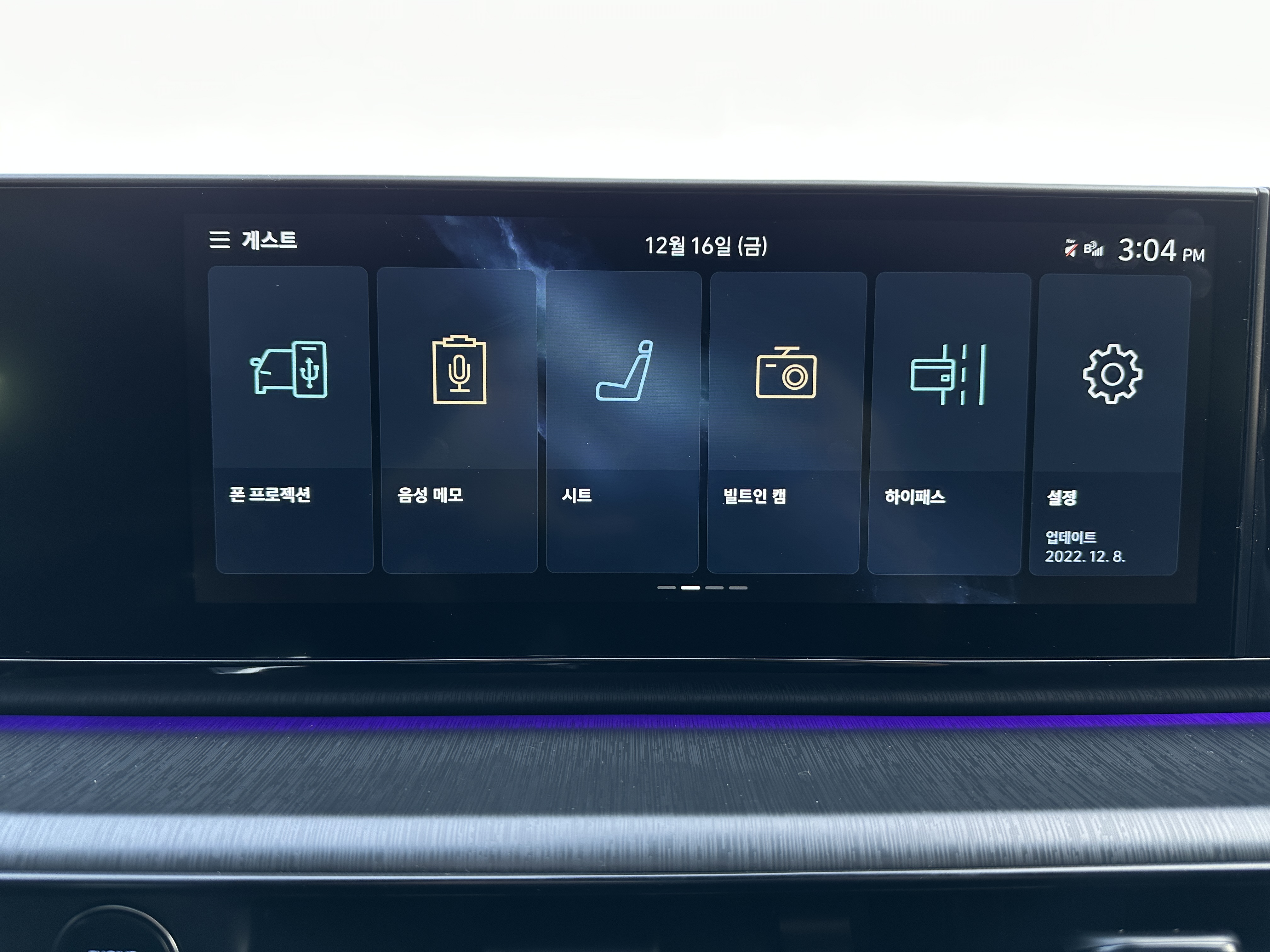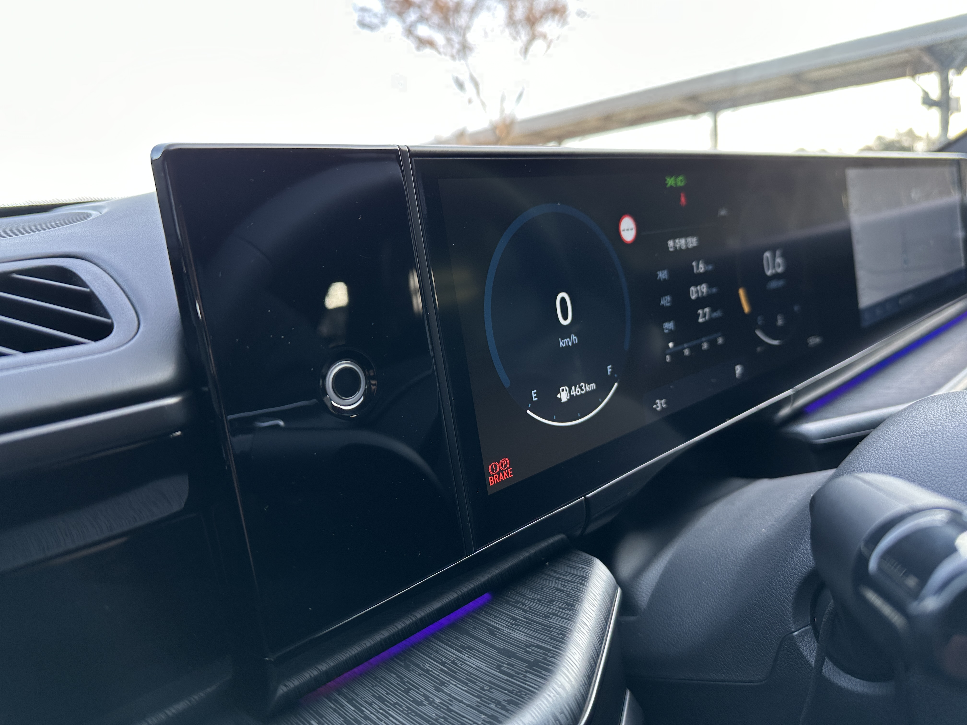 여기에 새로운 기능은 실내 지문 인증 시스템이 추가되는데 사실 넓은 공간을 뜬금없이 사용하고 있다. 예전 현대 그랜저 IG 모델에서 인포테인먼트 시스템에 뜬금없이 아날로그 시계가 적용된 적 있었는데 그때는 10.25인치 디스플레이가 처음 적용되려다가 차량 출시일정과 맞지 않아 어쩔 수 없이 아날로그시계를 적용했다. 그처럼 디자인적으로 실내 지문 인증 시스템만 적용되기에 넓은 패널은 원래는 차량 트림이나 아니면 터치가 되는 다른 기능으로 활용하려다가 차량 출시일정과 맞지 않아 이 기능이 이 쪽으로 들어온 게 아닌가 하는 합리적인 의심이 들기도 한다.