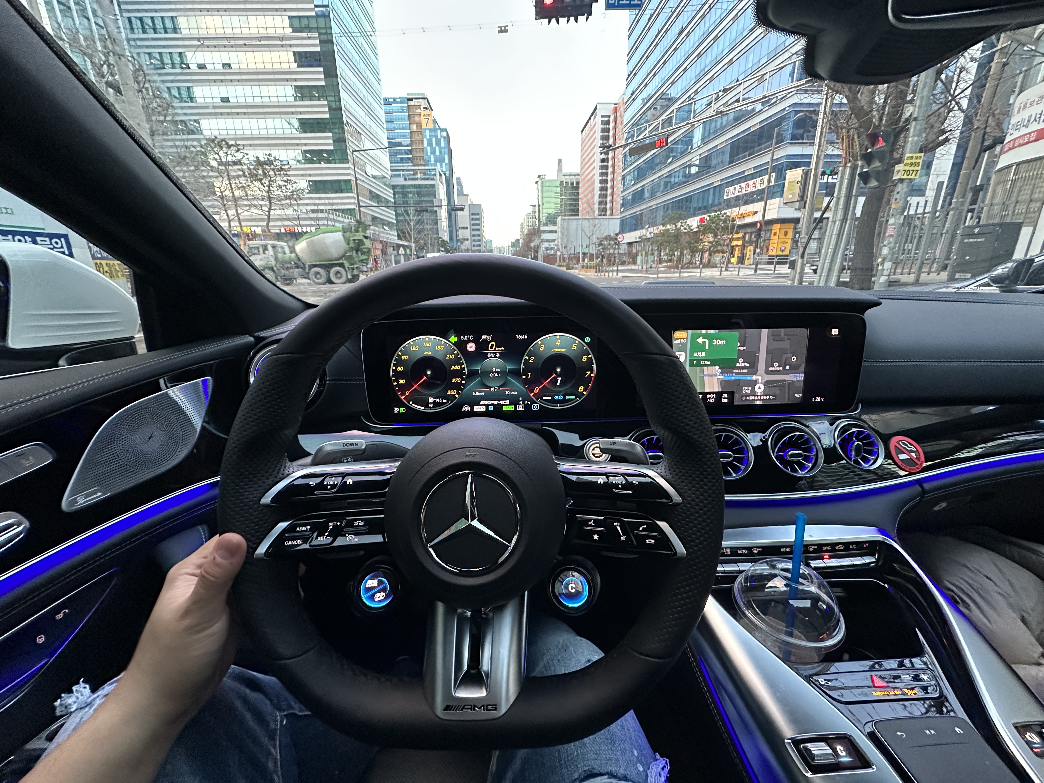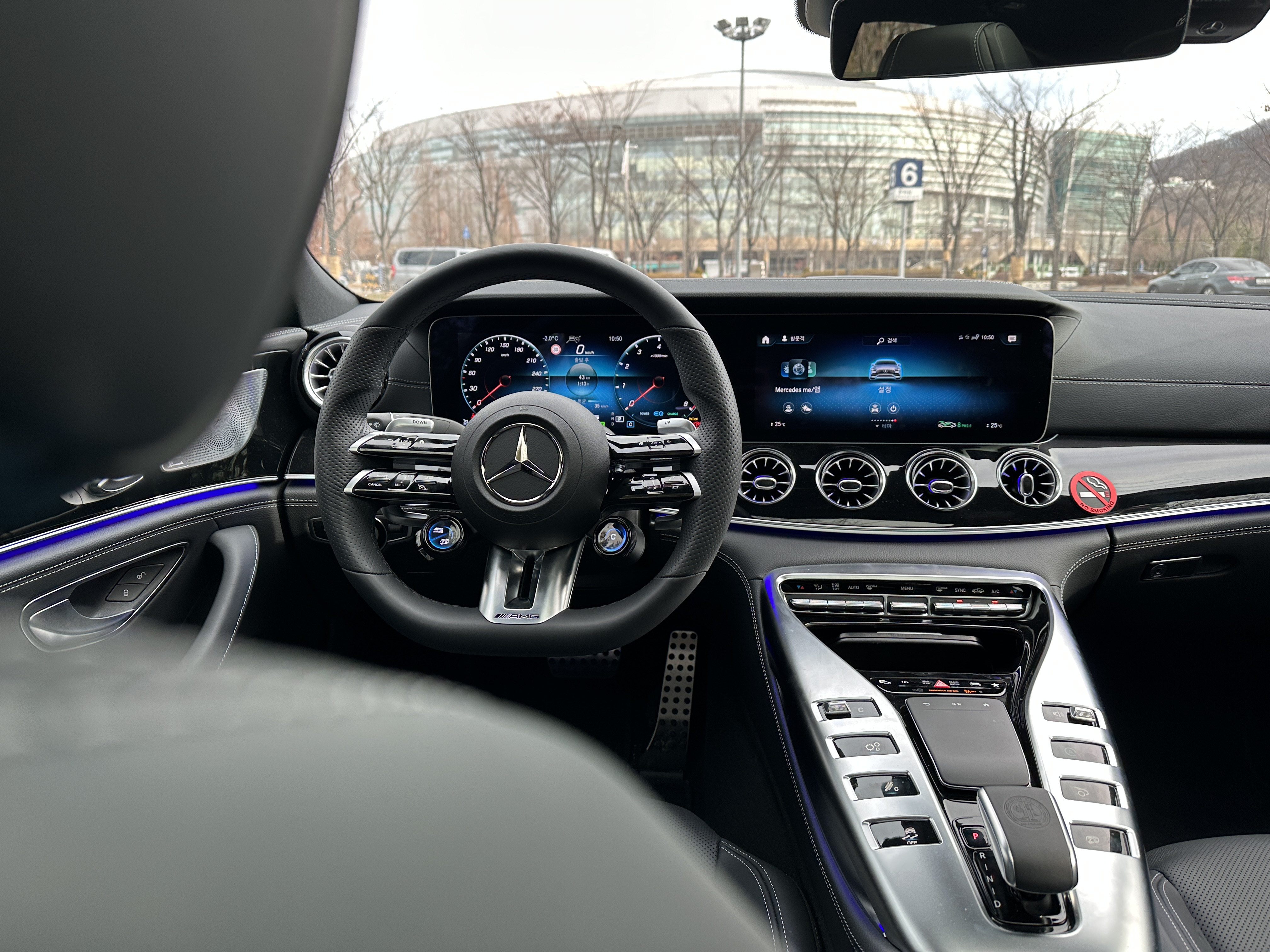 벤츠 AMG GT43 4도어 모델에 아쉬운 점은 생각보다 조용한 배기사운드 그리고 시내 주행 연비이다.