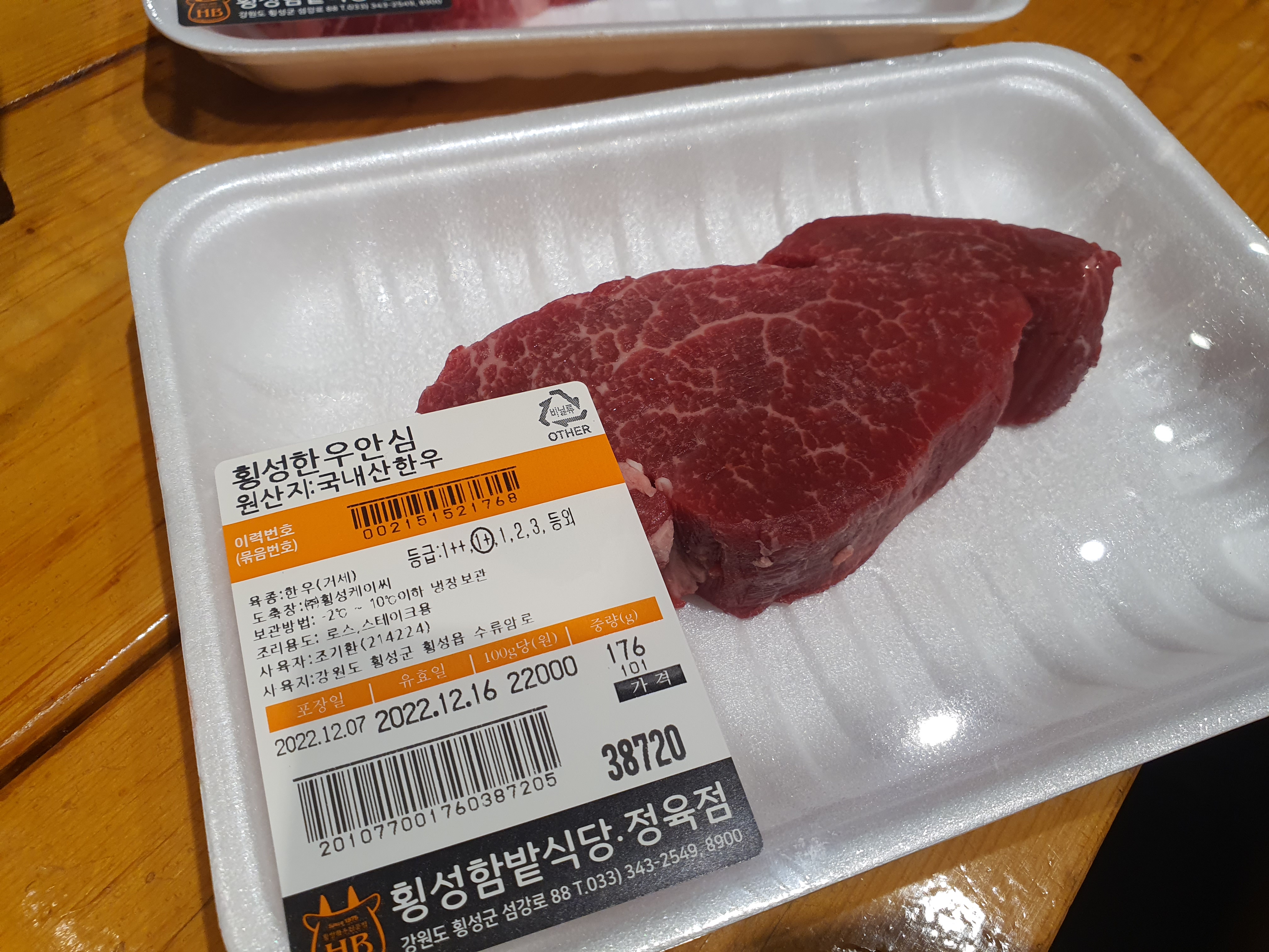 횡성 한우 정육식당 #함밭식당 은 이렇게 고기 등급에 따라서 고기 가격에 따라서 내가 원하는 고기를 구입하면 된다.