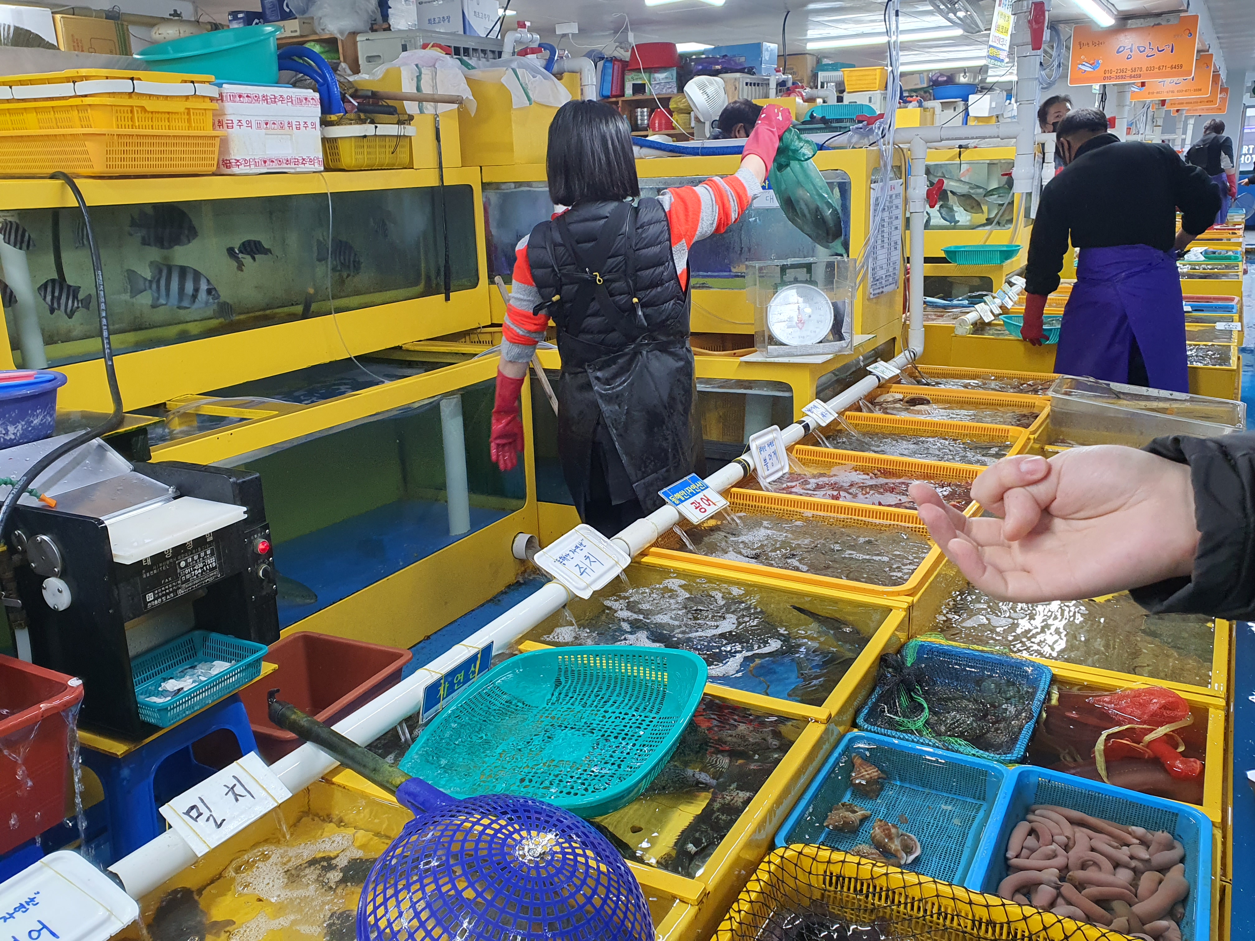 강원도 양양 물치항 회센터 안으로 들어오면 꽤 많은 #물치항횟집 들이 즐비해있다.