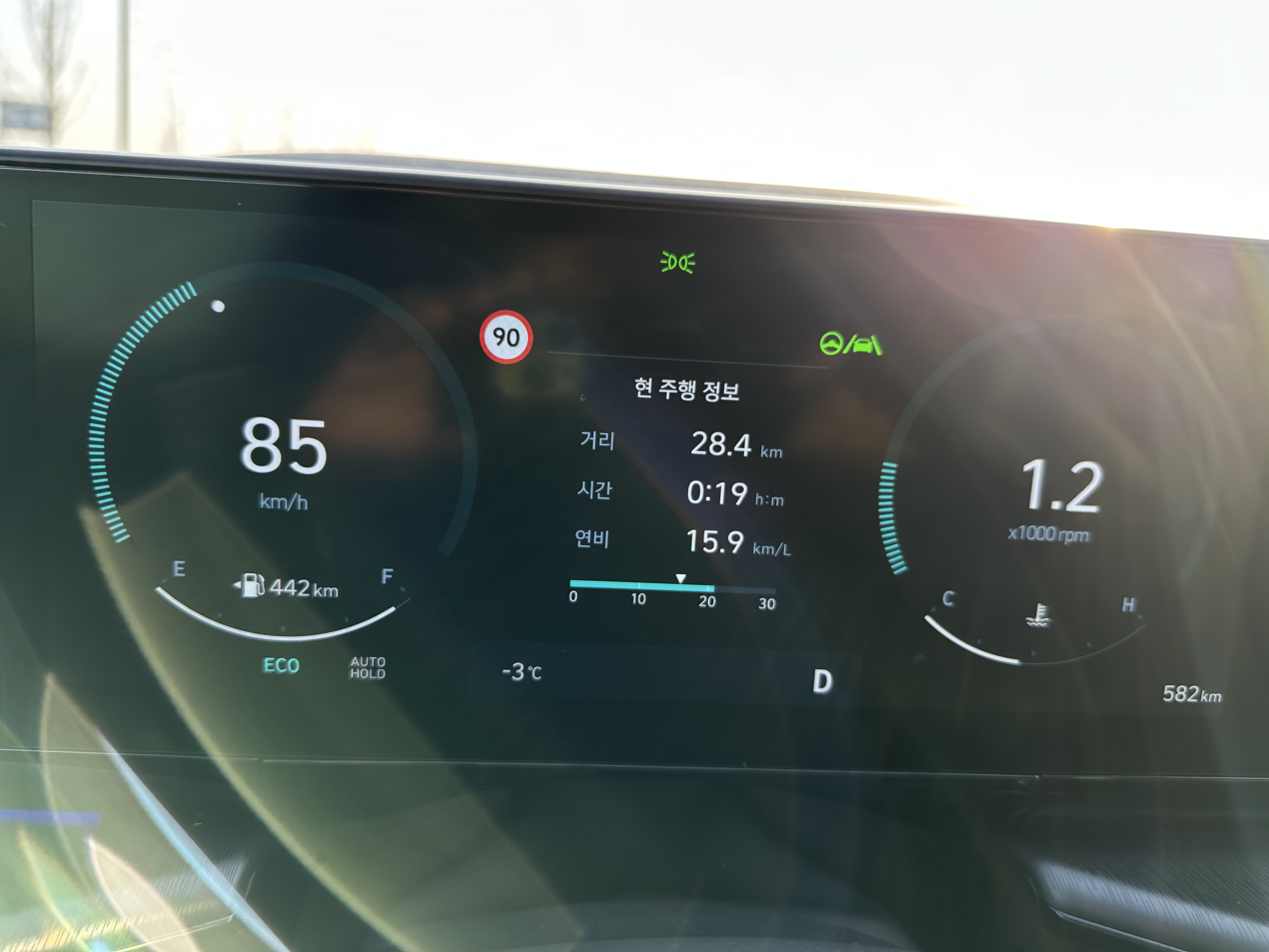 정말 궁금했다. 시속 90km/h HDA2 기능을 사용해서 내가 아닌 차량 스스로 주행했을때 7세대 그랜저 3.5 가솔린 모델과 똑같이 달려보면 과연 어떤 결과가 나올까??? 동일한 구간에서 비슷한 날씨와 시간대에 그랜저 3.5 가솔린 신형 모델을 똑같이 주행한 적이 있었기에 HDA2 기능을 사용해서 차량이 가장 없는 시간에 연비 테스트를 해봤다.