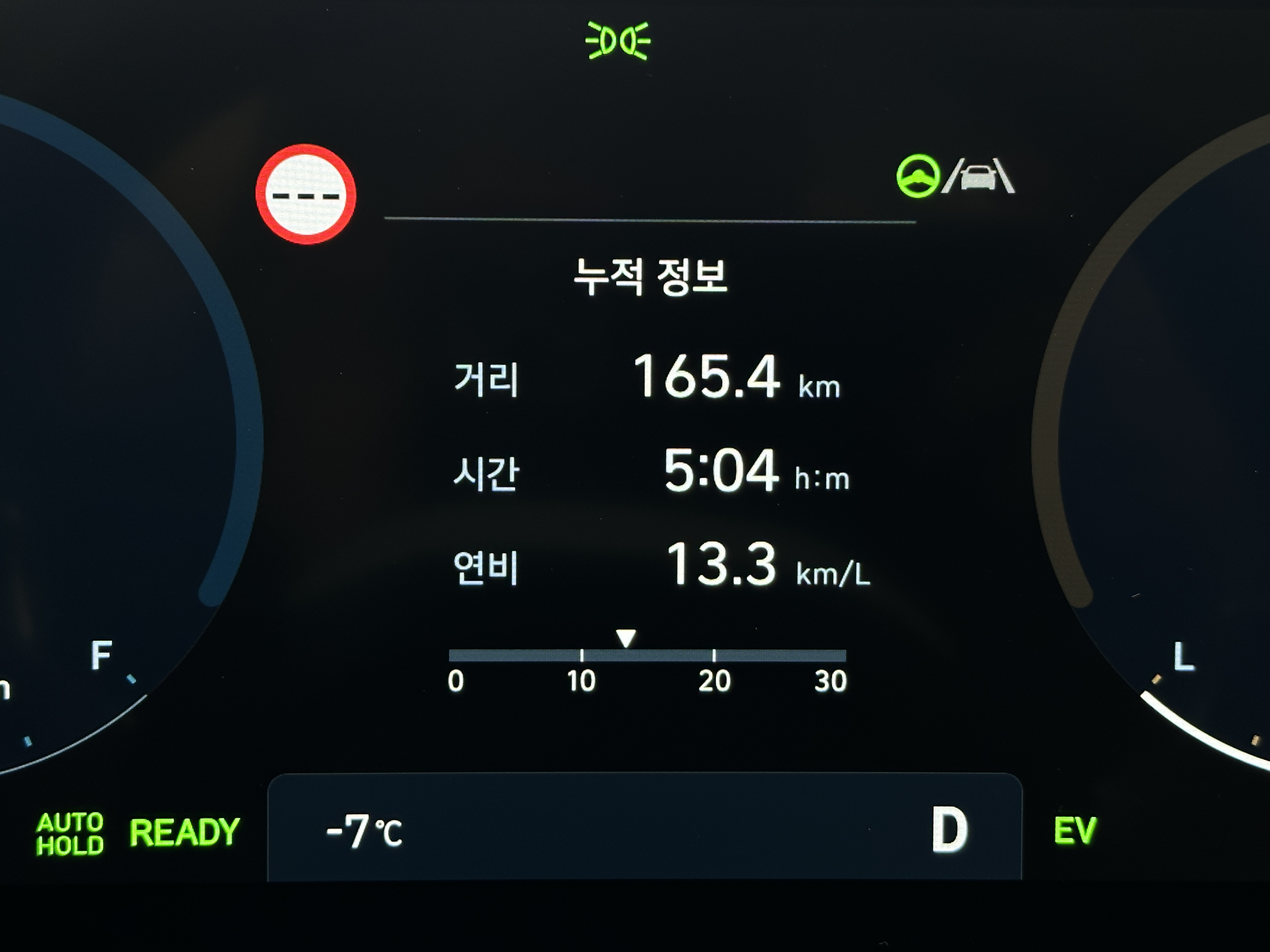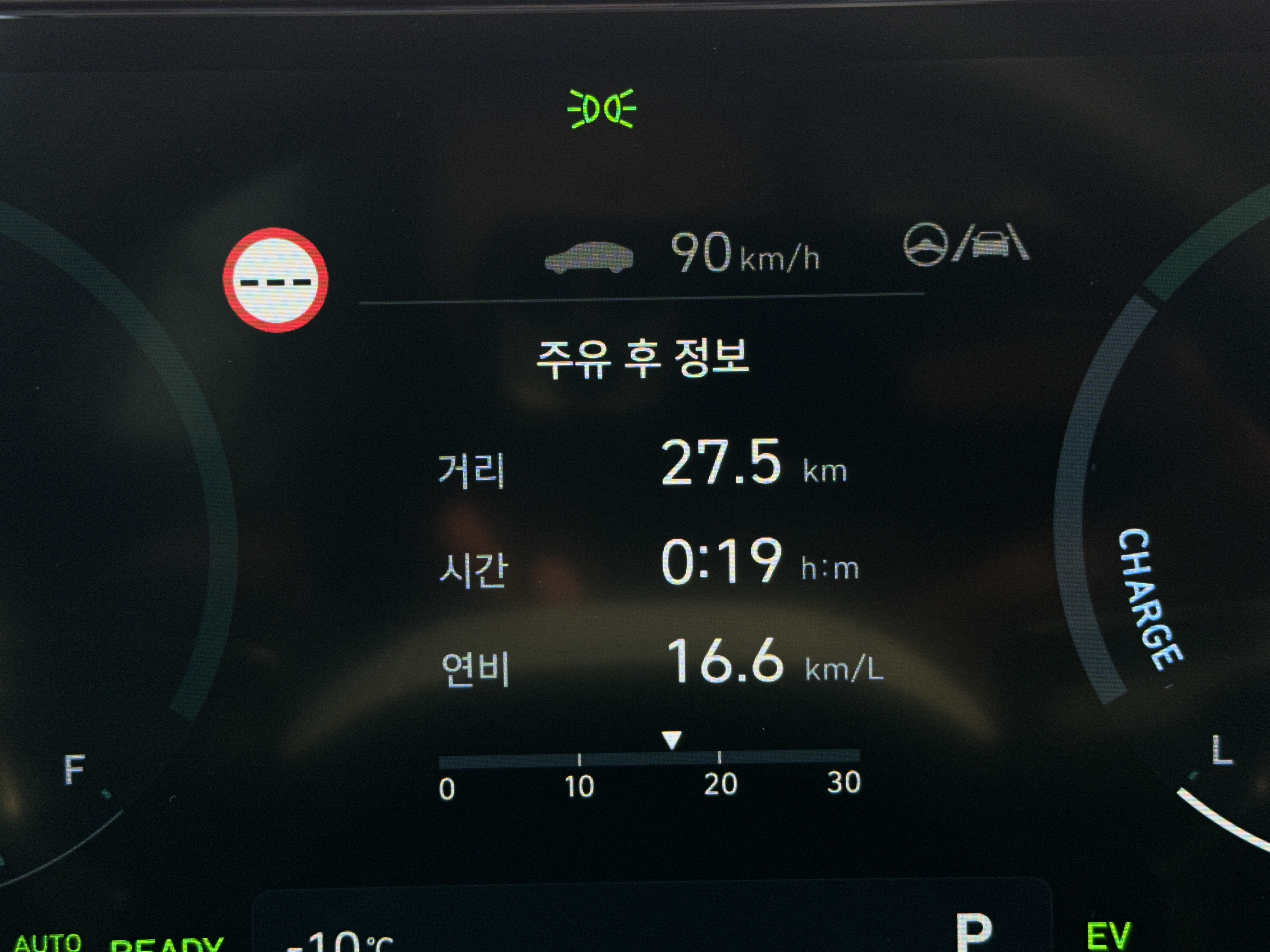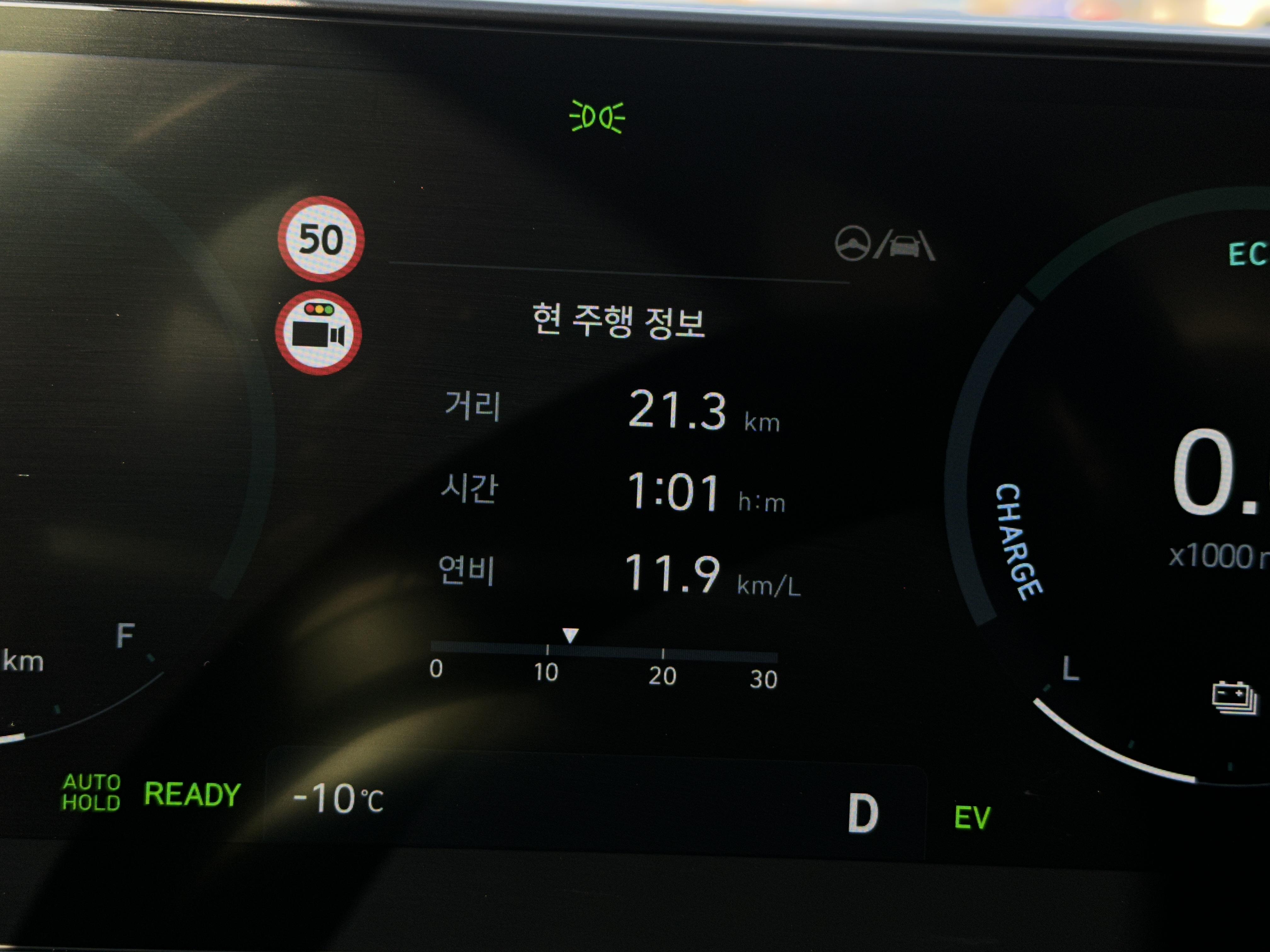 EV 모드를 생각보다 적극적으로 활용했는데도 불구하고 살짝 아쉬운 연비가 아닌가 생각되었는데 처음 출발당시 너무 심한 정체로 인해서 다시 테스트를 시작했다.