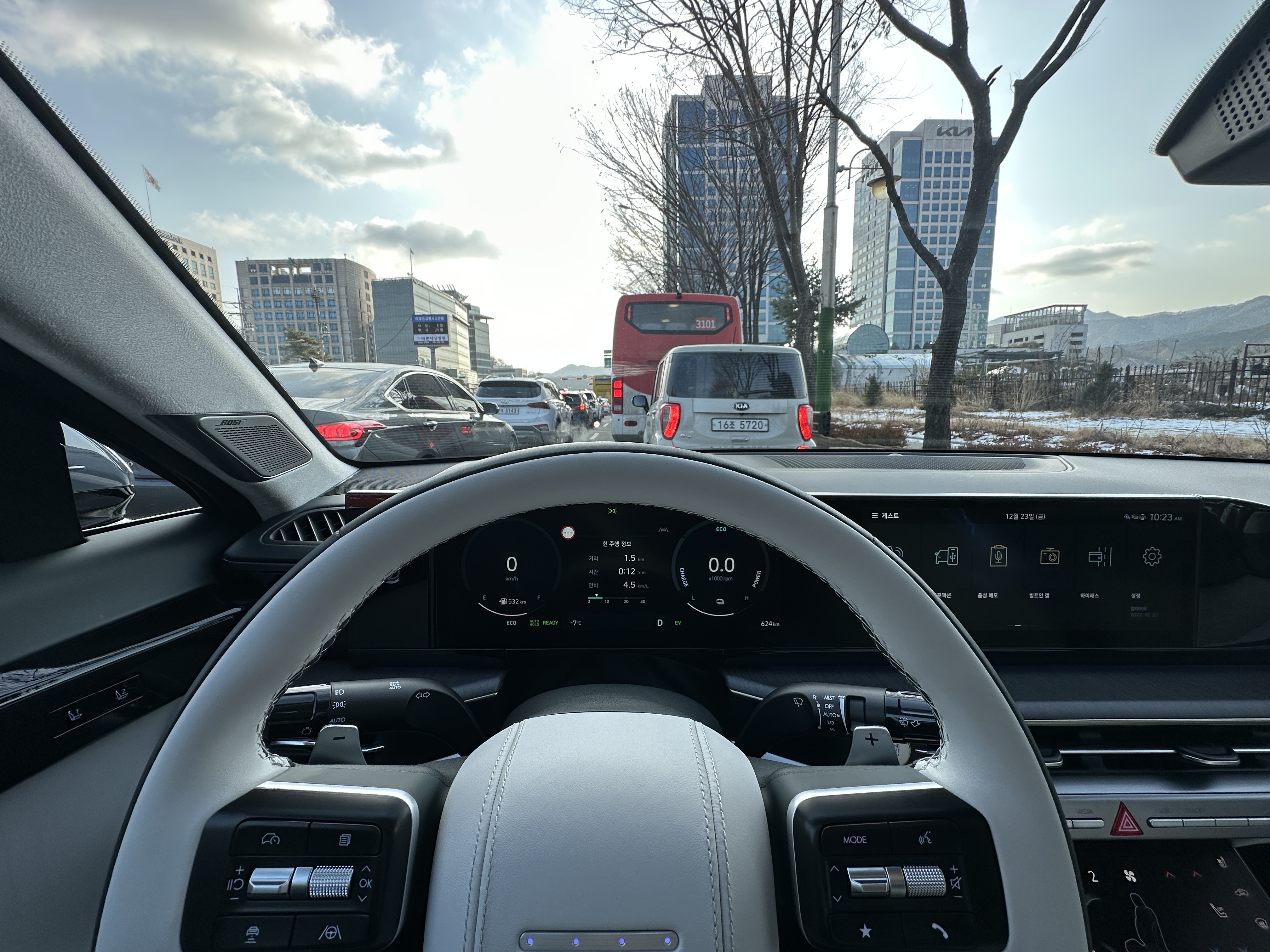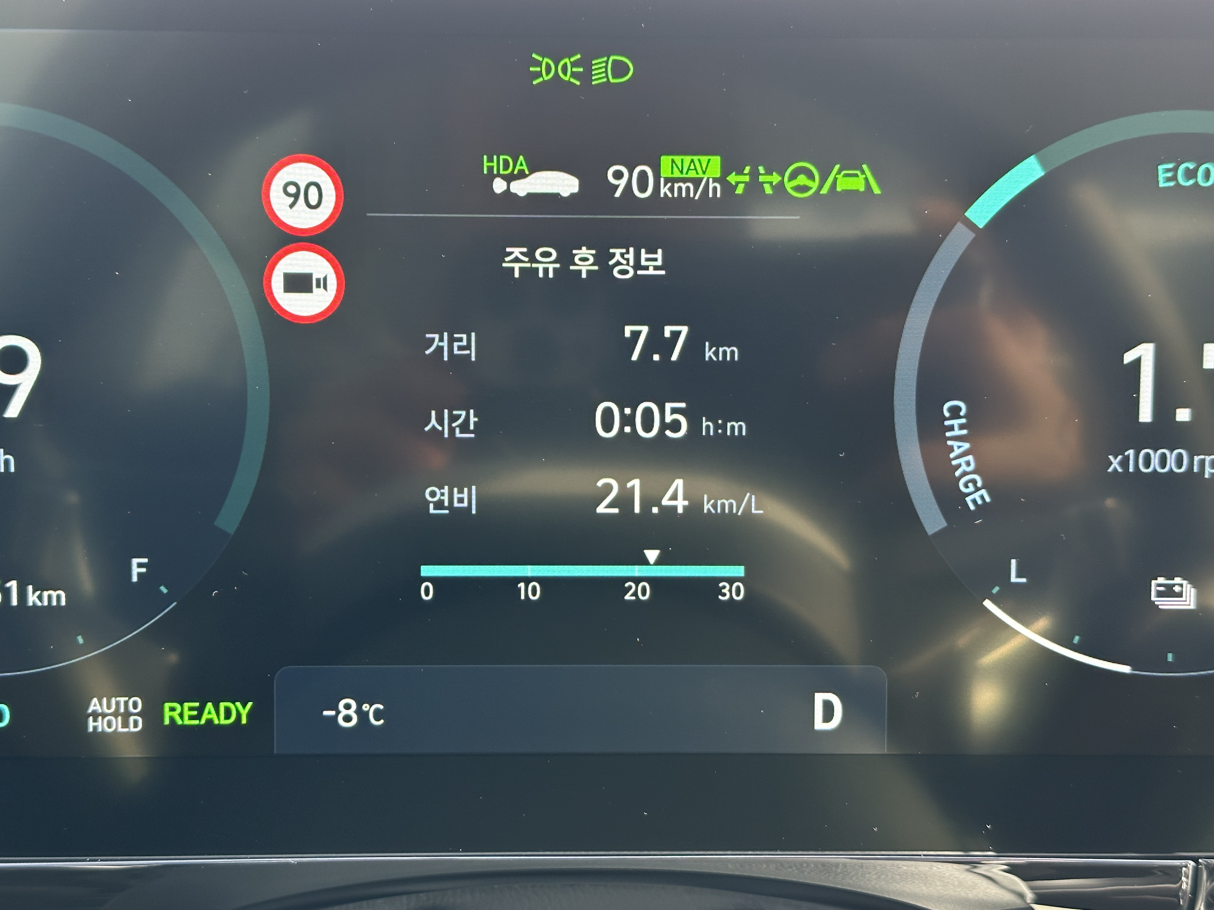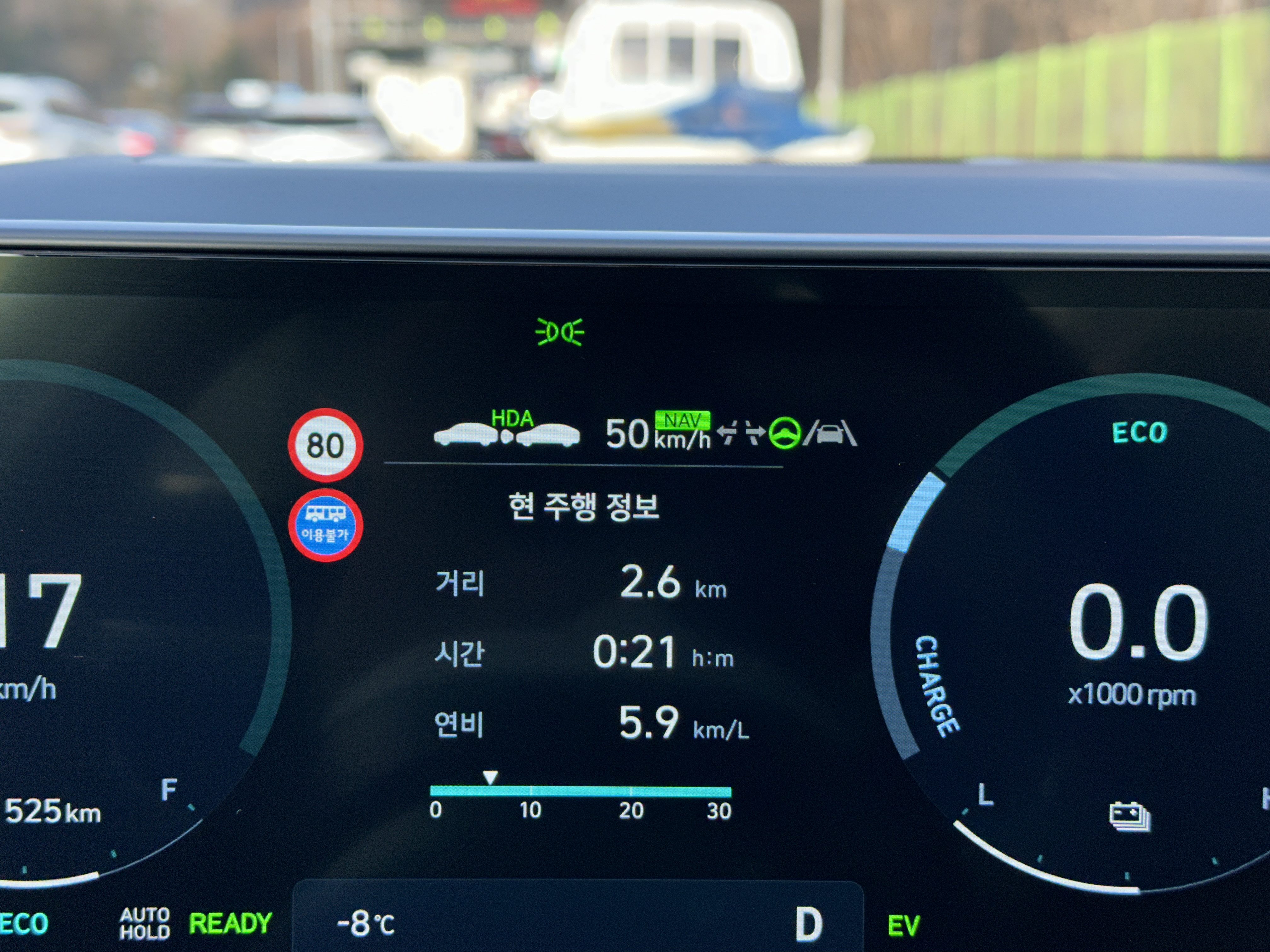 EV 모드를 생각보다 적극적으로 활용했는데도 불구하고 살짝 아쉬운 연비가 아닌가 생각되었는데 처음 출발당시 너무 심한 정체로 인해서 다시 테스트를 시작했다.