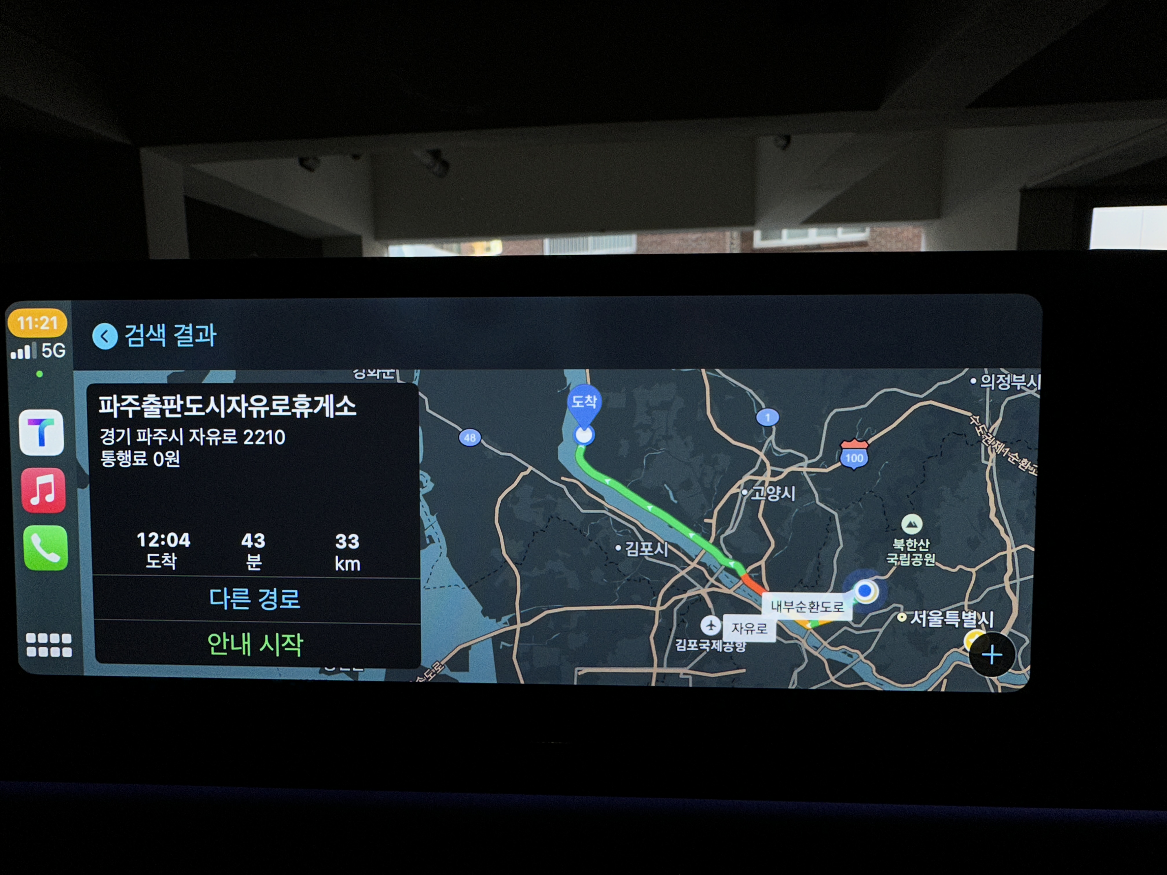 양재 시민의숲에서 홍제역까지 대략적으로 21.3km 주행을 했으며 시간은 1시간 소요되어 연비는 11.9km/L를 보여줬다.