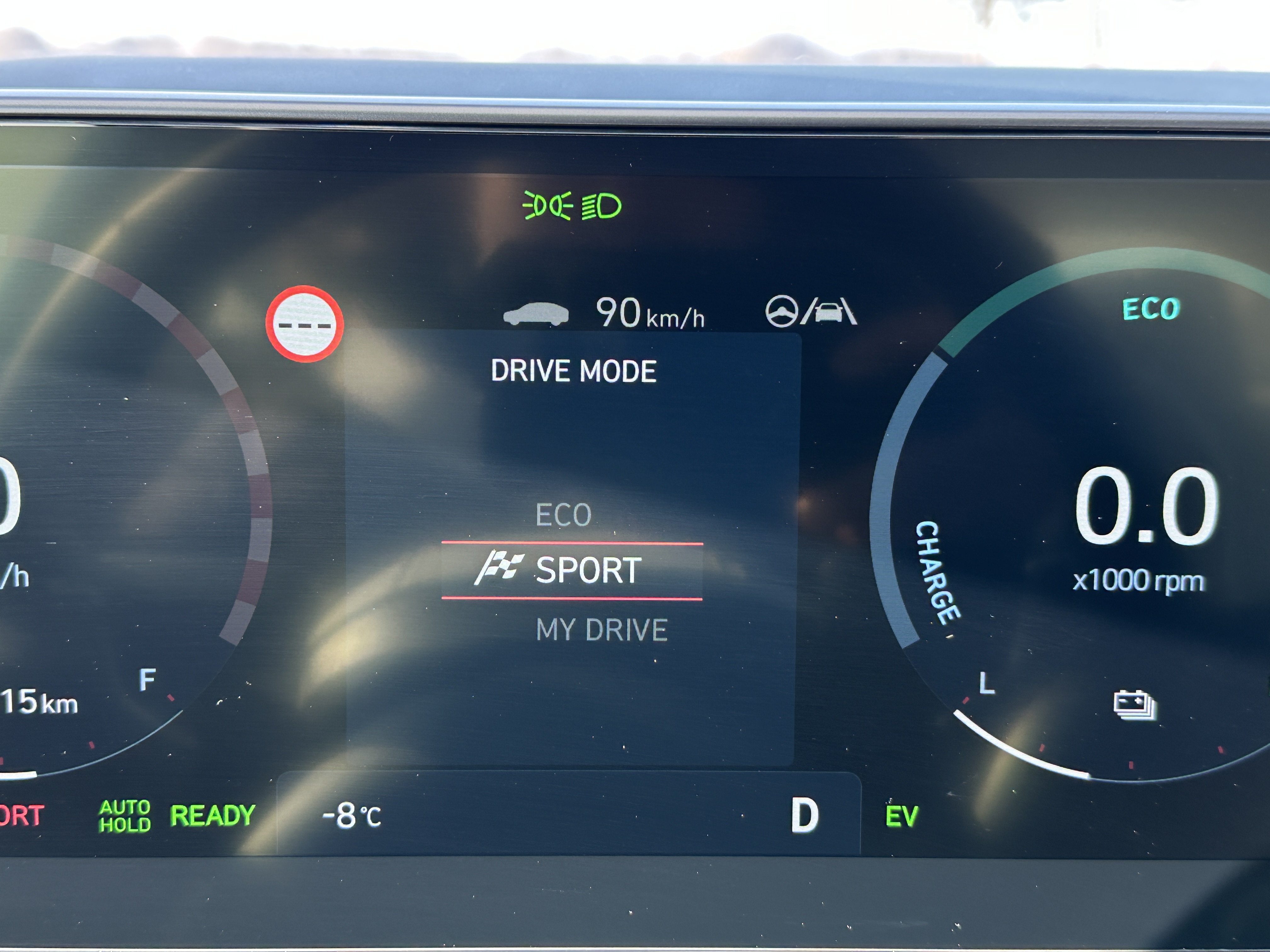 그렇다면 반대로 스포츠 모드로 1.6 가솔린 터보 하이브리드를 막 밟아보면 연비는 어느 정도일까??