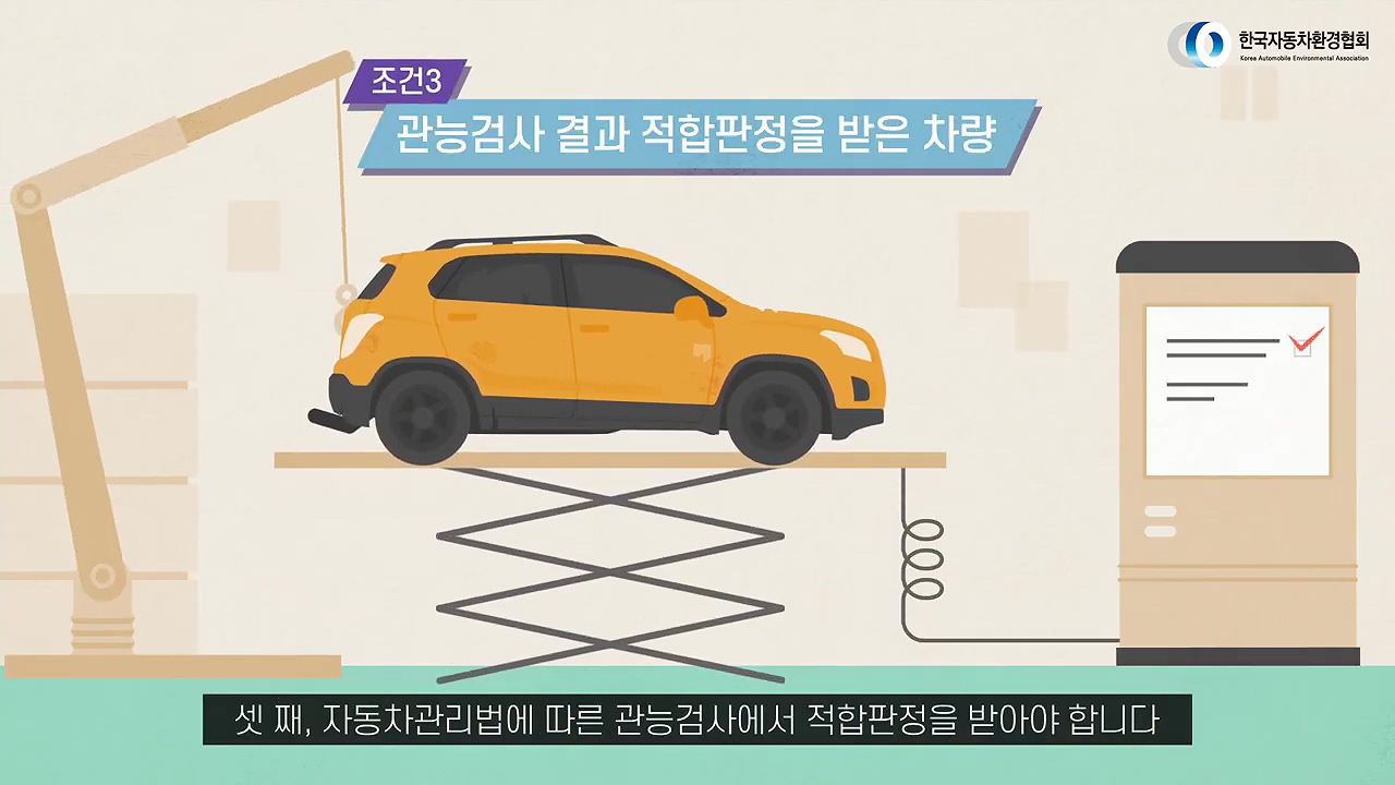 세 번째로 자동차관리법에 따른 관능검사에서 적합판정을 받아야한다.