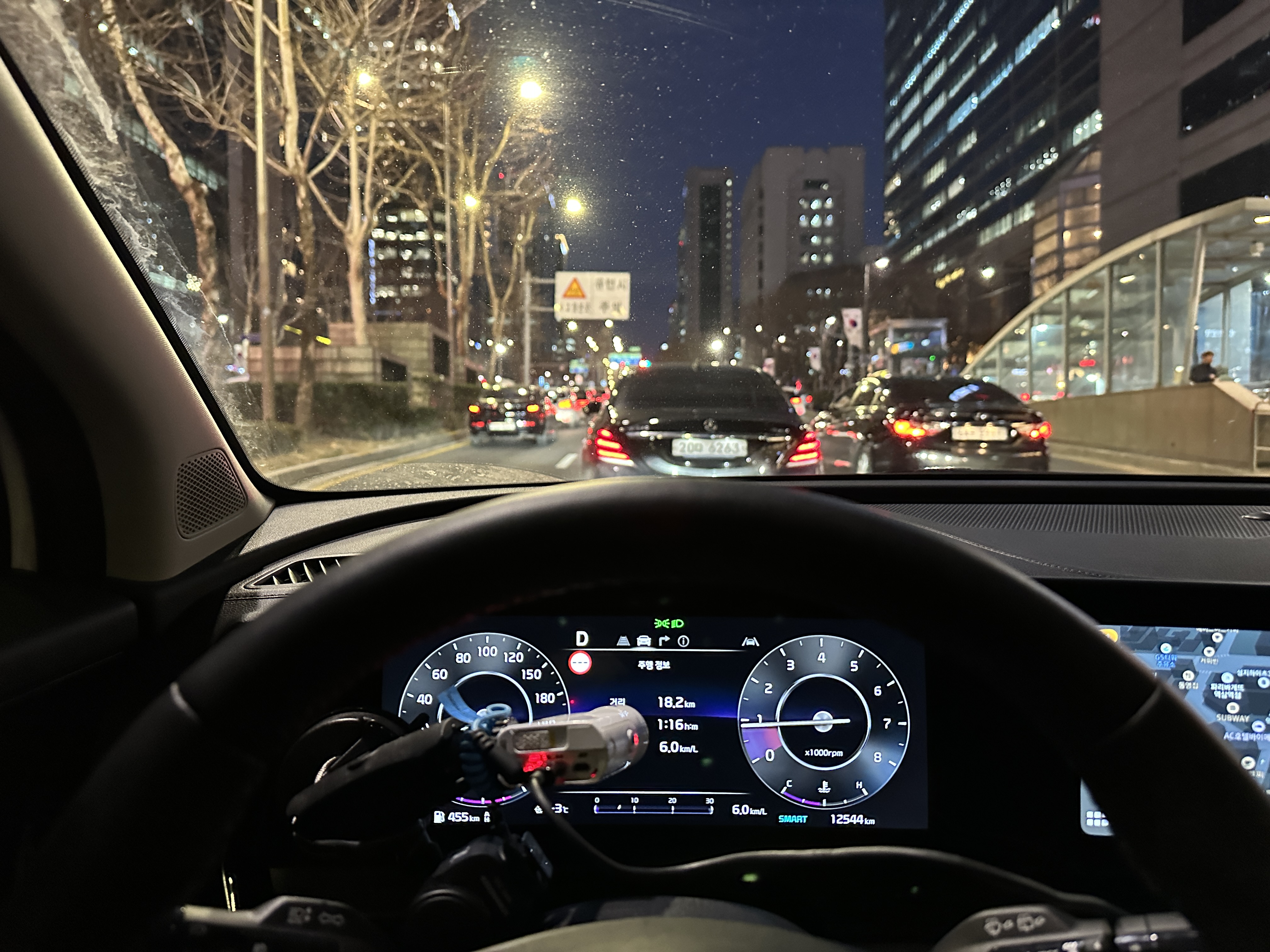 강남 퇴근길 연비테스트에 가장 큰 변수 지역은 바로 역삼역에서 삼성역 사이의 테헤란로이다. 이 곳은 약 2.3km 구간으로 안 막히면 평균 15분이면 주행 가능하지만 정말 많이 막히면 1시간 가까이 걸리는 곳이기도 하다. 참고로 사람이 이 구간을 걸어간다하더라도 25~30분이면 도달할 수 있는 거리기에 얼마나 막히는지 알 수가 있다.