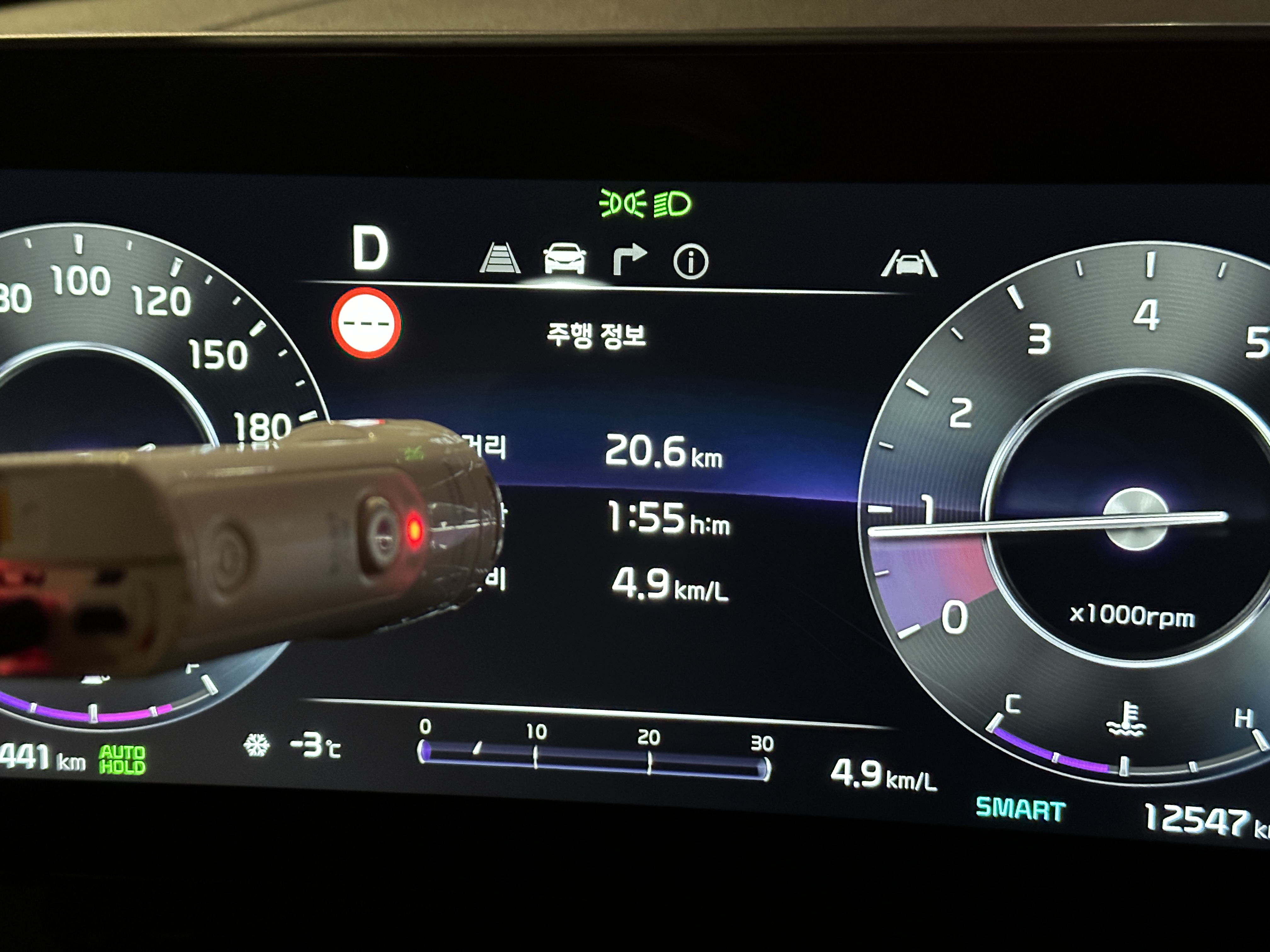 3.8km/L 라니.. 과연 이 연비테스트 끝은 과연 얼마나 될까 걱정이 되었는데 같은 첫 번째 연비 테스트 구간은 19분 소요되어 3.9km/L를 보여줬으며 경쟁 모델인 QM6 LPe 모델은 11분 소요되어 3.2km/L라는 연비를 보여줬다. 또한 스포티지 하이브리드는 20분으로 비슷한 시간에 10.7km/L로 확실히 막히는 도로에서 높은 연비를 보여줬다.