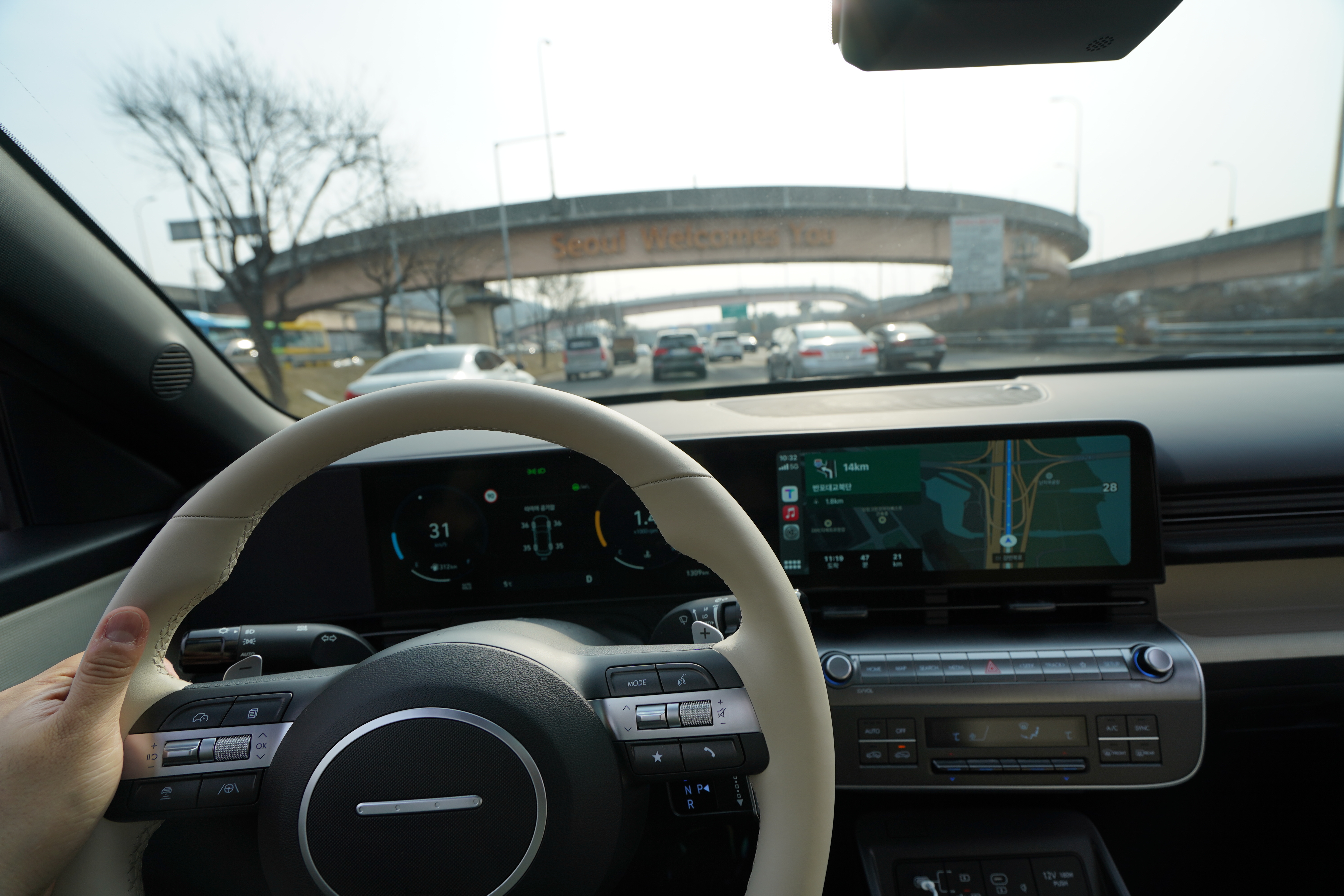 강남 퇴근길 연비 테스트는 사실 쓸때없이 막히는 길로만 왔을 때 연비이다. 하지만 잠실역에서 강변북로 그리고 서부간선도로로 달려보면 연비는 얼마일까?? 코나 1.6 가솔린 터보의 공인 복합 연비 12.2km/L보다 훌쩍 넘는 13.7km/L를 보여준다. 이 또한 약 30km를 주행하는데 55분이나 소요되었지만 달리면 달릴 수록 어느정도 연비가 보장되기 때문에 연비가 나쁘다라고 이야기하기는 어려운 차량이다.