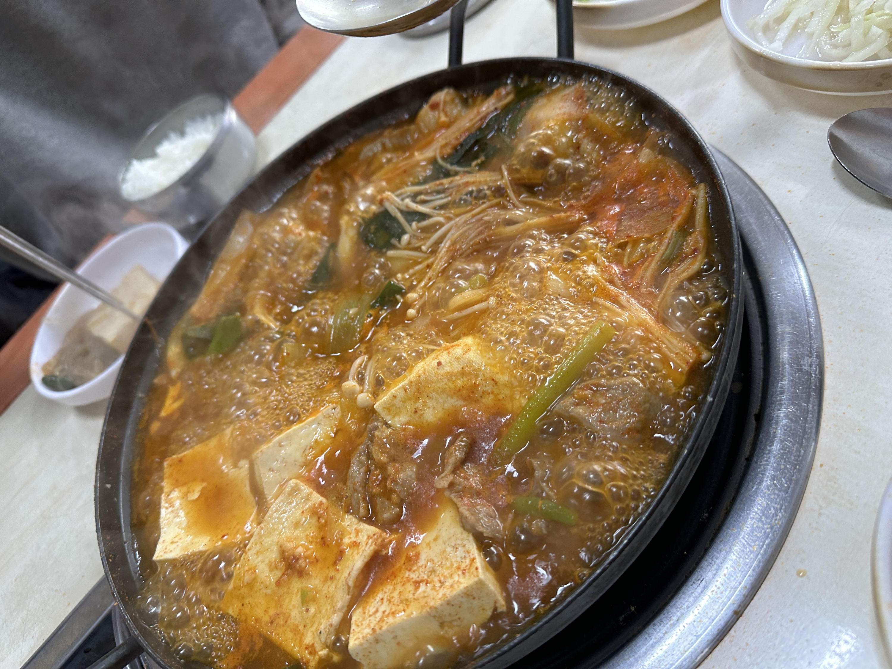 반찬은 올때마다 바뀌는거 같은데 총 4가지정도의 반찬은 찌개의 맛을 보충해줄 수 있는 다소 심심한 메뉴이다.