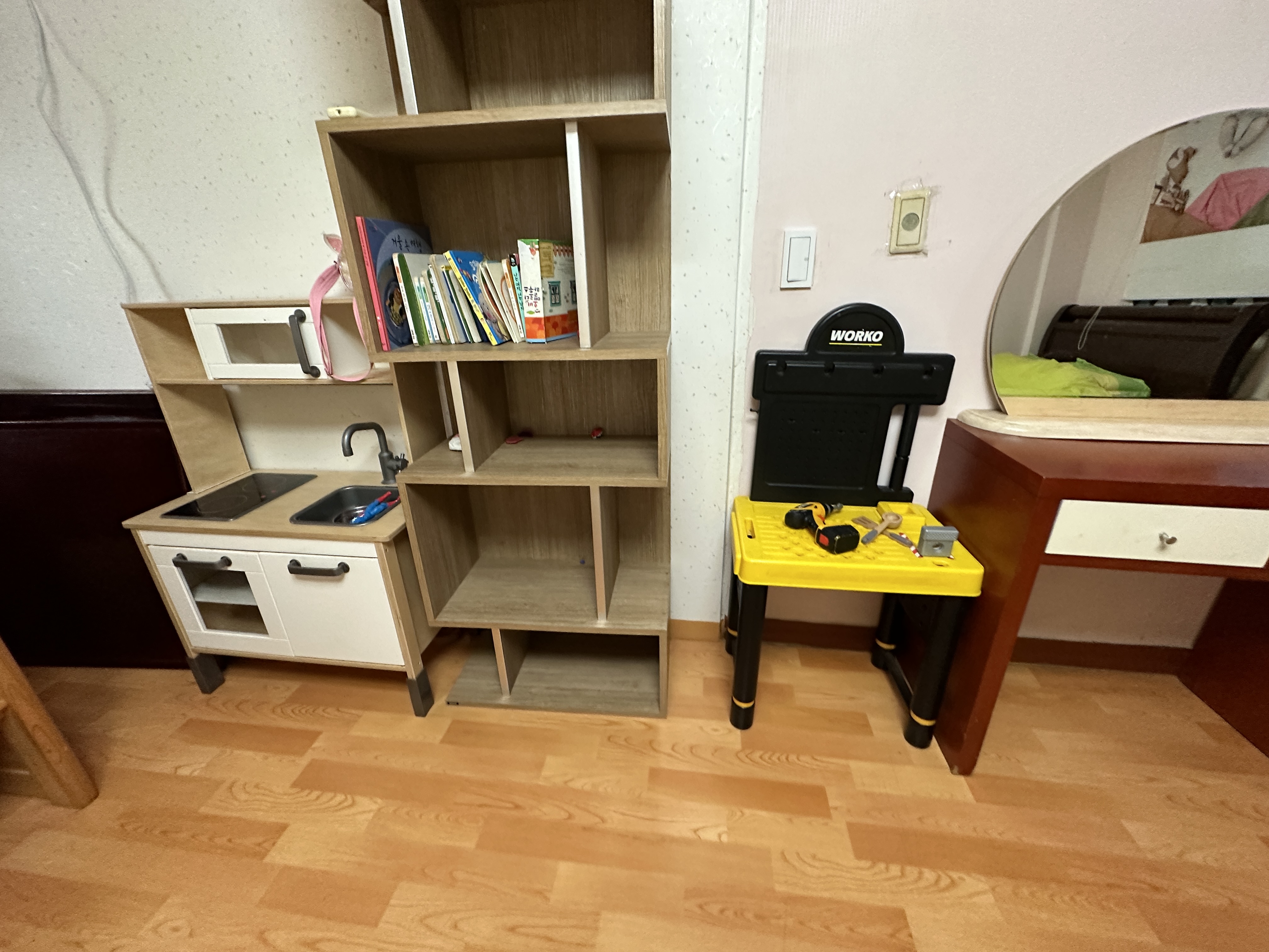 아이들이 좋아할 모든 것을 갖추고 있는 곳으로 다양한 인형과 장난감들 특히나 소꼽장난을 할 수 있는 아이템들이 이 방에서만 아이들끼리 놀아도 시간 가는 줄 모를거 같다.