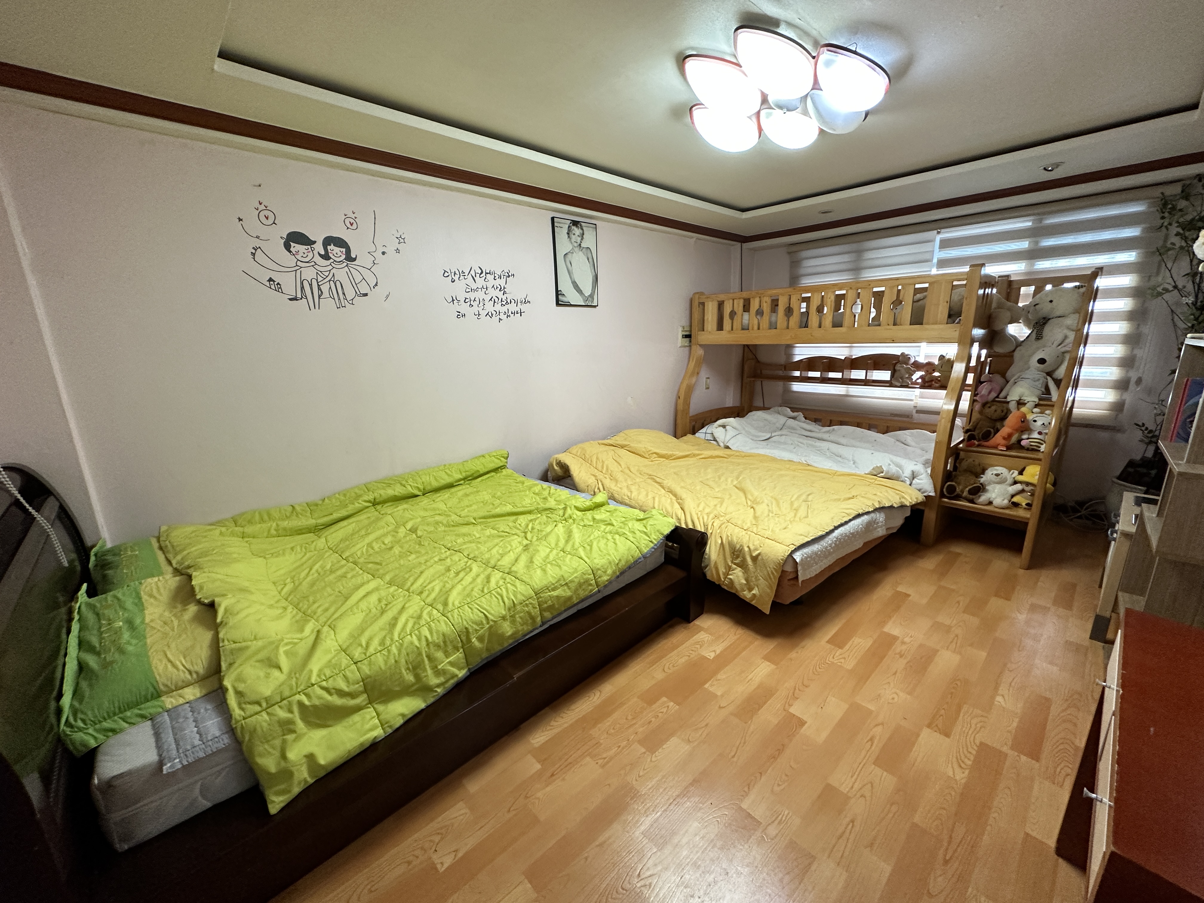 안방에는 총 4명 그리고 바닥까지 잔다면 그 이상도 잠을 잘 수 있는 방이다.