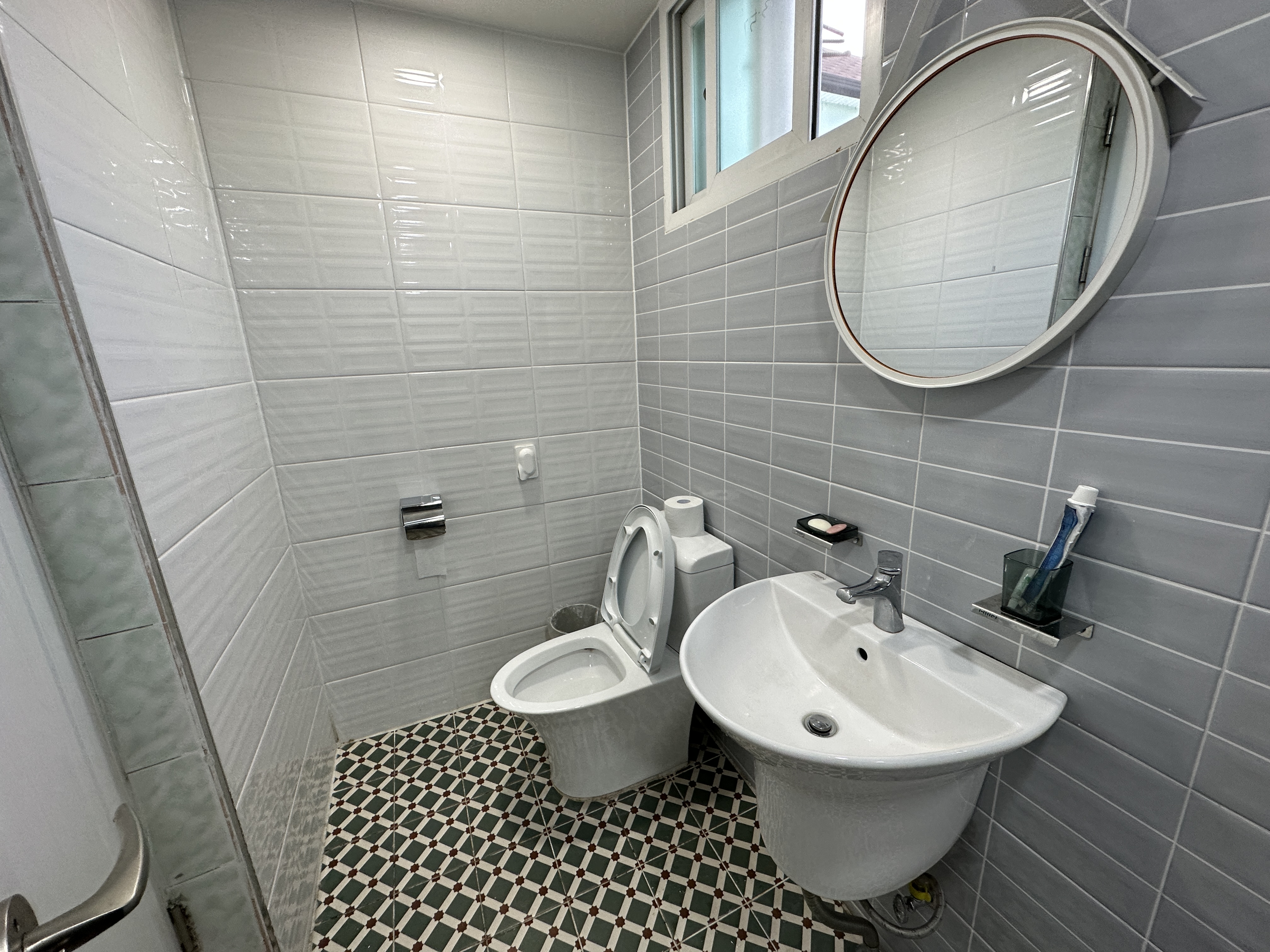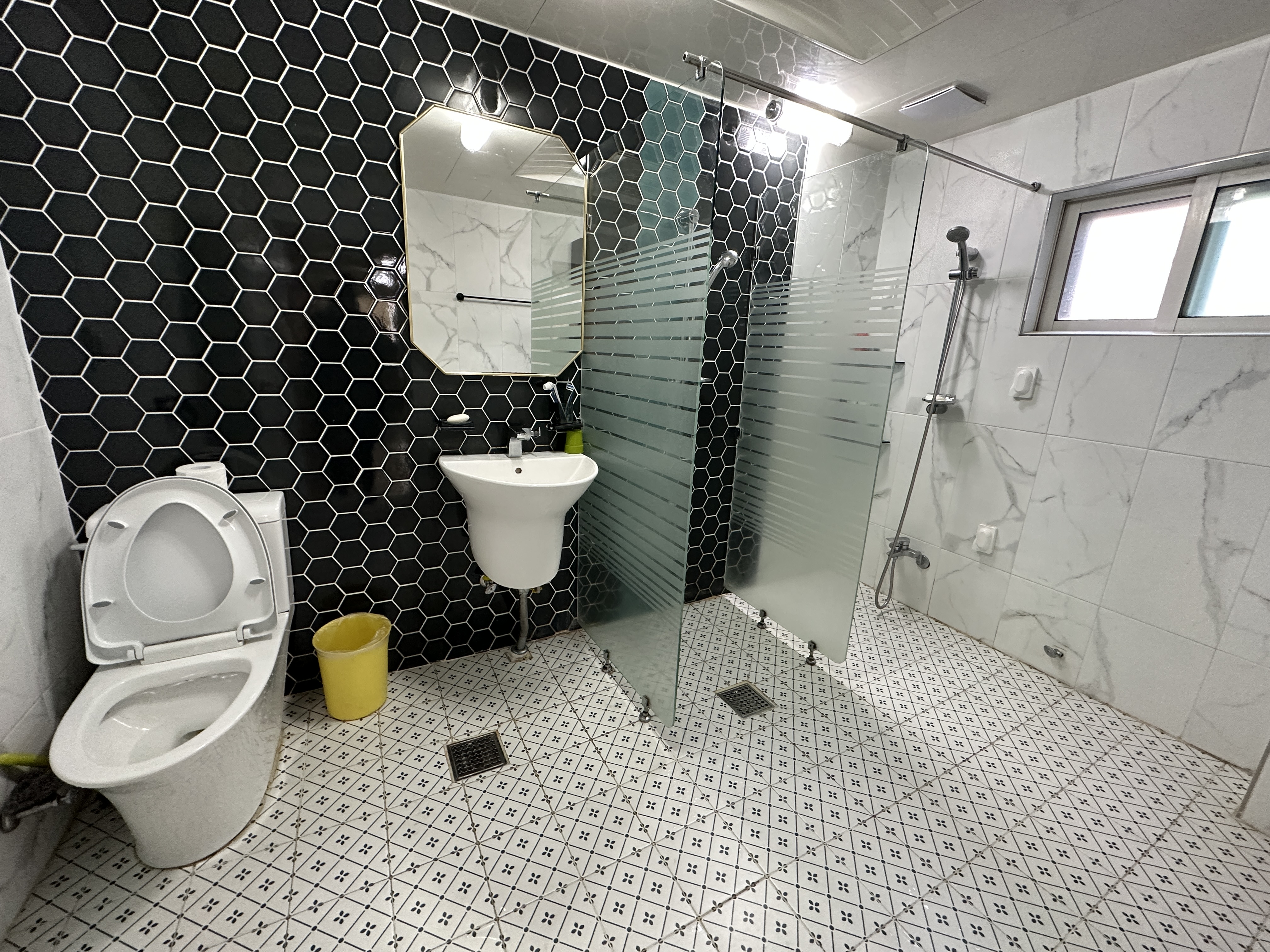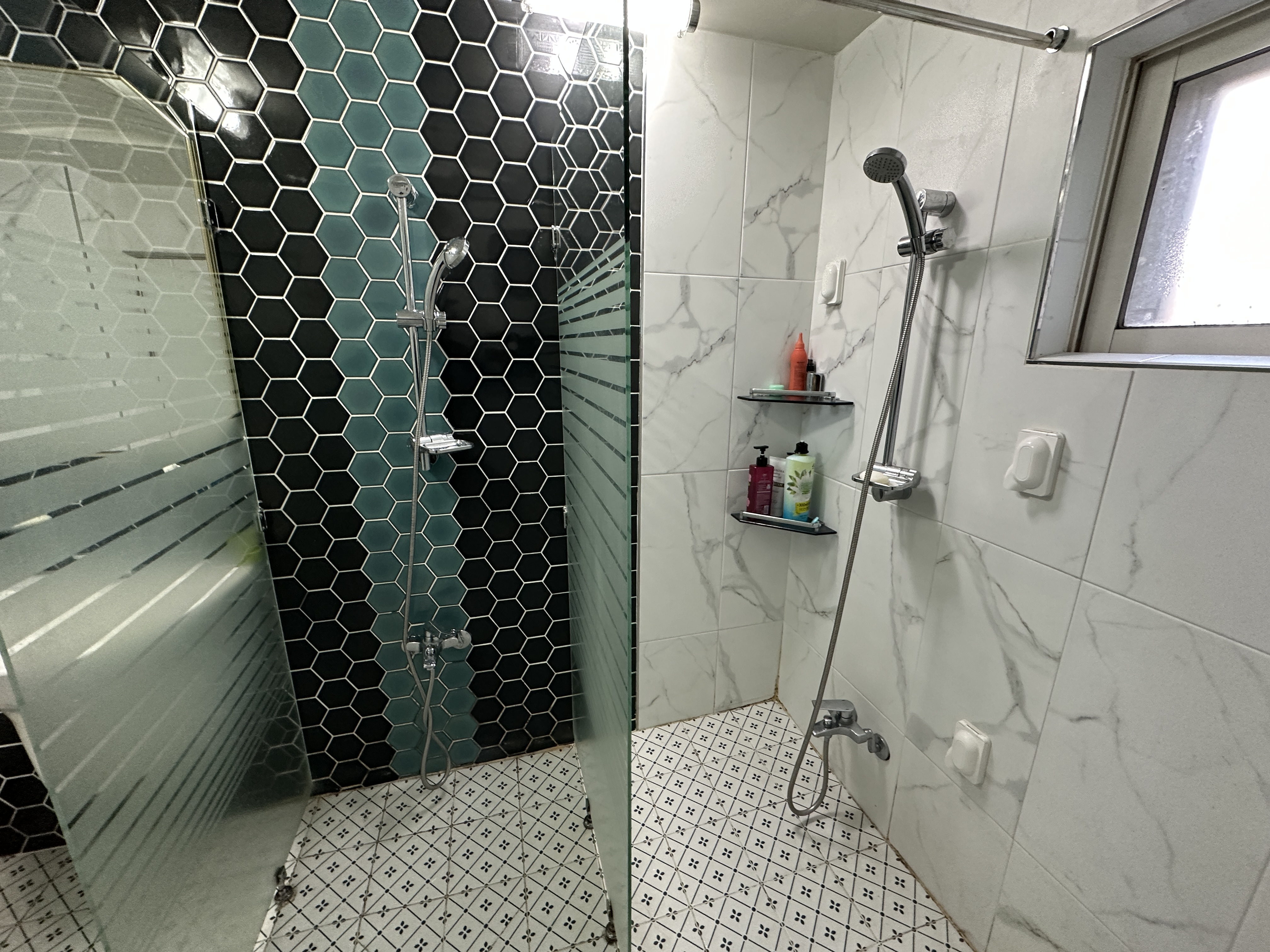 거실에 붙어 있는 화장실은 2개의 샤워시설이 적용되어 있는 욕실이 있어 총 2개의 화장실 3개의 샤워 시설이 있다.