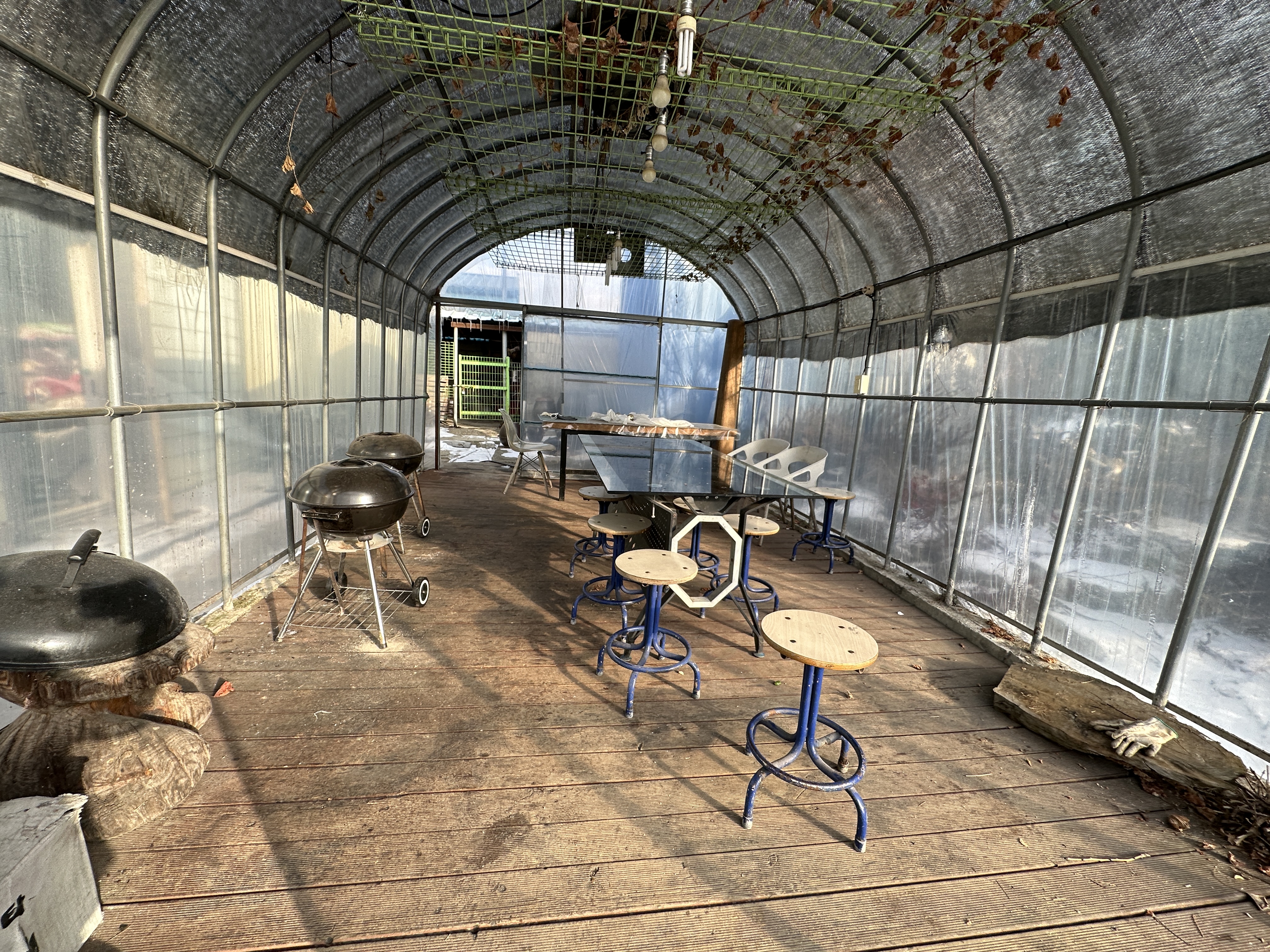 추운 겨울이였지만 이렇게 비닐하우스 안에서 고기를 구울 수도 있었다.