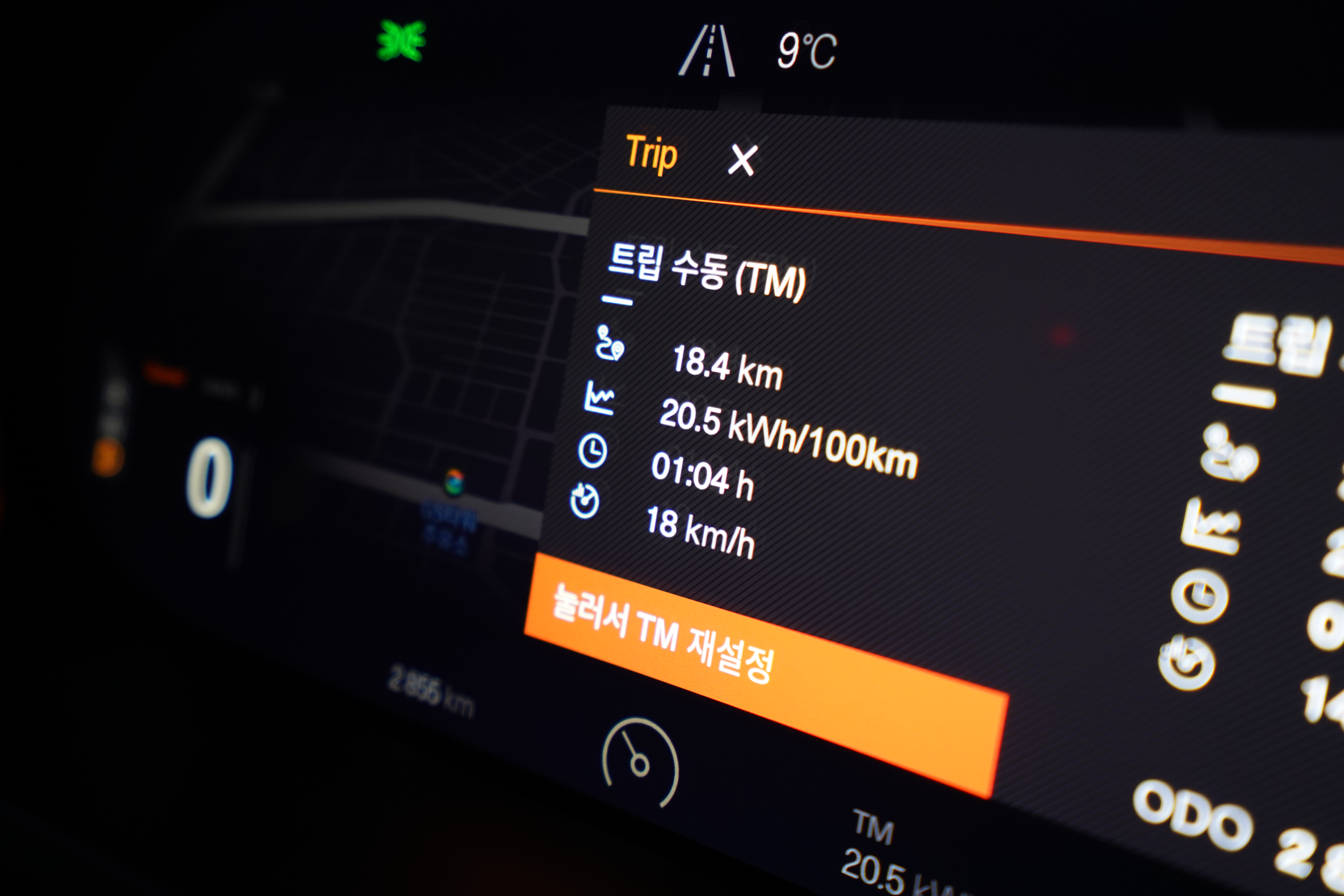 첫 번째 구간에서는 총 시간 19분 소요되어 2.8km정도 주행을 완료했다. 폴스타2에서는 전비가 kWh/100km 형식으로 나오는데 아무리 찾아봐도 우리가 익숙한 km/kWh 방식으로 나오지 않아서 대략적으로 환산하면 3.8km/kWh를 보여준다. 같은 구간에서 EV6 4WD 모델은 동일한 19분소요되어 3.9km/kWh로 비슷한 수준의 연비를 보여준다.