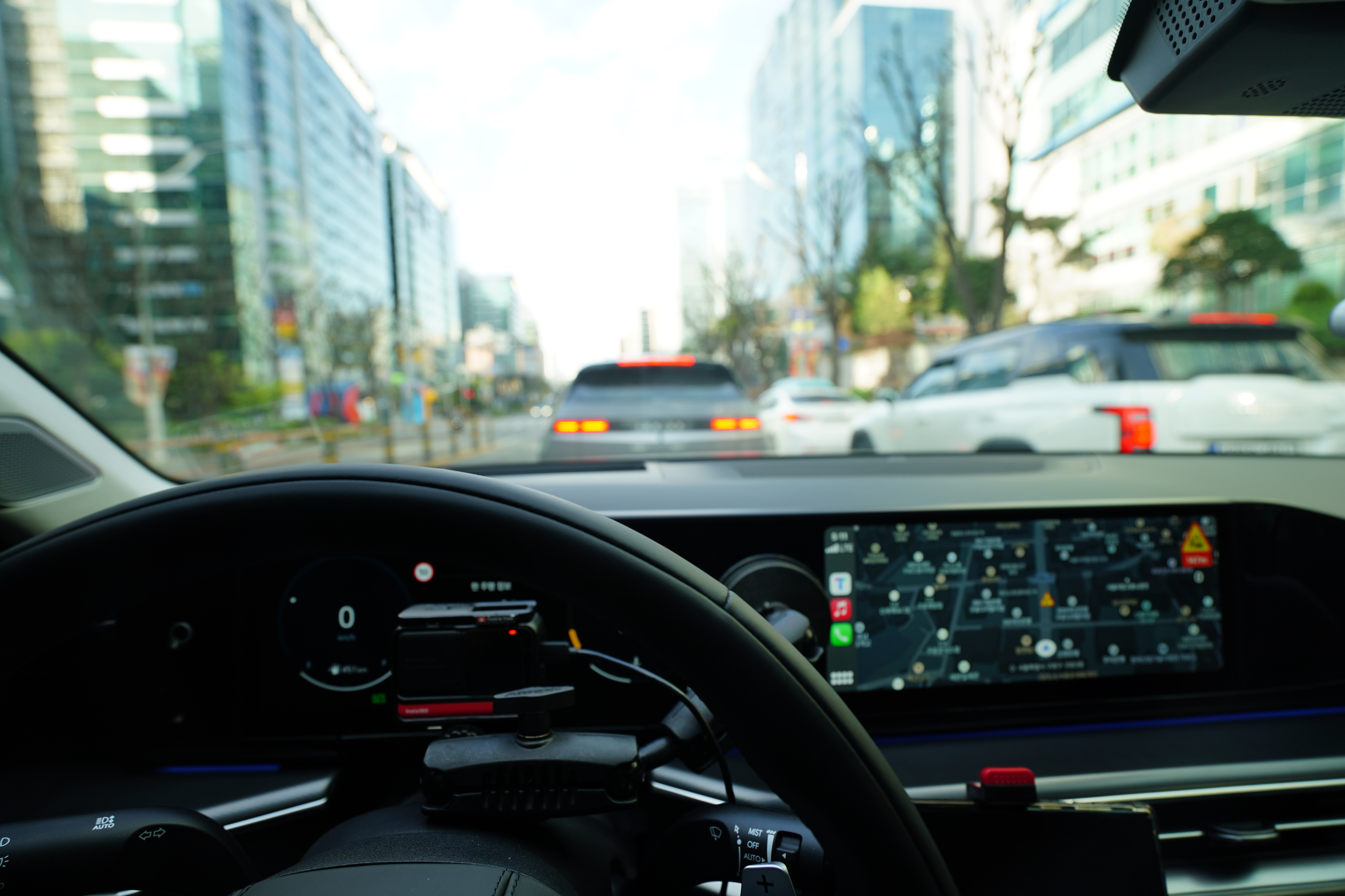 이 테스트는 일반 주행으로 스마트 크루즈 컨트롤로 제한 속도 90km/h에 맞춰서 통일대교까지 약 27~28km 주행하는 테스트로 강남 퇴근길과 비슷한 주행 거리이지만 시간은 약 20분정도 소요된다.