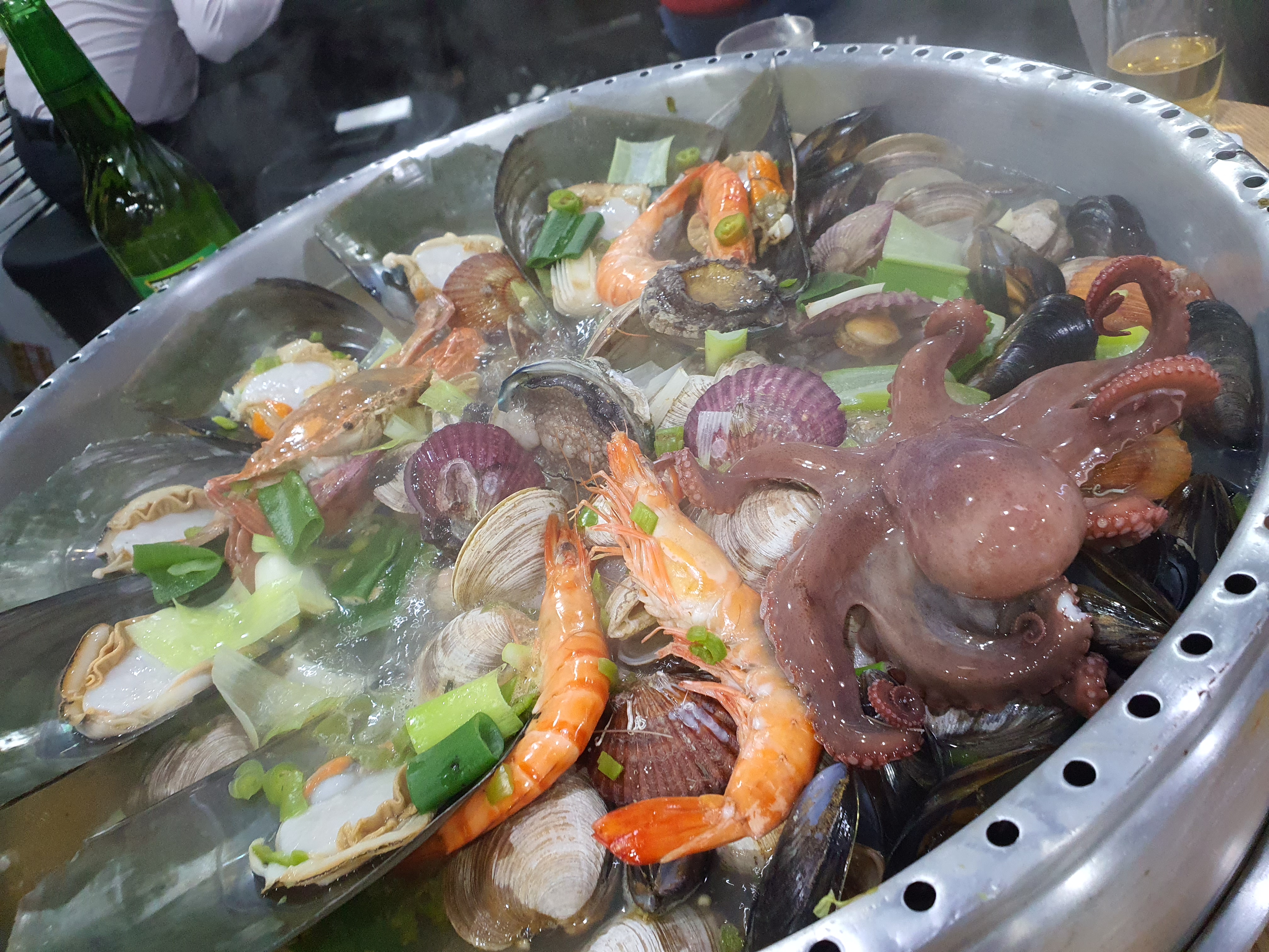 조개전골 소/중/대로만 나뉘어지고 여기애 문어추가, 조개추가, 전복 그리고 다 먹고 전골 국물에 칼국수와 라면, 우동 사리를 추가할 수 있는 것이 특징인 곳이다.