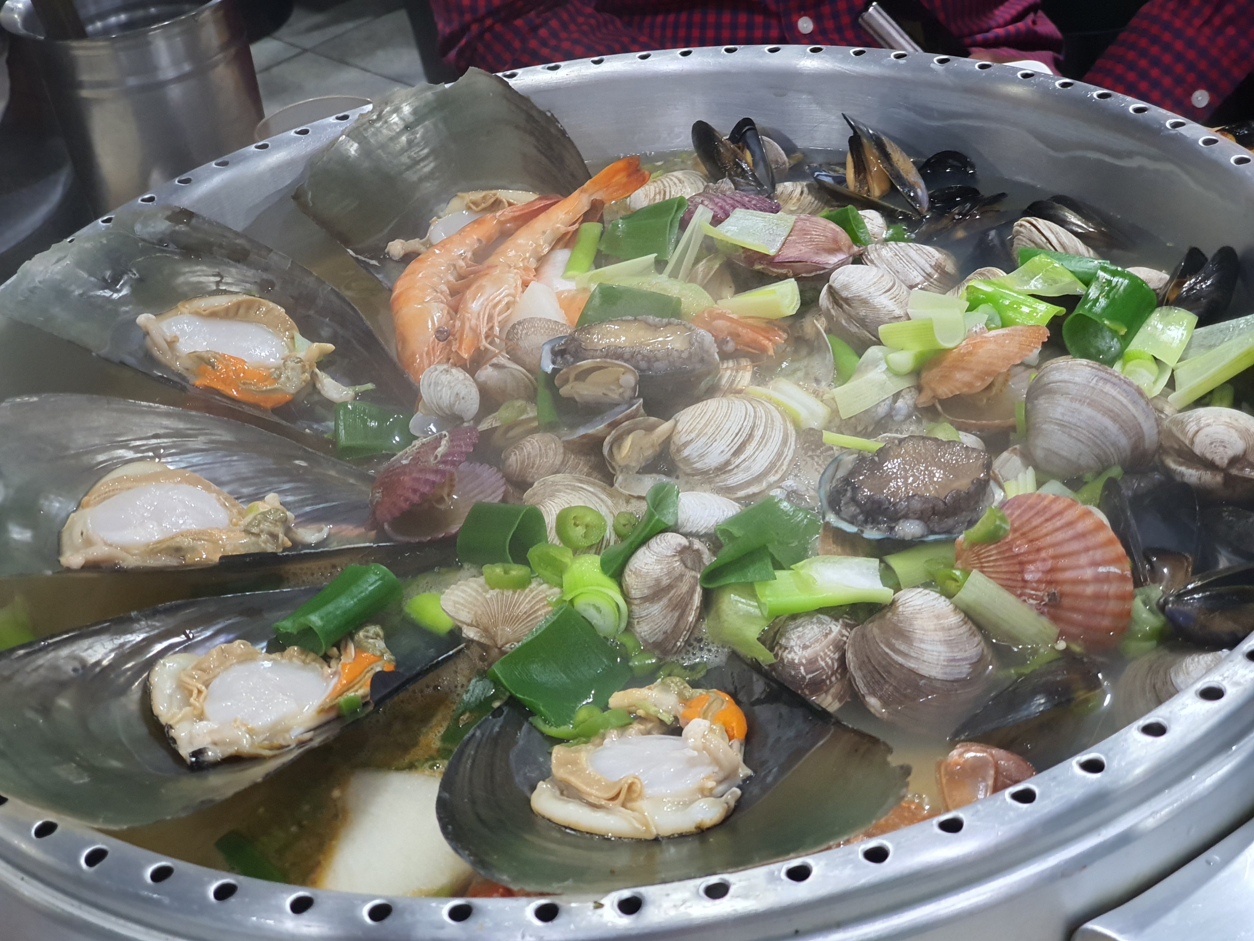 조개전골 소/중/대로만 나뉘어지고 여기애 문어추가, 조개추가, 전복 그리고 다 먹고 전골 국물에 칼국수와 라면, 우동 사리를 추가할 수 있는 것이 특징인 곳이다.