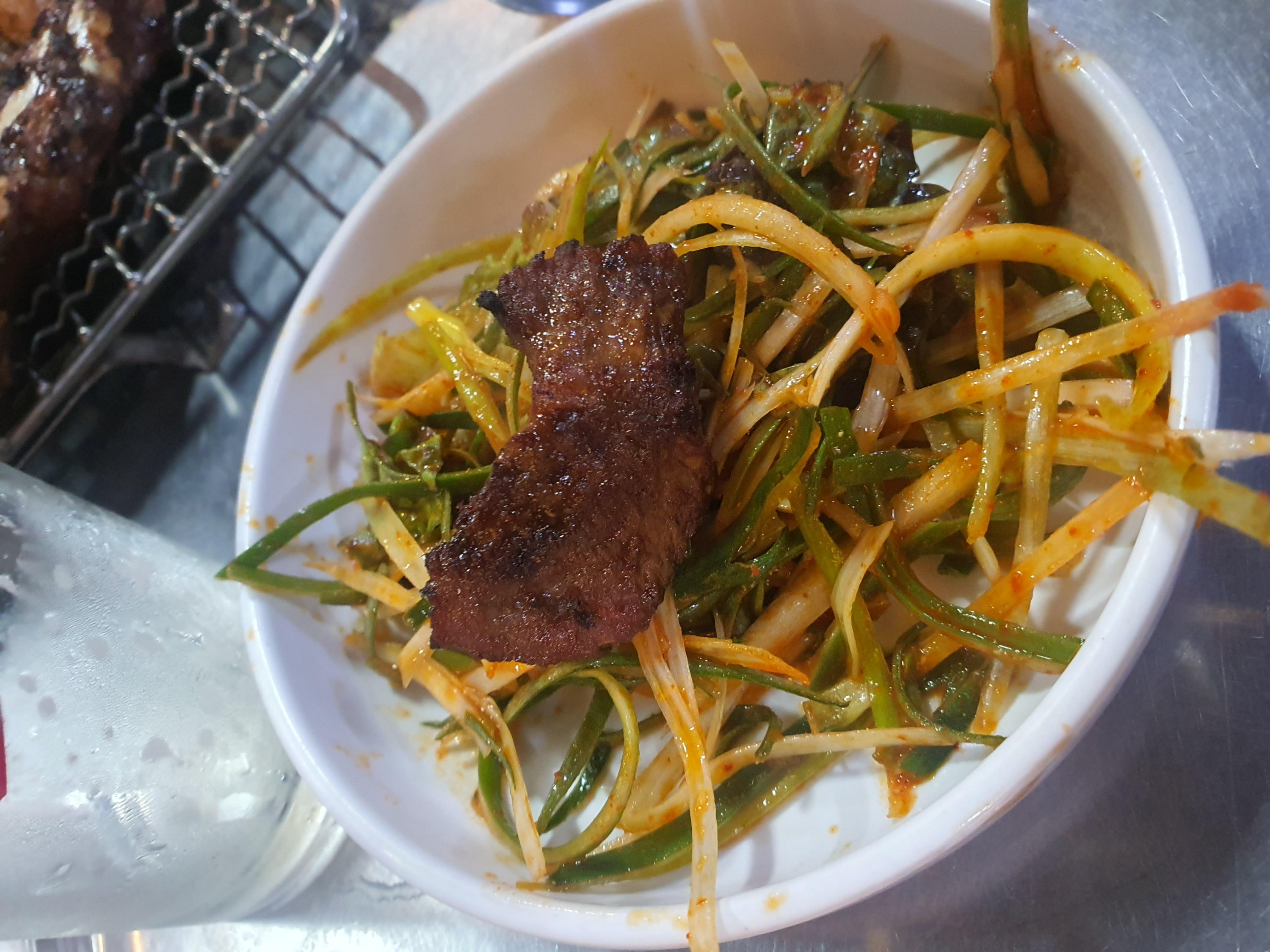 기본 반찬은 아주 특별할것은 없다. 다만 김치가 정말 특별한데 갈비와의 조합이 꽤 괜찮기 때문이다. 묵은지까지는 아니지만 잘 숙성된 김치는 고기와 궁합이 좋은데 불판이 아니라 구워먹지 못하는게 아쉽게 생각될정도이다.