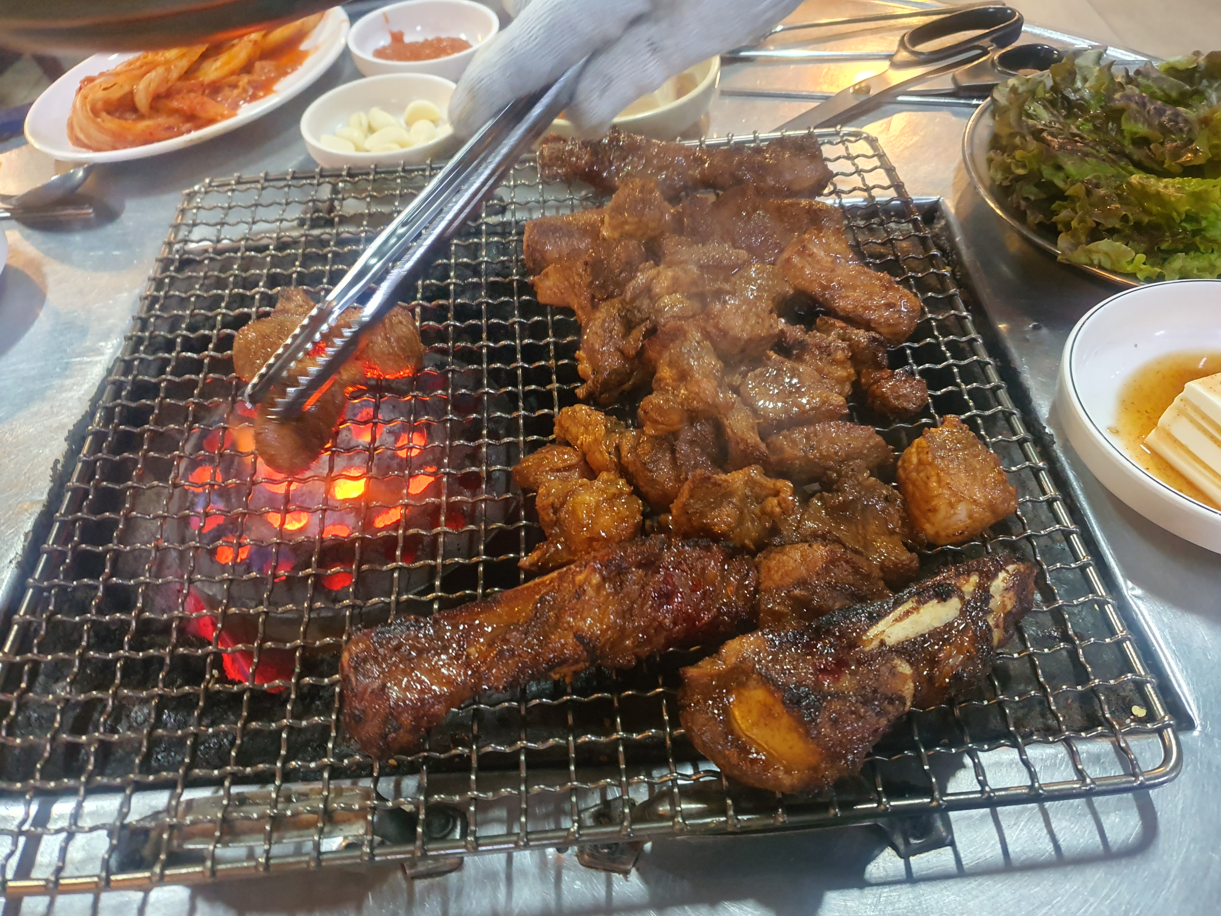 배부르게 먹을 수 있고 직접 초벌로 80%를 구워주시고 연탄 불에 먹을 수 있다는 점에서 그렇게 비싼 금액은 아니다.