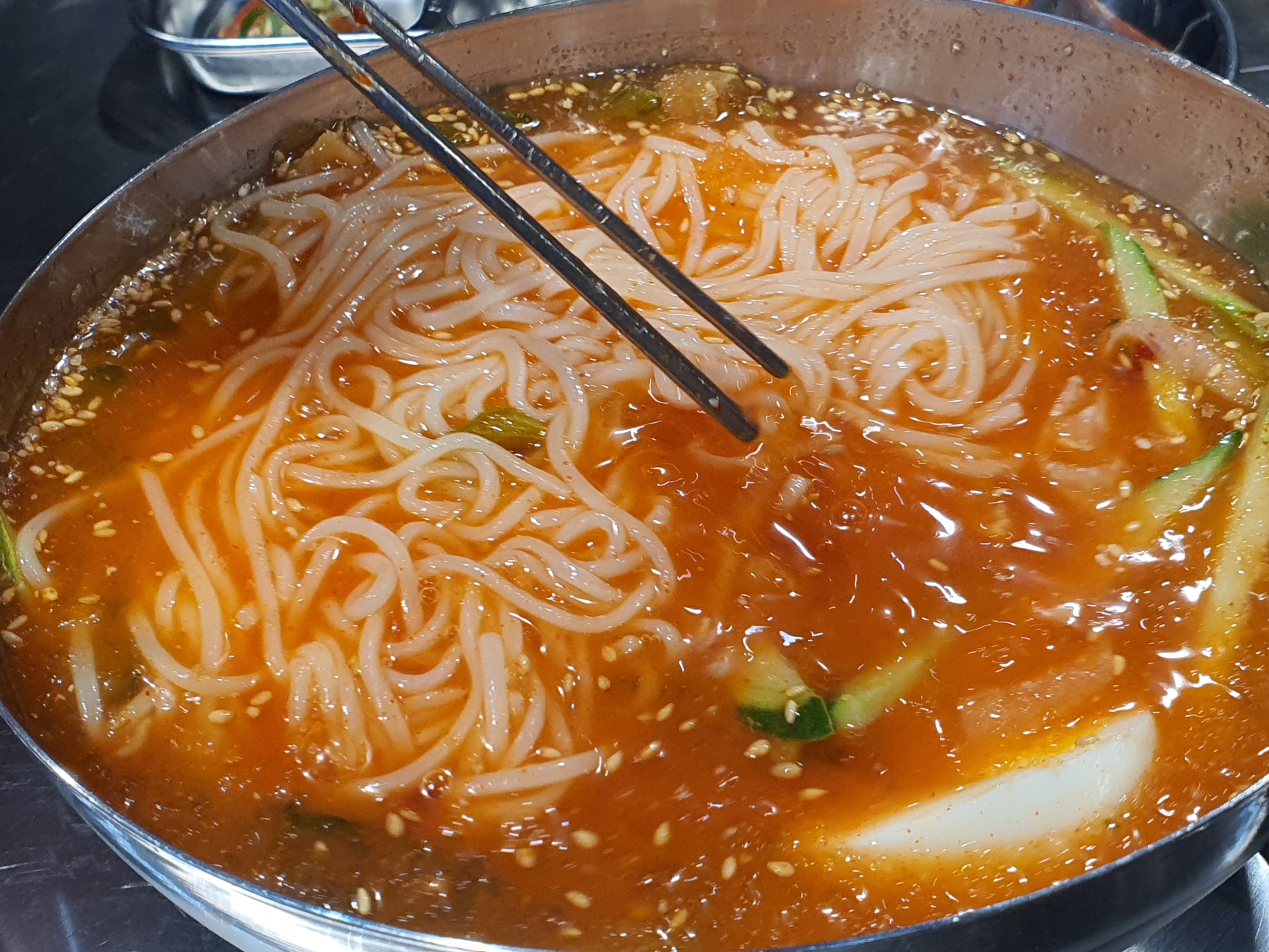 우선 추천 메뉴는 국수류이다. 비빔냉면도 맛있고 물국수 또한 좋은데 국물이 너무 맛있어 식사가 아니라 안주 같이 느껴지는 그런 맛을 가지고 있다. 조금 식어버린 삼겹살을 국수와 함께 양파를 곁들여서 먹으면 딱 좋은 맛을 가지고 있다.