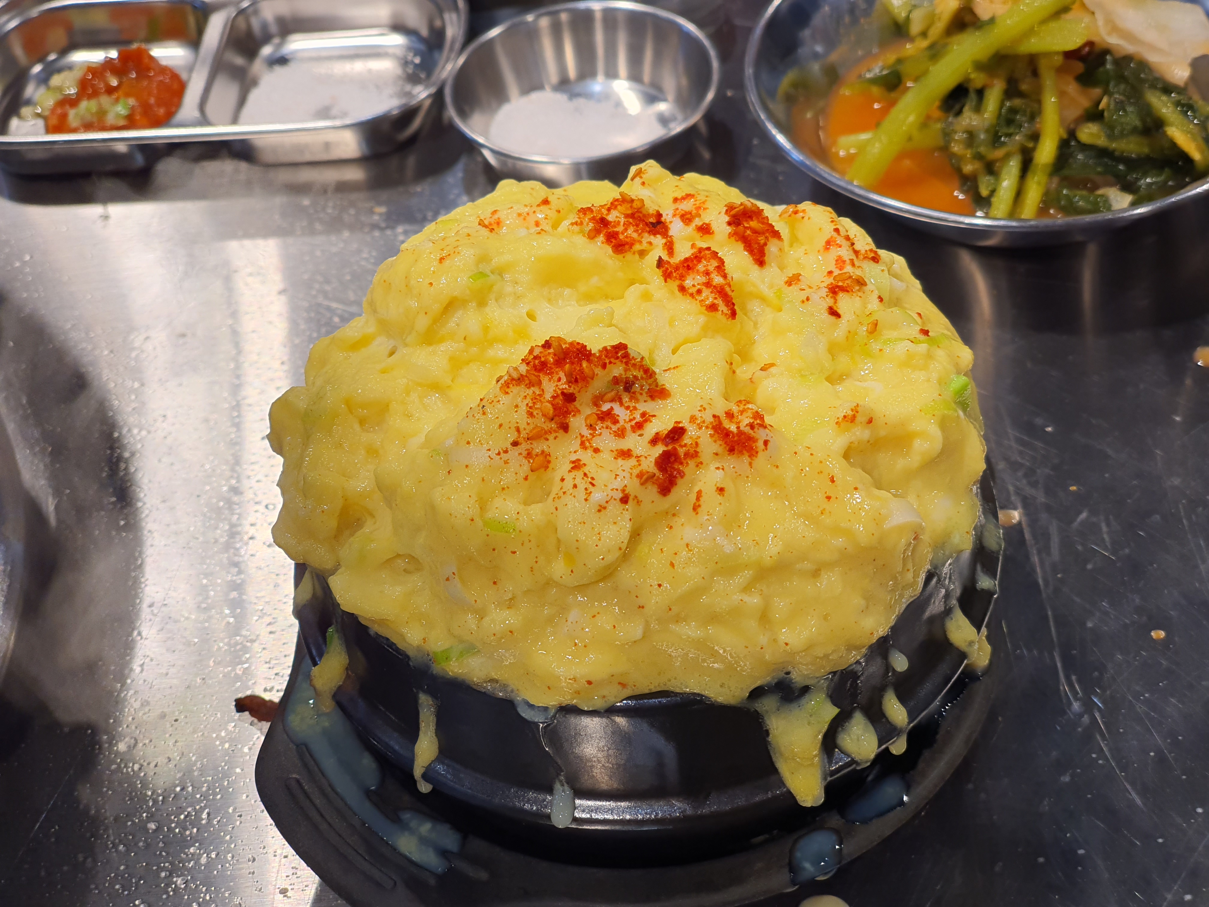 두번째 추천 메뉴는 계란찜이다. 거의 폭탄 맞은 계란찜은 비주얼에서 심상치 않은 느낌을 보여준다. 비주얼망 그런게