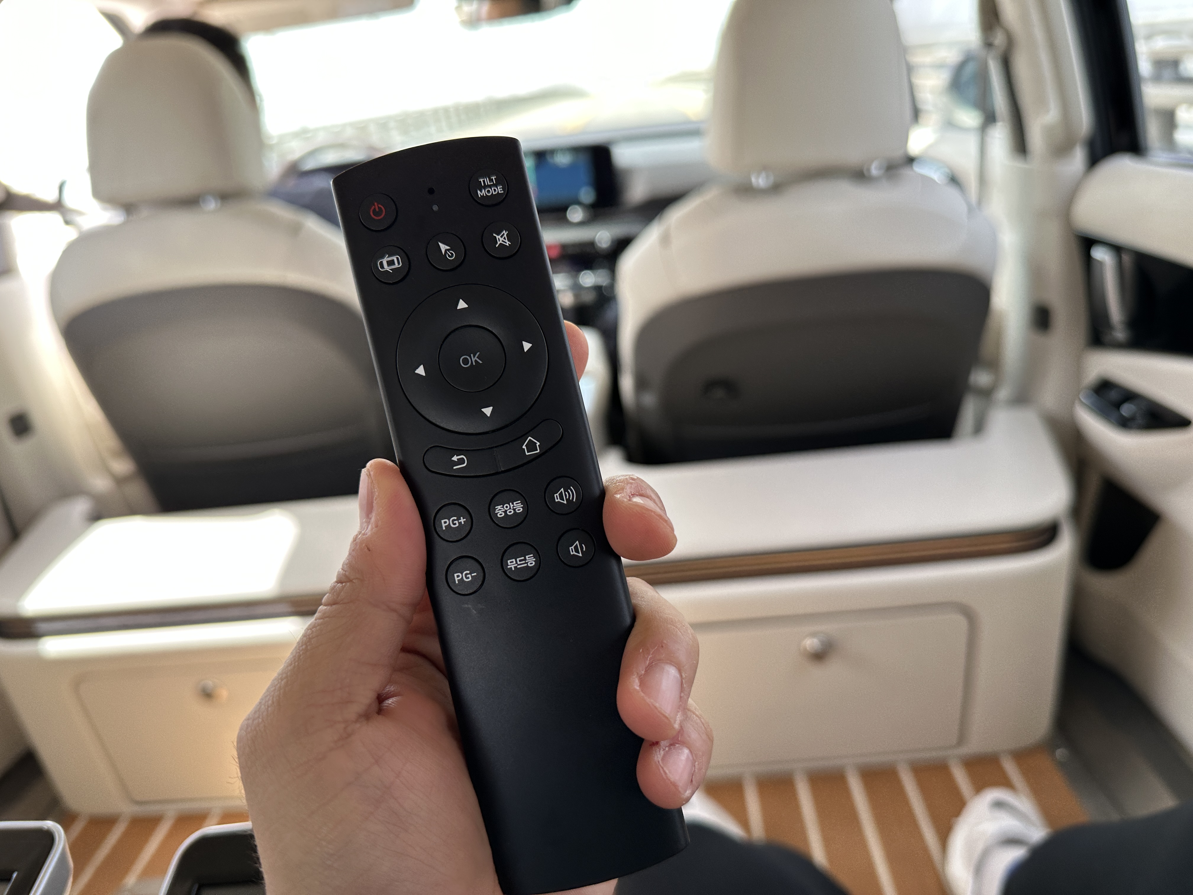 하지만 생각보다 커다란 화면과 기본 카니발 3.5 가솔린 모델을 기반으로 하고 있는 차량이기에 장시간 시청에도 어지럽거나 멀미가 나지 않고 리모콘을 마우스처럼 허공에 움직이면 내가 움직이는대로 마우스 커서가 움직이기 때문에 동작하는 어려움은 없다.