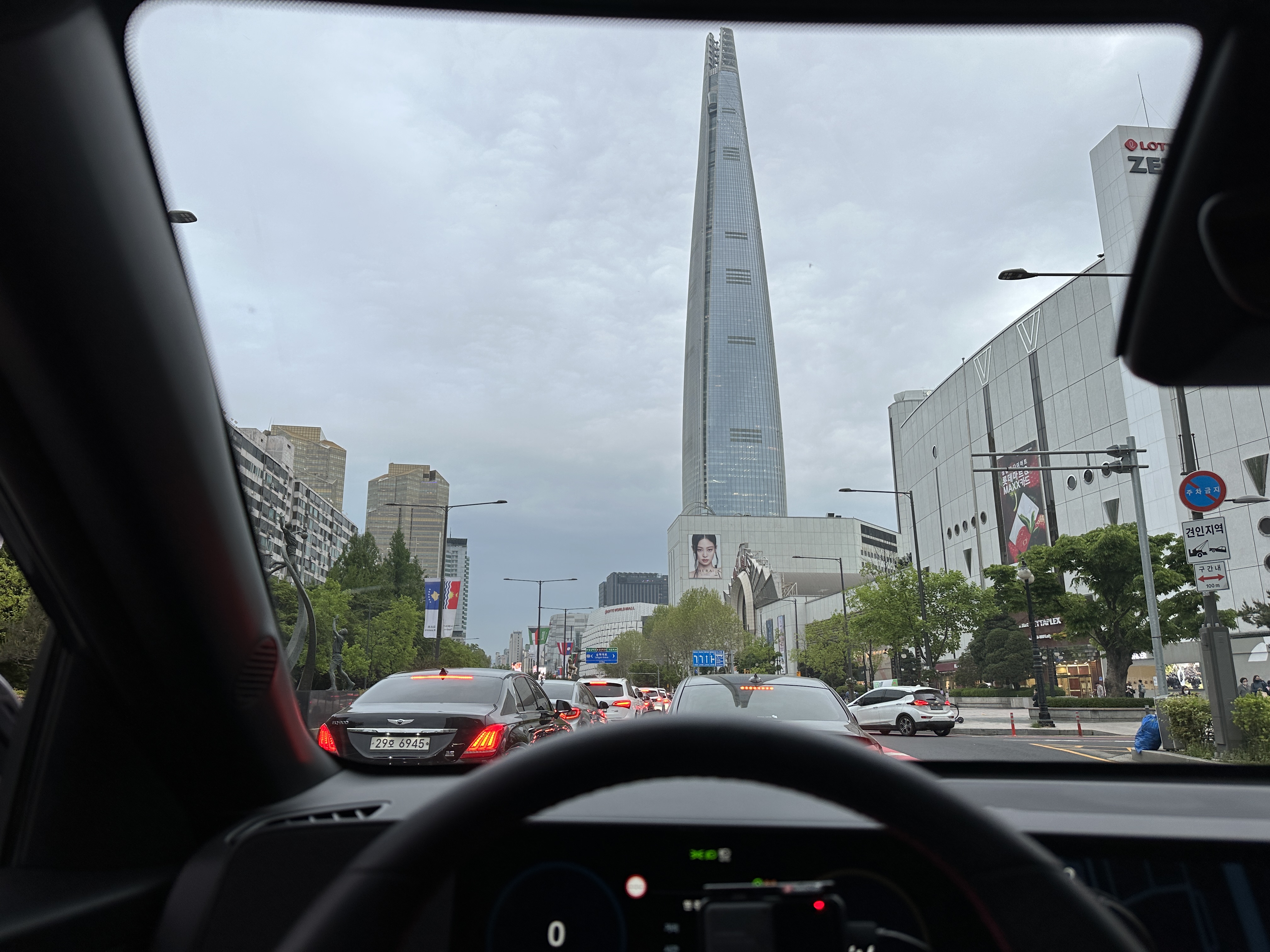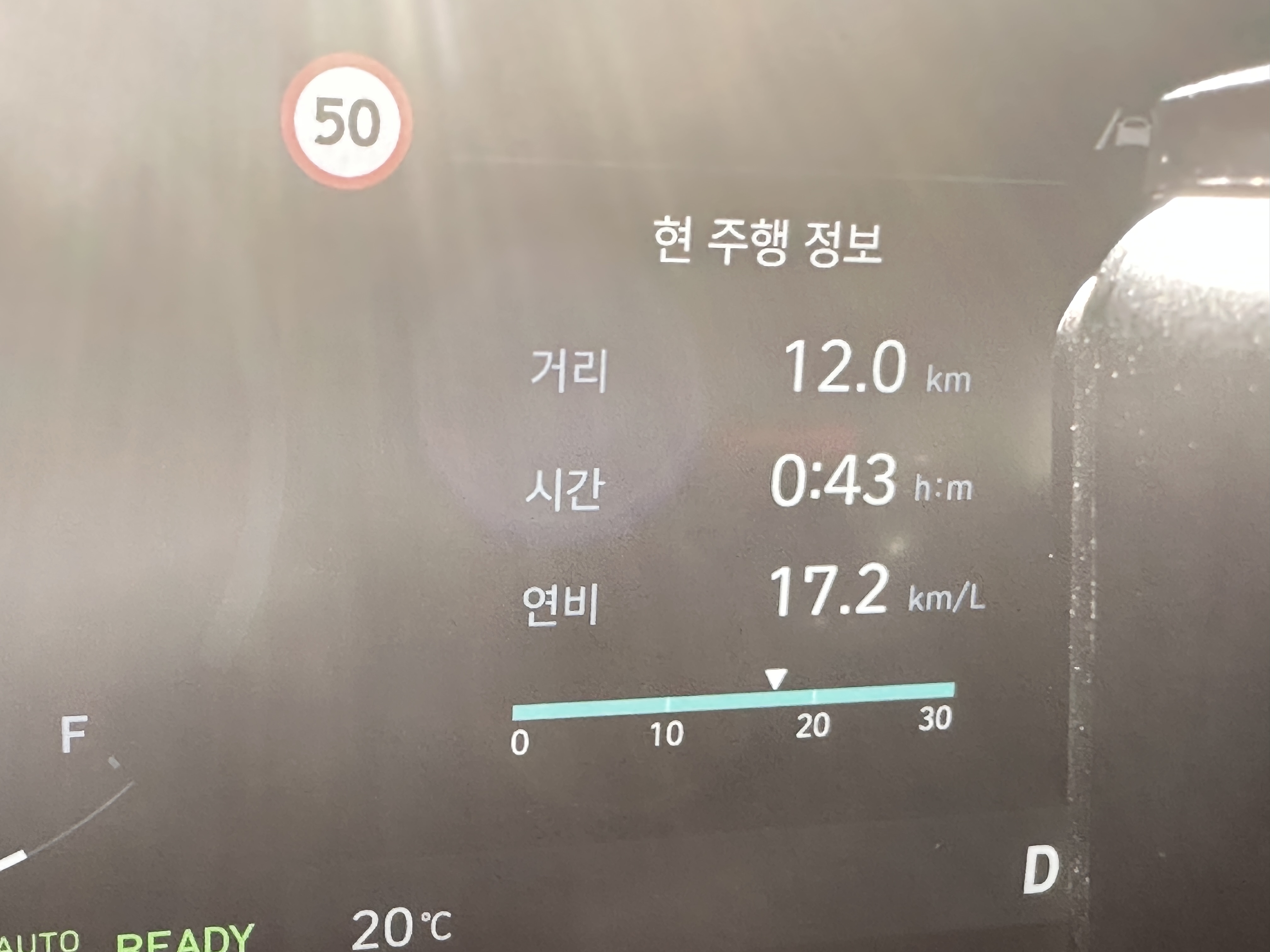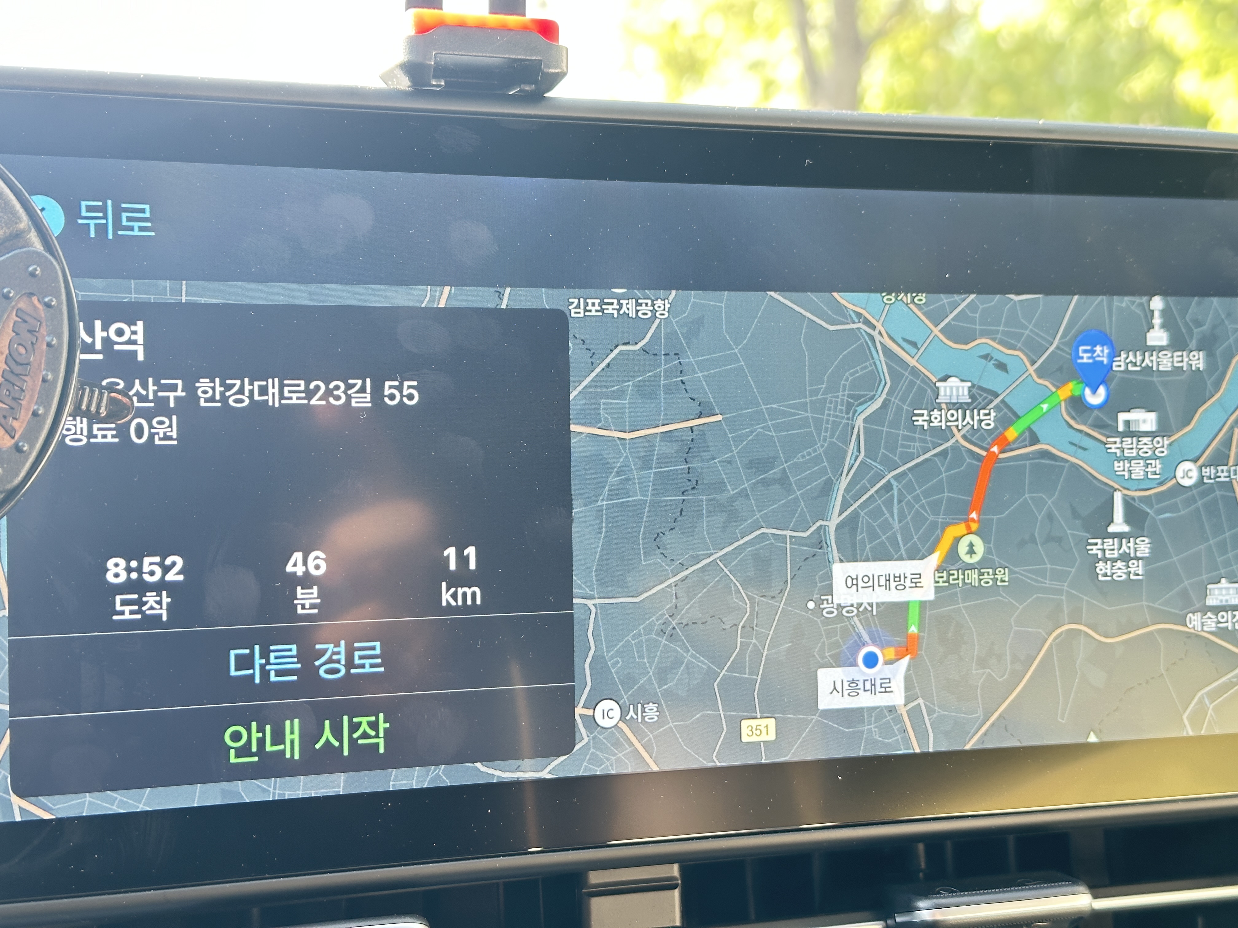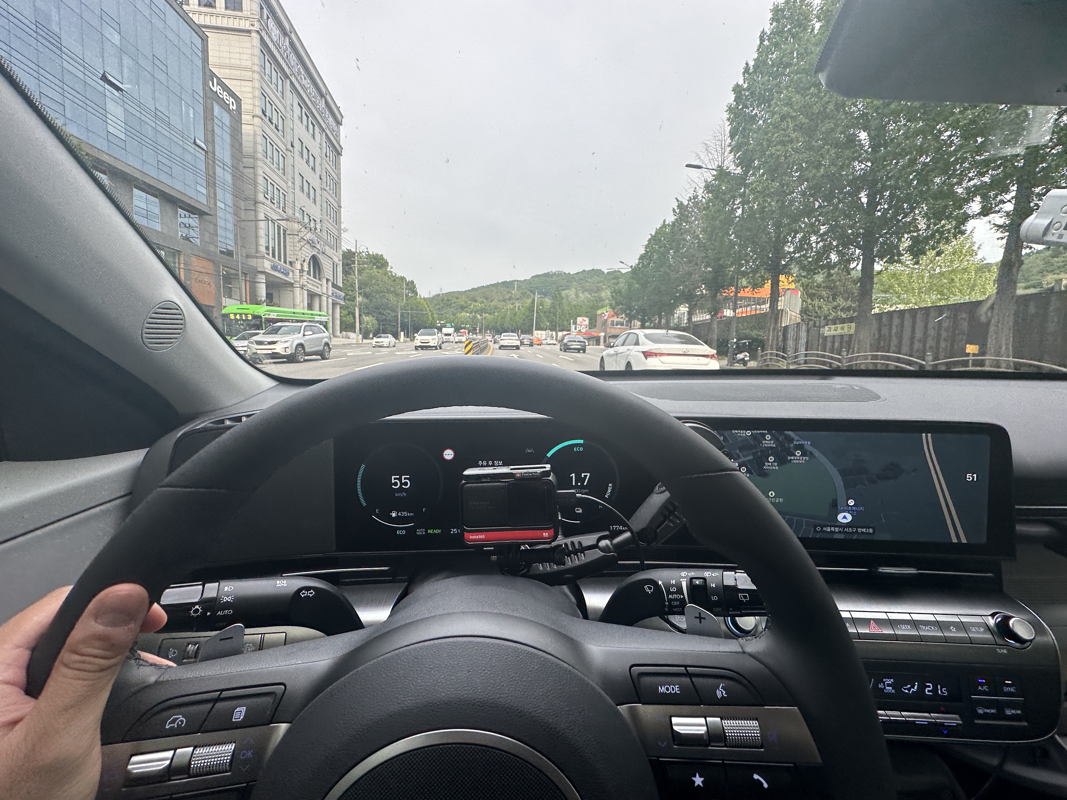이번에는 오전 8시에 출발하여 용산으로 향했다. 테스트는 아니지만 연비 체크를 해봤는데 총 거리 12km 주행에 시간은 43분 소요되었고 연비는 17.2km/L를 보여주는 꽤 좋은 연비를 가지고 있는 차량이다. 하지만 고속 주행에서는 1.6 가솔린 터보 모델과 큰 차이를 보여주지 않았는데 파주 자유로에서 똑같이 시속 90km/h 주행 시 1.6 가솔린 터보 2.0 가솔린 자연흡기 모델은 약 19.7km/L를 보여줬지만 1.6 하이브리드 모델은 22.0km/L 수준으로 큰 차이를 보여주지 못했다.