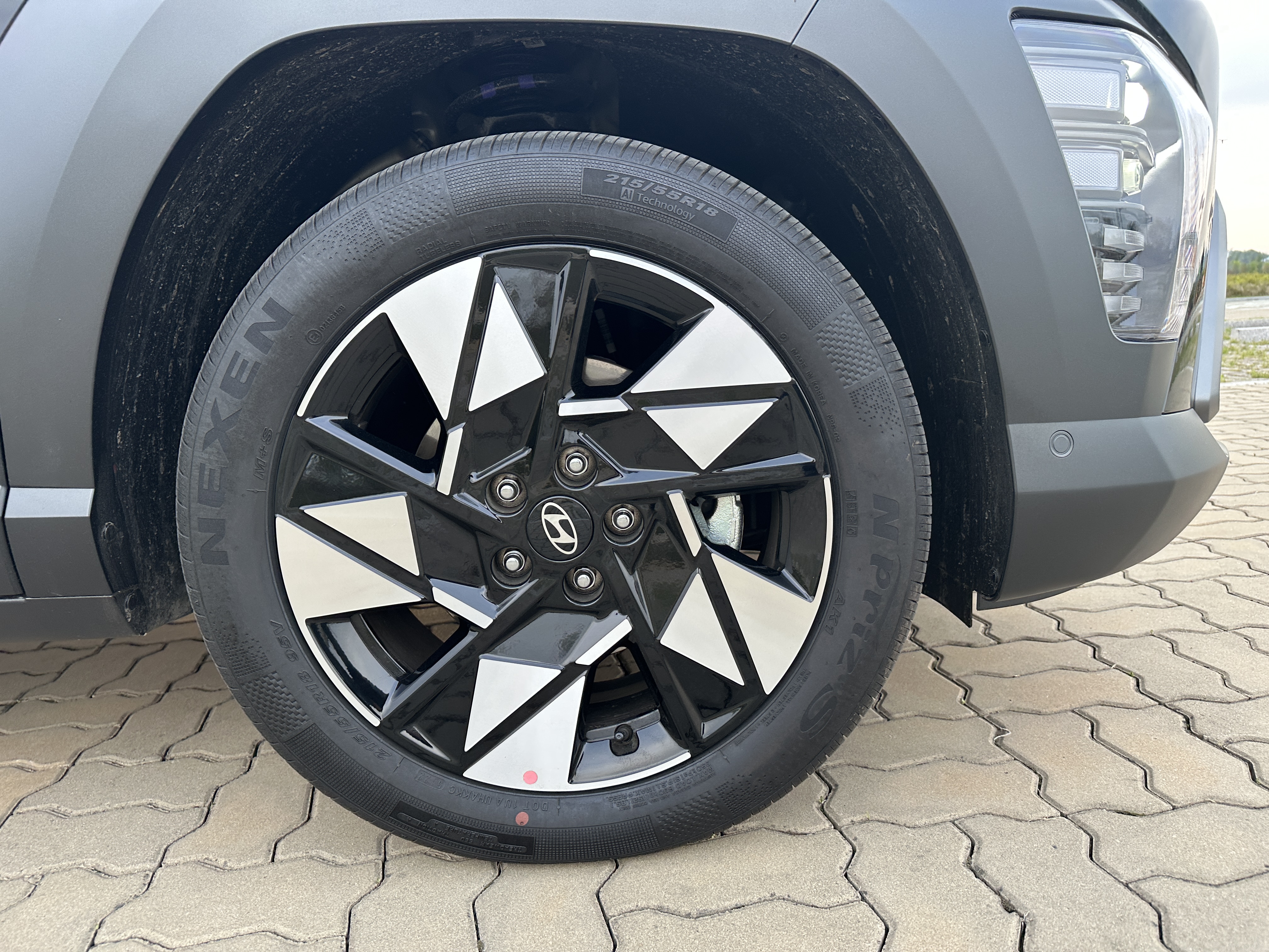 2세대 코나 1.6 가솔린 터보 / 2.0 가솔린 모델은 넥센 엔페라 AU7 타이어에 235/45/19인치 타이어를 사용하지만 2세대 하이브리드 모델은 이보다 한 치수 작은 넥센 엔프리즈 AH8 215/55/18인치를 사용한다. 1세대 하이브리드 모델에는 미쉐린 타이어를 주력으로 사용했지만 2세대 모델에서는 넥센 타이어를 주력으로 사용한 것으로 보인다.