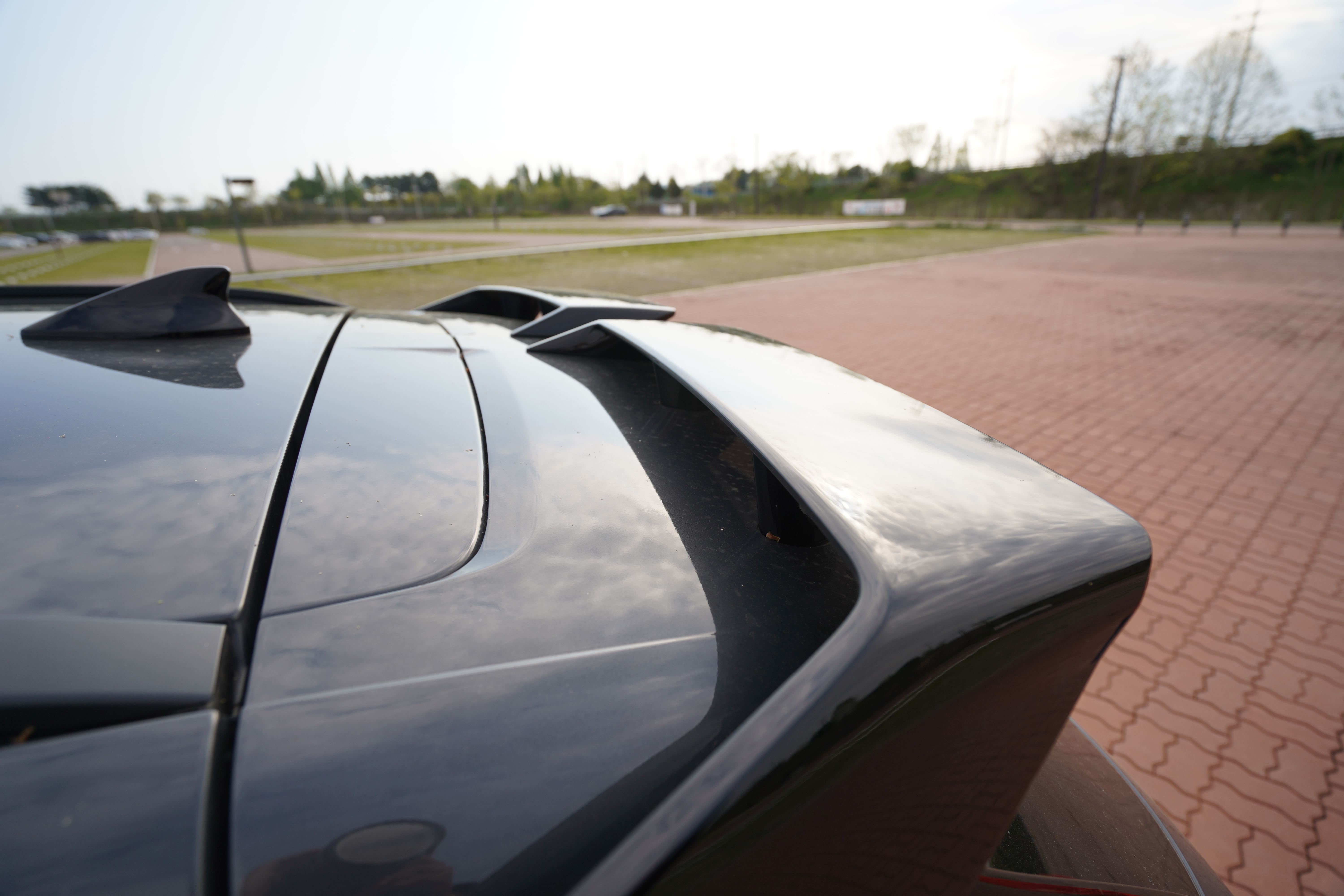 뒷 모습을 살펴보기 전에 차량 후측면을 살펴보면 스포일러 하나로 디자인에 느낌이 완전히 새롭다. 기본 모델과 비교하면 정말 좋은 존재감을 보여주고 있는데 기본적으로 N-Line 전용 윙타입 스포일러는 현대자동차 디자이너들을 칭찬하고 싶을 정도로 꽤나 매력적으로 디자인 되었다. 특히나 스포일러에 브레이크 램프가 길게 한 줄로 된 것이 아닌 중간에 작게 된 이유가 바로 N-Line 스포일러때문이구나… 라는 생각이 들게 한다.