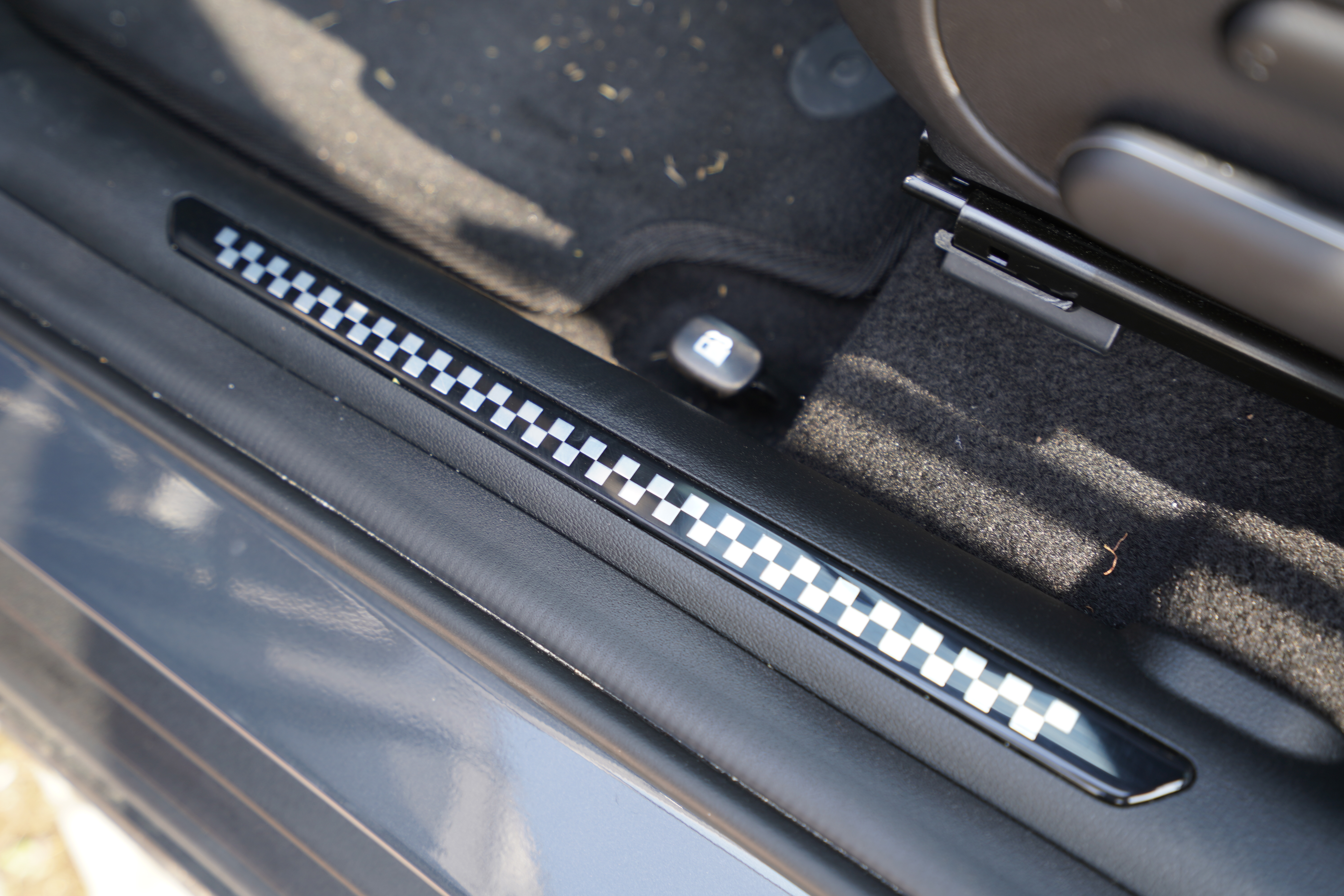 N-Line 전용 메탈 페달 & 풋 레스트도 적용되는데요. 이건 개인적으로 DIY를 통해서 N-Line 모델이 아니더라도 쉽게 바꿀 수 있을거 같다. 문을 열었을 때는 N-Line 전용 전용 메탈 도어 스커프가 적용되었는데 경기에 깃발인 플래그 패턴을 적용되어 있다. 그런데 이거 미니쿠퍼 같은 느낌은... 어떻게 지울 수 없는데 중간에 N 로고라도 하나 넣어줬으면 한다.