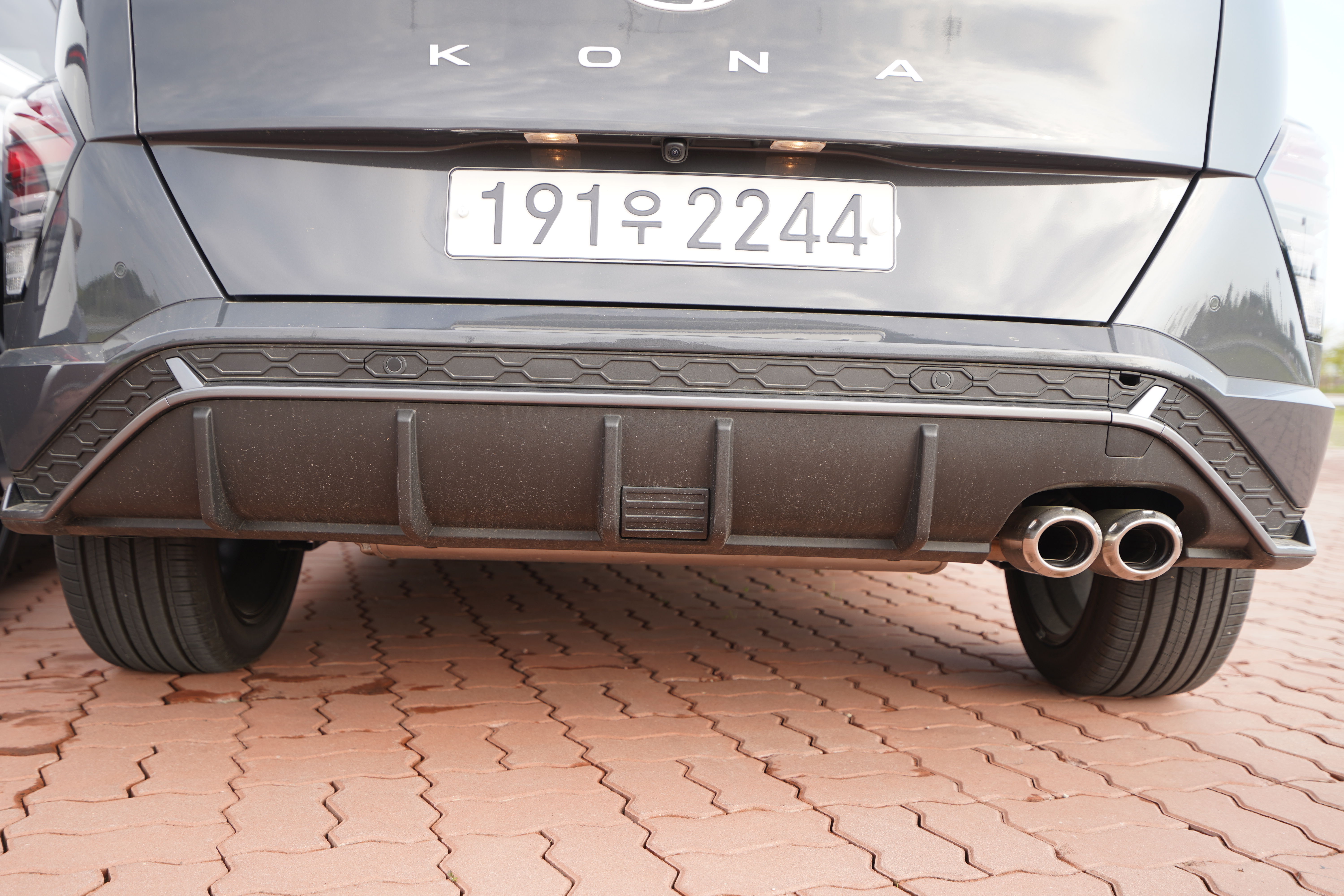 여기에 N-Line 전용 디퓨져와 전용 싱글 트윈팁 머플러가 적용되어 있다. 전체적으로 꽤 만족스러운 디자인을 보여주고 있으며 아마 2세대 고성능 코나 N 모델이 나온다면 듀얼 트윈팁 머플러를 사용하여 고성능 이미지를 더하여 N-Line과 차별성을 보여주지 않을까? 싶다.