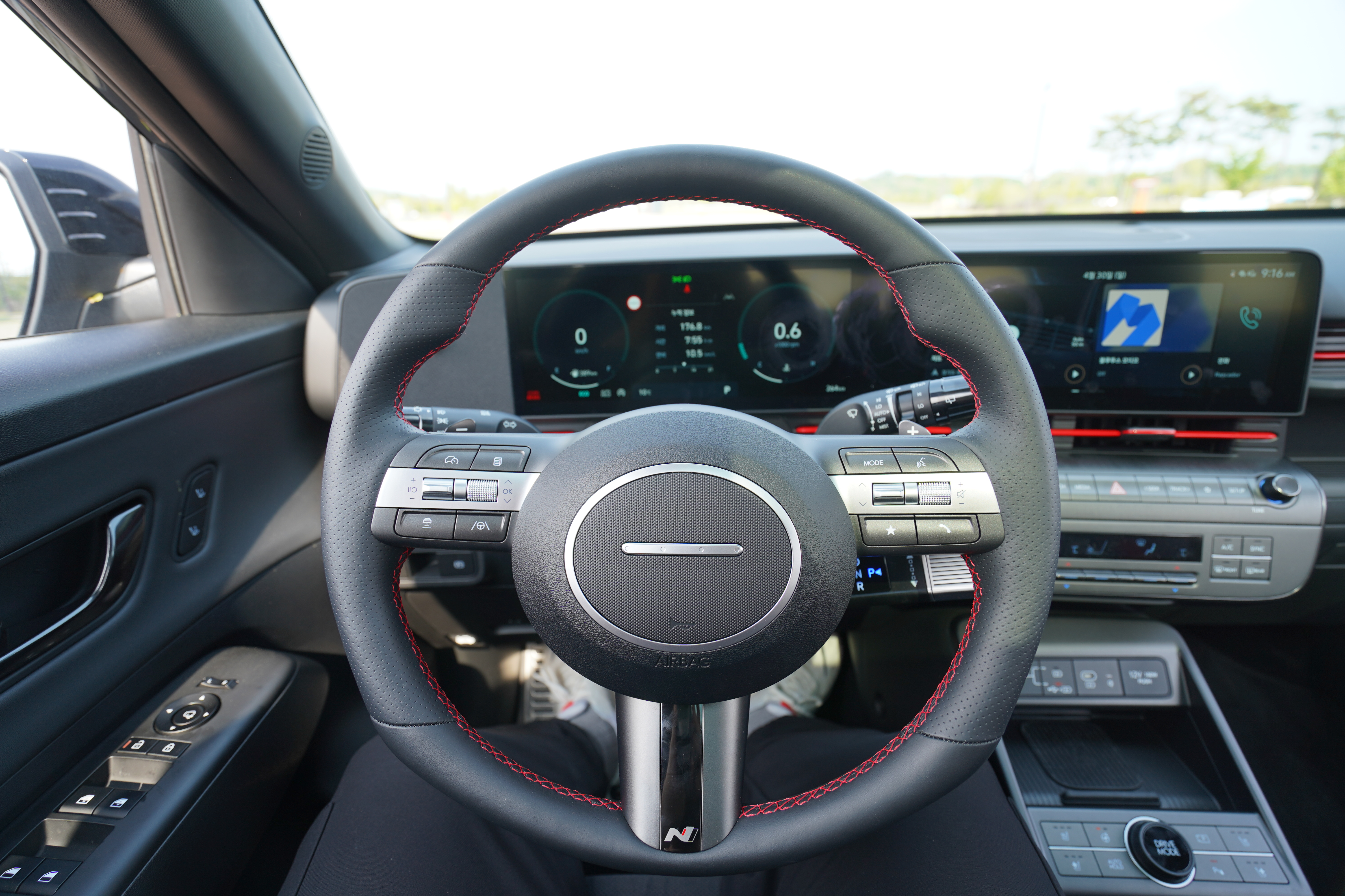 실내에서 가장 만족스러운 부분은 바로 시트이다. N-Line 전용 천연가죽 / 알칸타라 콤비 시트는 정말 만족감이 좋은데보통 알칸타라 재질을 사용하는 고성능 자동차 모델들은 통풍시트가 없지만 코나 N-Line에는 통풍시트까지 편의성이 돋보여지고 있다. 무엇보다 차량 실내에서 눈에 가장 많이 보이는 레드 라인이 참 인상적인데 물론 개인적인 생각이다.